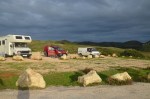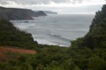 119-1 (4.11.2015) Regen. Planänderung. Eigentlich erstaunlich dass die meisten Menschen Regen mit etwas Negativem verbinden. Dabei ist Regen eigentlich sehr schön. Gerade jetzt, in diesem Moment. Nicht zwangsläufig wenn es tagelang am Stück Bindfäden regnet und man gerne mal wieder draußen an der Sonne wäre. Aber sonst… wenn die Tropfen gleichmäßig auf das Wagendach prasseln, die hügelige Landschaft im Nebel des Regens verschwimmt und man sich sehr gemütlich im Bett eingerichtet hat, den Klängen der Musik lauscht und ein paar Seiten in einem Buch liest. Perfekt! So in Etwa sieht heute mein bisheriger Tagesverlauf aus, da es nunmehr seit 6 Stunden mehr oder weniger pausenlos vor sich hin regnet, mal mehr mal weniger. Da bleibe ich doch gerne in meinem Häuslein und genieße das Nichtstun. Rumfahren kann man ja auch noch morgen und die Wellen sind gerade auch nicht das Gelbe vom Ei. Was soll‘s.