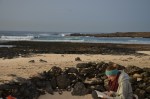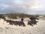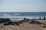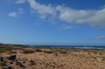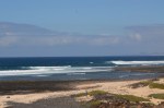 Landschaftlich ist Fuerte im Vergleich zum grünen und bis zur Küste bergigen Teneriffa eine komplett andere Welt. Karge Landschaften mit Hügeln und kleineren „Bergen“ im Hinterland, dazu zumeist überschaubare Ortschaften mit vielen weißen Häuschen prägen das Bild im Norden (Ausnahmen bestätigen die Regel) und natürlich der bekannte Northshore wo man sich nur über mehr oder weniger gute Schotterpisten fortbewegen kann. Da freut sich ganz besonders das Auto, wobei ich meine Karre größtenteils durch Taxi-Dennis davon befreien kann. Türkises Wasser und große Lagunen vor hellen Sandstränden lassen ungemein Karibikflair aufkommen, einzig der fast komplettt fehlende Bewuchs und die kalten Wassertemperaturen machen deutlich dass man doch „nur“ auf den Kanaren ist.