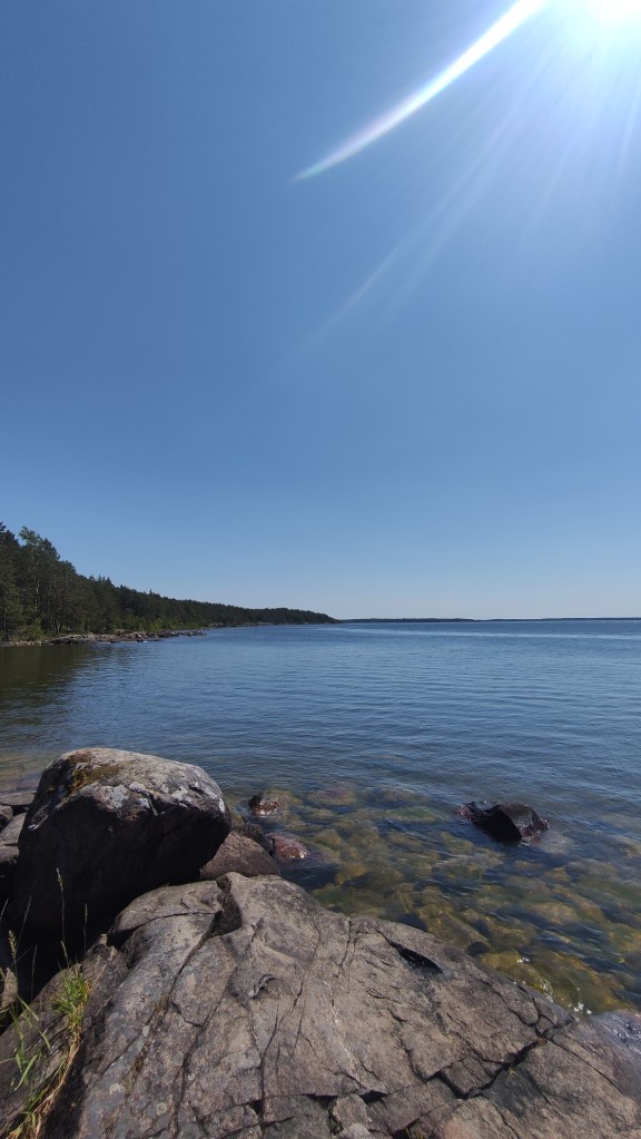 Ob das in diesem Fall zutrifft weiß ich ehrlicherweise (noch) nicht, vielleicht wird sich die potentielle Erkenntnis auch weiterhin meinem Blickfeld entziehen. So sei es eben. Worum es geht? Um eine kleine Insel im Vänernsee. Namentlich bekannt, oder auch nicht, unter dem Namen Torsö. Irgendwo an der Ostküste, etwa eine halbe Autostunde von Mariestad entfernt. Hier bin ich schon mal gewesen, wissentlich der bisher nördlichste Punkt in Skandinavien wo ich bisher gewesen bin (ungeborene Ausflüge mal ausgeklammert). An einem Strand im Wald namens „Torsö Strand“. Anzufahren über eine lange Geraden, vorbei an einem Bauernhof, eine kleine Kapelle mit angrenzendem Friedhof zur rechten liegen lassend und dann noch ein paar Kilometer über Piste durch den Wald. Ein fantastisches Plätzen Erde, damals für zwei fantastische Menschen, einem geliehenen Auto incl. Dachzelt (schöne Grüße nach Aachen) und fertig ist die Laube.