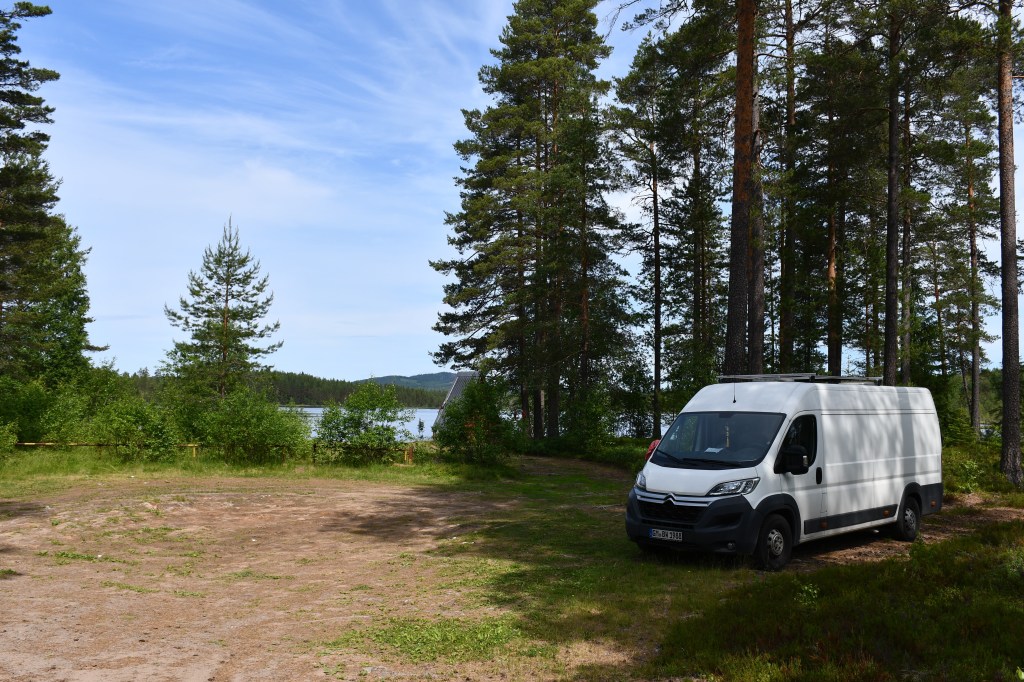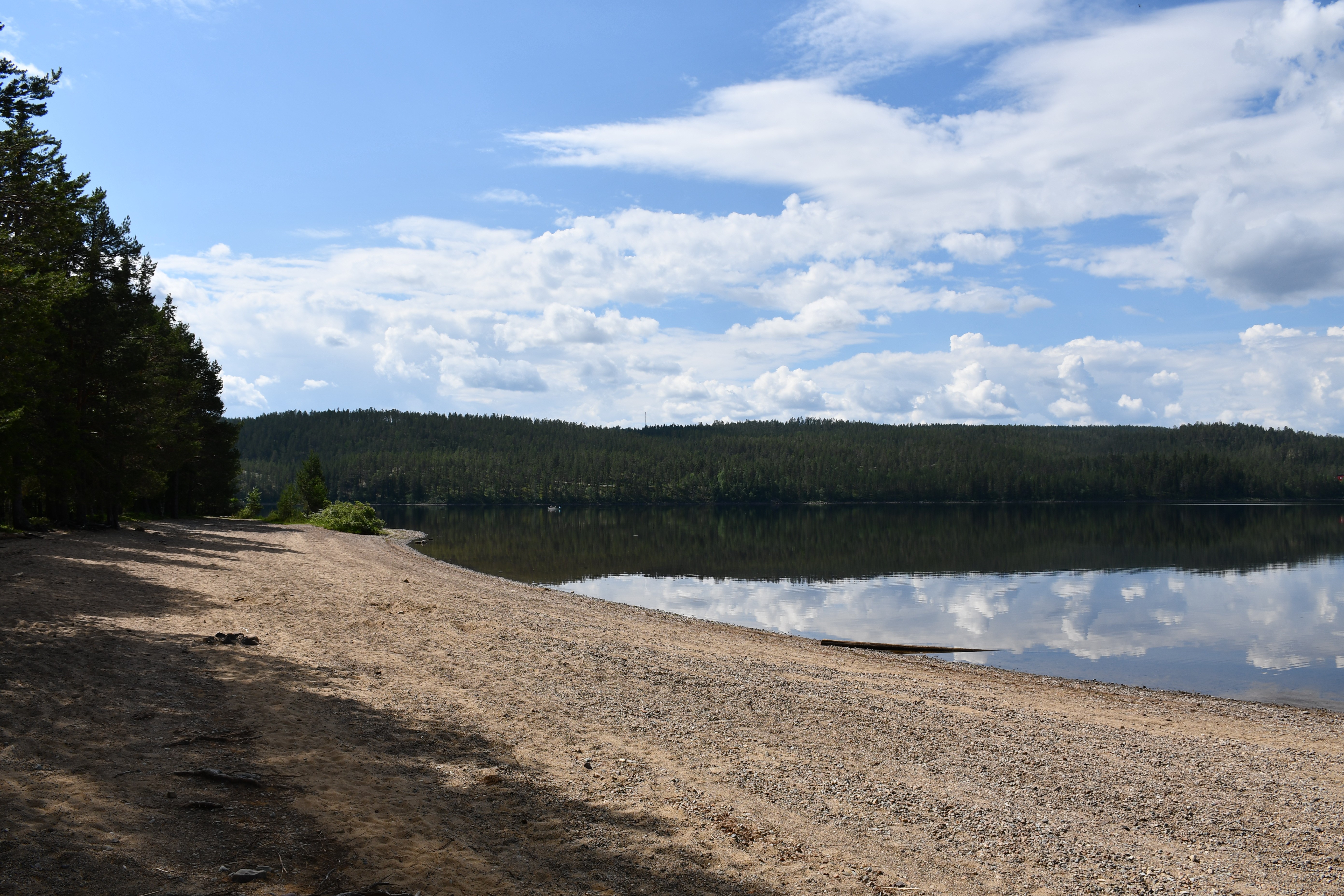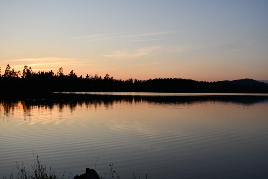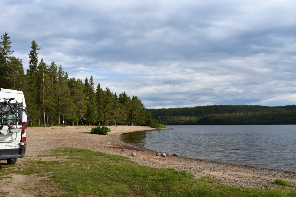 Ich entschließe mich neben einem kurzen Einkauf keine großen Schritte mehr zu machen, auch angesichts des zu erwartenden Wetters. So begebe ich mich etwas südlich von Idre an den dortigen See und lasse mich von der Sonne bescheinen. Die soll sich in den nächsten Tagen angeblich rar machen und nur noch vereinzelt auftreten.