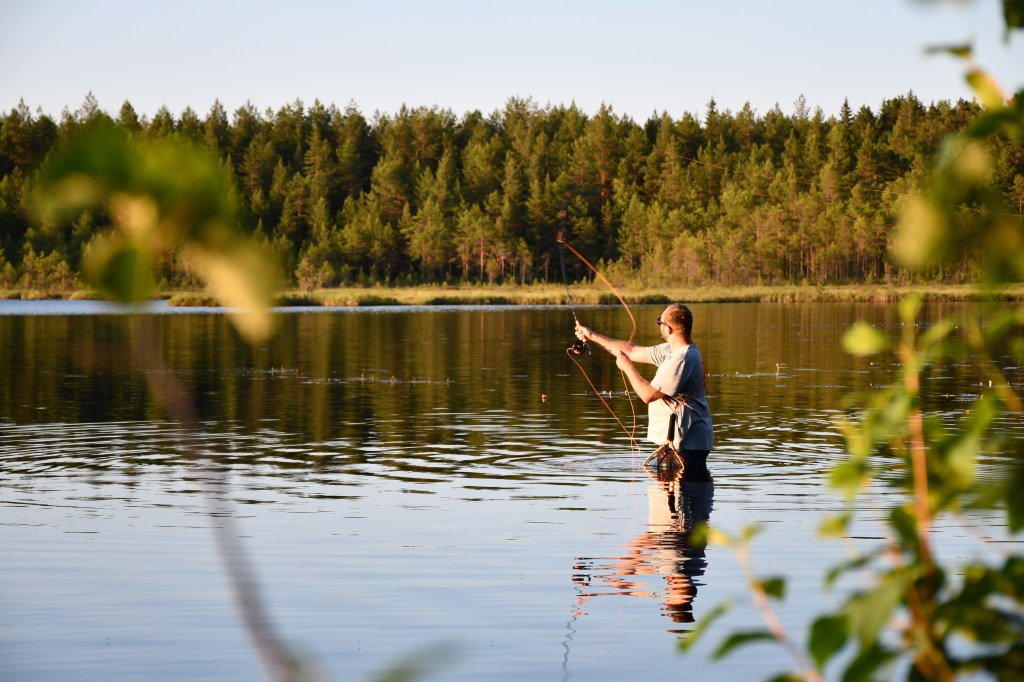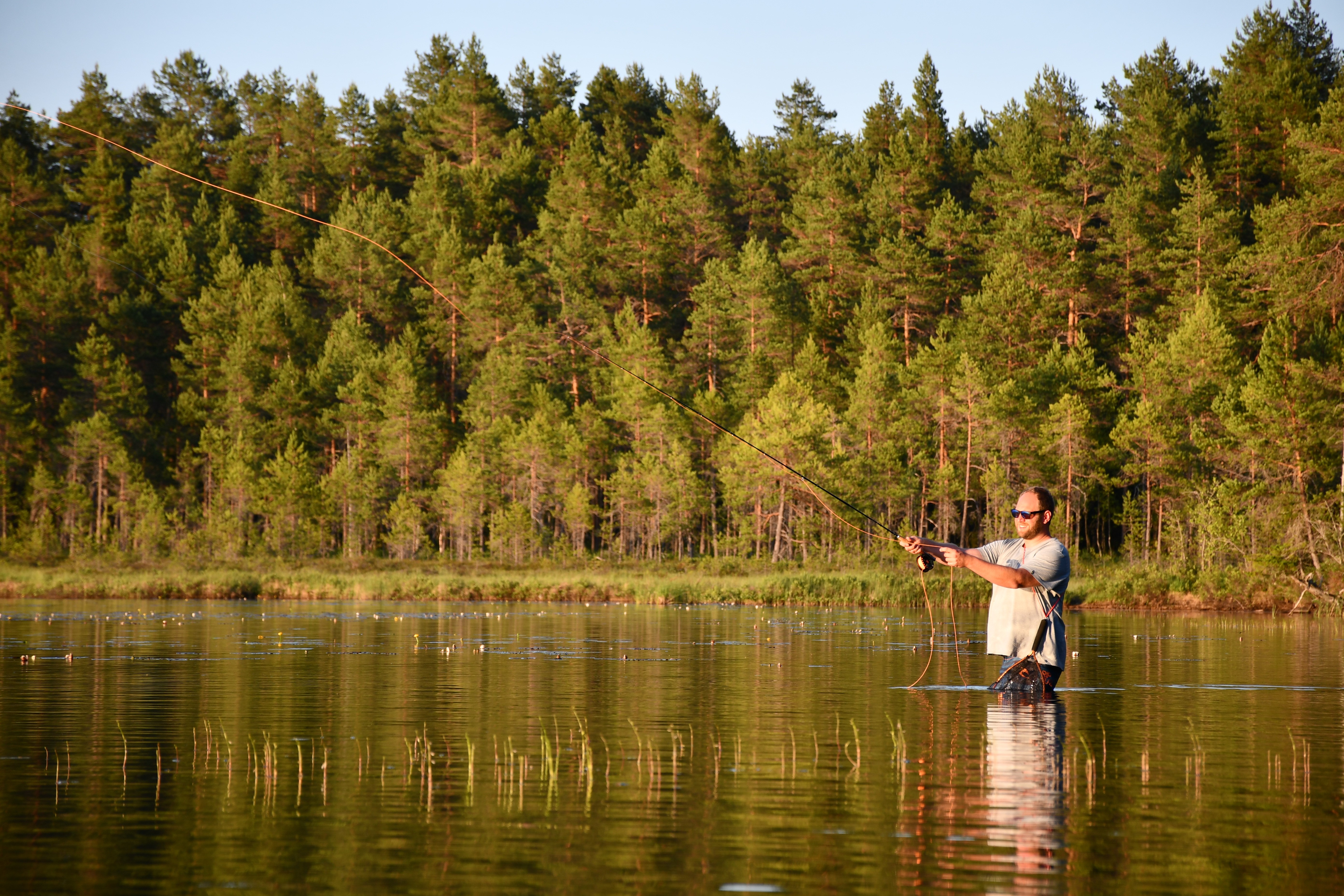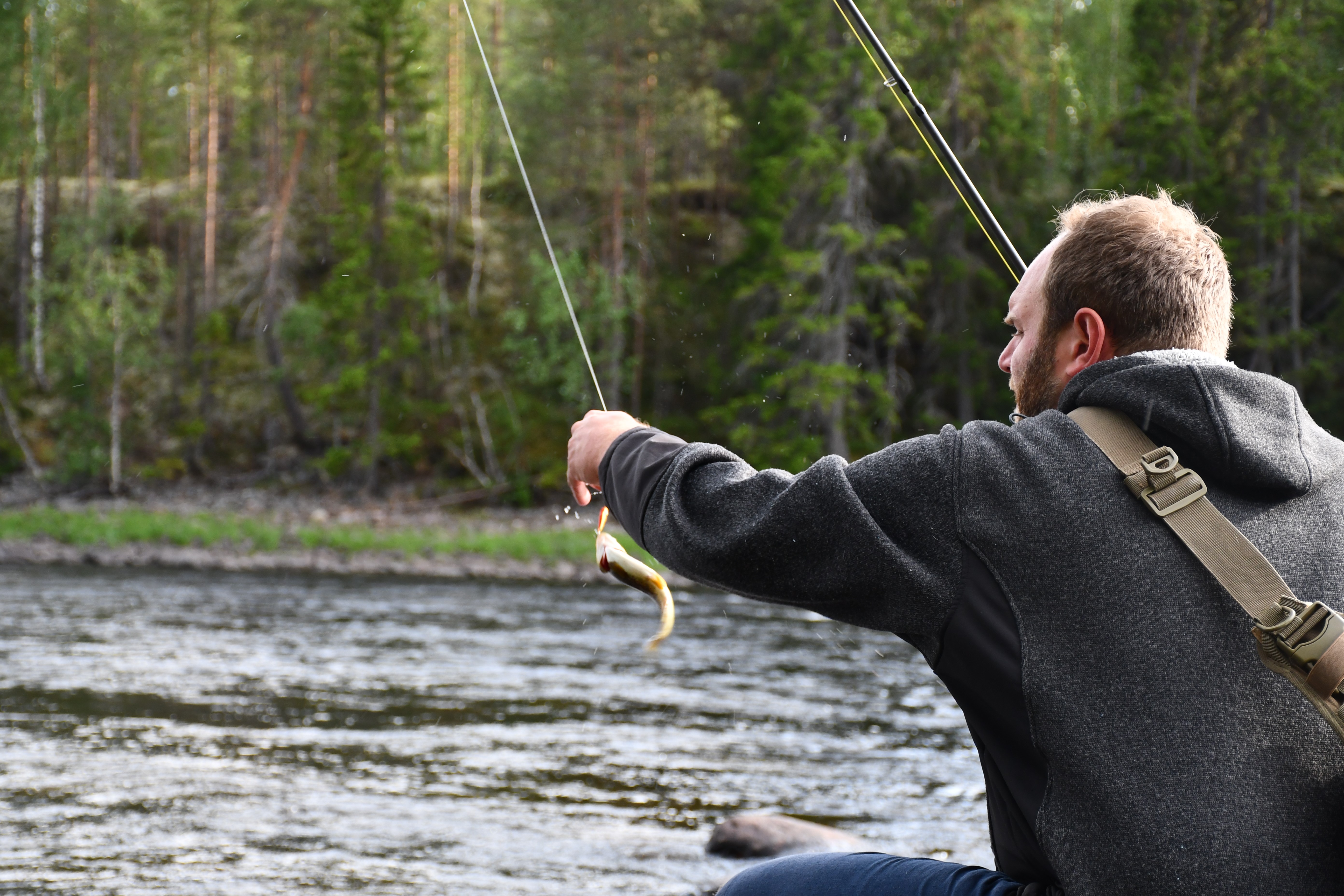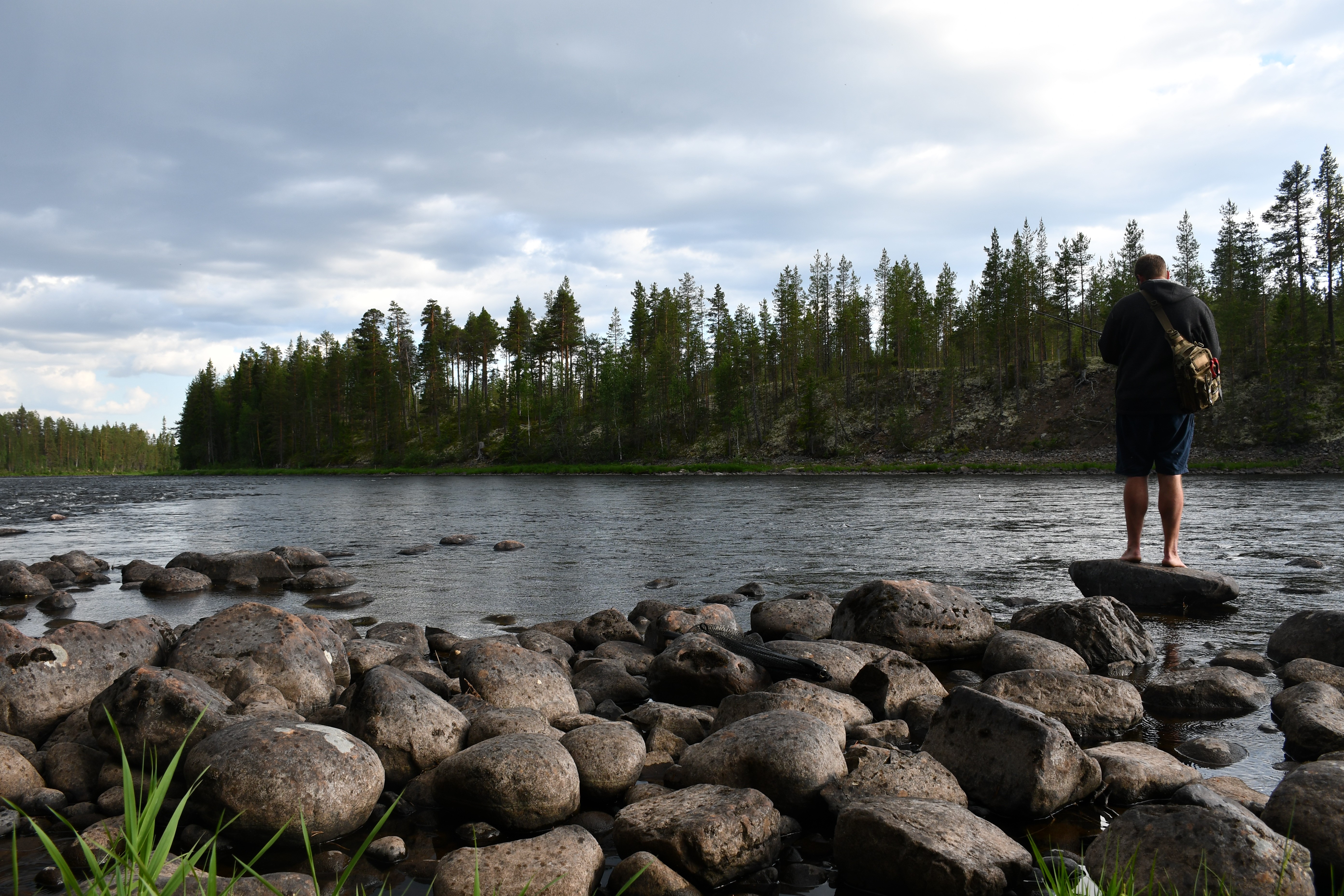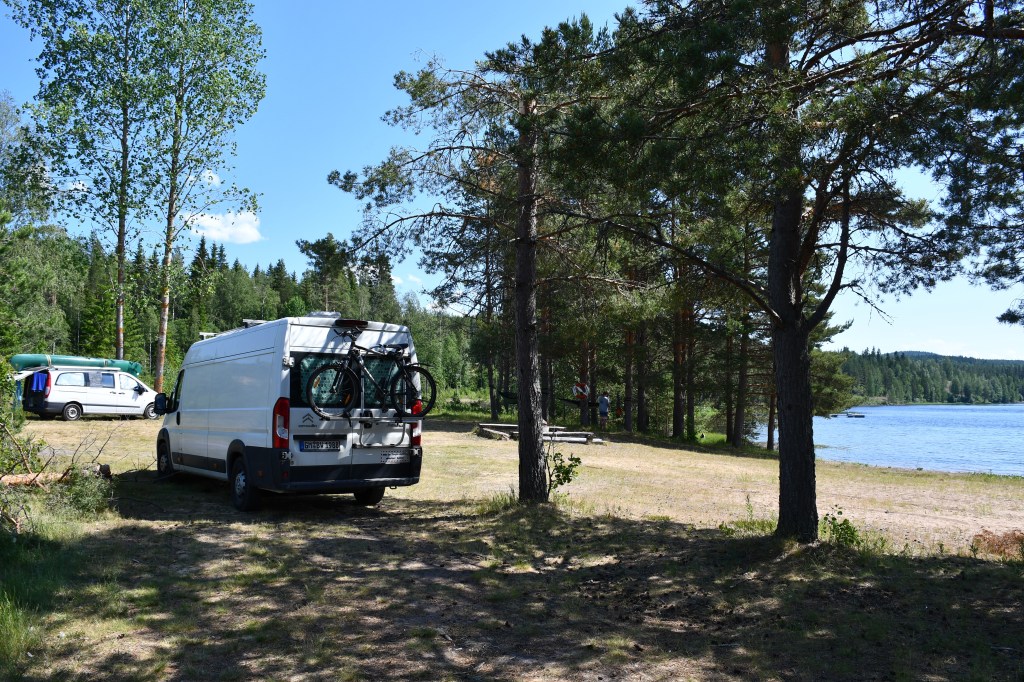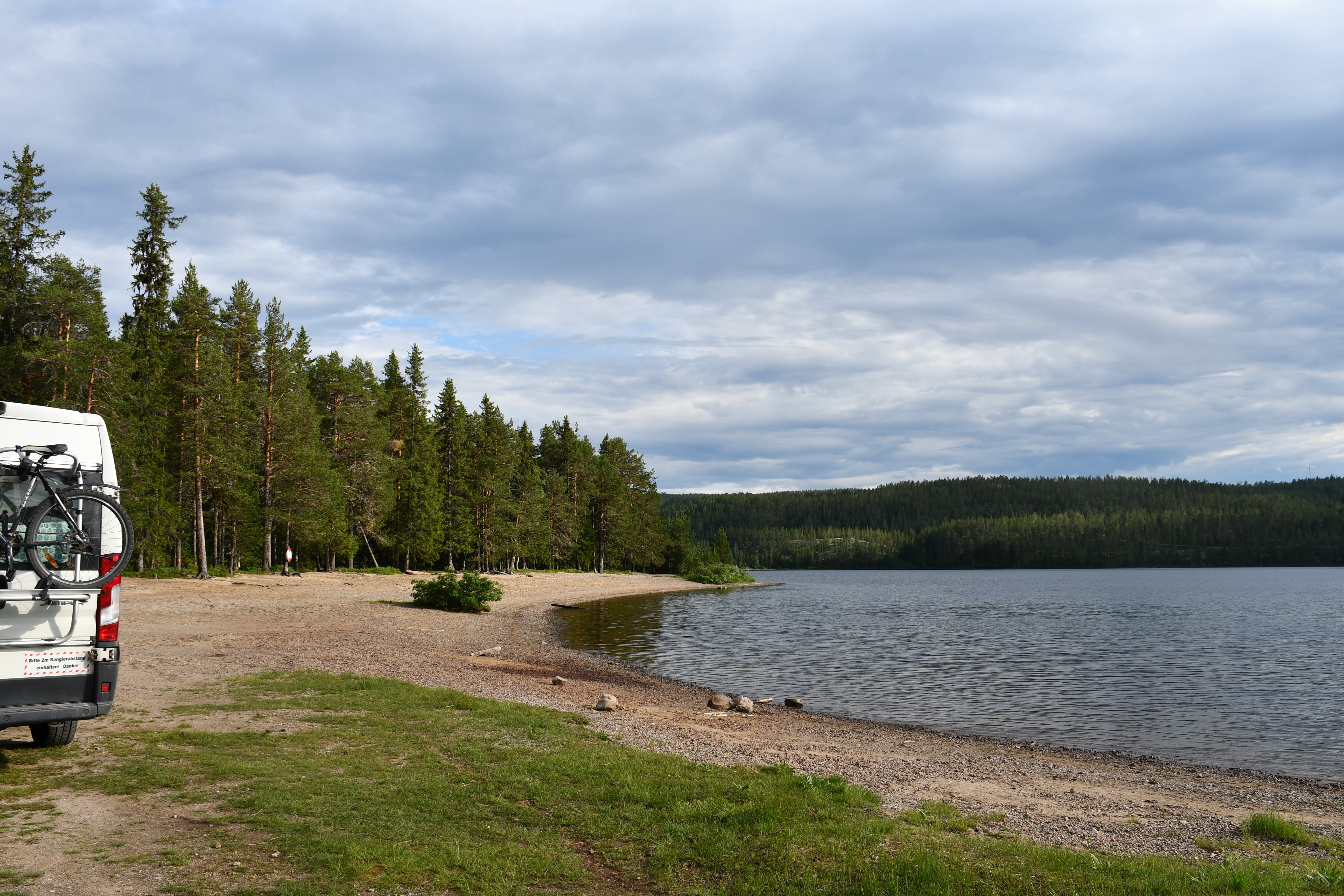 Weiter nach Norden, Ziel ist ungefähr Idre, der letzte ernst zu nehmende Ort vor der Grenze nach Norwegen. Ganz so weit kommen wir aber nicht, zu attraktiv wirken einige Stellplätze entlang des Flusses der nach Idre führt. Dort hat die Gemeinde aus Naturschutzgründen ausgewählte natürlich angelegte Plätze geschaffen wo man für 6€/Nacht übernachten kann. Neben zahlreichen Mücken und Knotts begegnet Tim dem einen oder anderen Fisch. Ansonsten bleibt es ruhig. Weder Bären, noch Rentiere oder Elche.