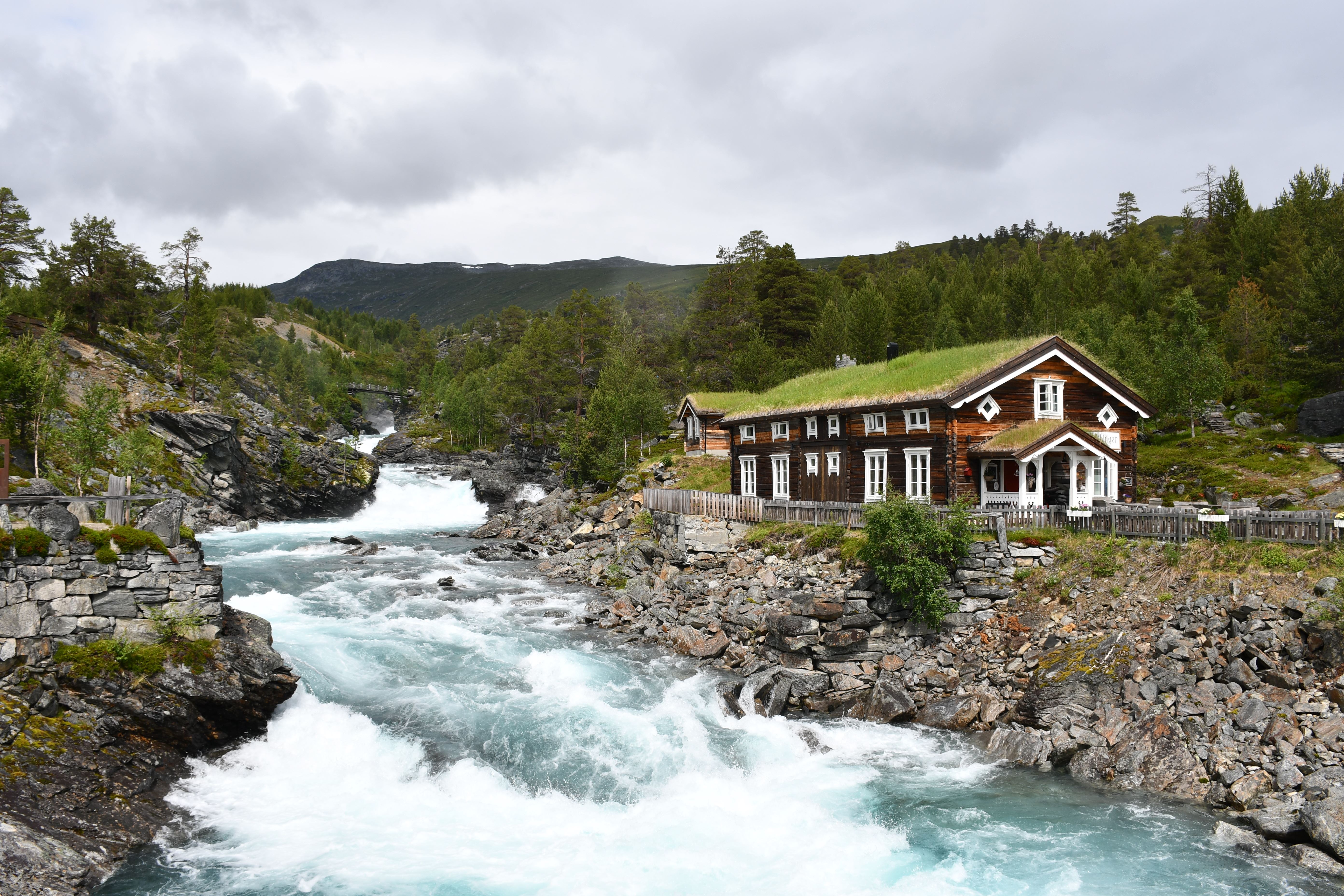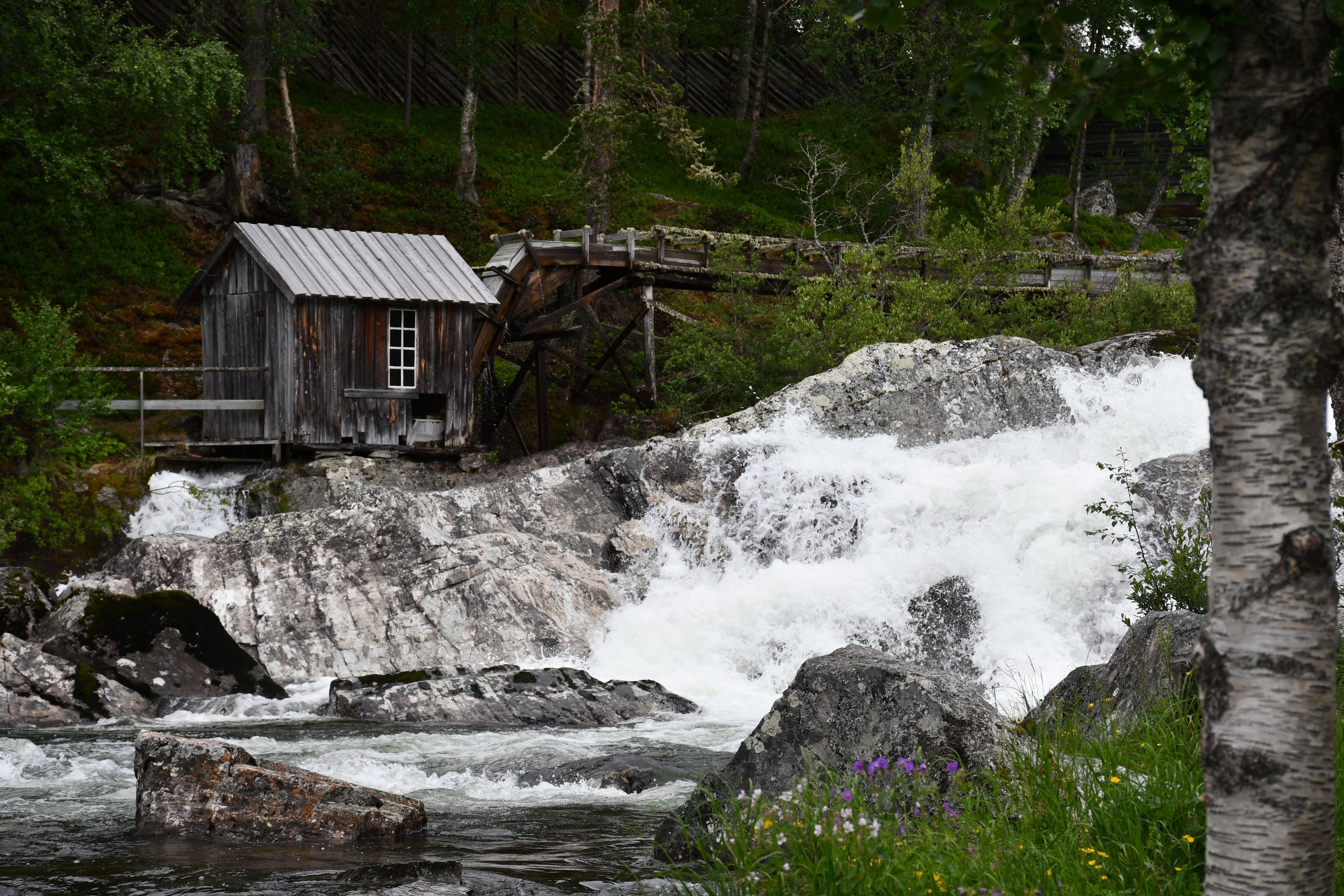 Tag Zwei im Nationalpark Rodane, ich breche nach einem kleinen Frühstückssnack auf um die Berge des Rodane-Nationalparks zu umrunden um mir die ganze Geschichte von der anderen Seite anzuschauen, vor allem mit dem Wissen dass man dort deutlich weiter hoch kommt, sowohl mit dem Auto als auch zu Fuß. Unterwegs flasht mich zunächst die Aussicht von einer hochmodernen Plattform auf den See nebst schneebedeckter Berge im Hintergrund, danach werde ich spontan vom Vannbruks-Museum zum anhalten motiviert. Leider hat dieses nach eingehender Inspektion nicht geöffnet, lediglich die angrenzende dazugehörige alte Sägerei lässt einen Blick in ihr Inneres zu. Die gesamte Anlage beweist die Kreativität früherer Menschen die Kraft des Wasser zu nutzen. Mithilfe umgeleiteter Wassermassen konnte im Inneren des Gebäudes die maschinelle Verarbeitung der Stammware vollzogen werden ohne dafür menschliche oder tierische Kraft aufwenden zu müssen. Davon abgesehen sieht das ganze Ensemble sehr brauchbar aus.