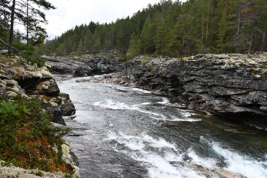 Am kommenden Morgen geht es bei leichtem Regen wieder ins Tal. Offenbar ist Sonntag und anders als noch in Schweden haben hier die Läden am für manche Menschen heiligen Wochentag nicht offen. Nunja, verhungern tut man so schnell ja nicht, zumal ich mich unterdessen erstmal als Angler versuchen werde, Marius Rute ist seit unserer gemeinsamen Zeit in meinem temporären Besitz und in einem Angelladen konnte ich unlängst wichtiges Zubehör erwerben.