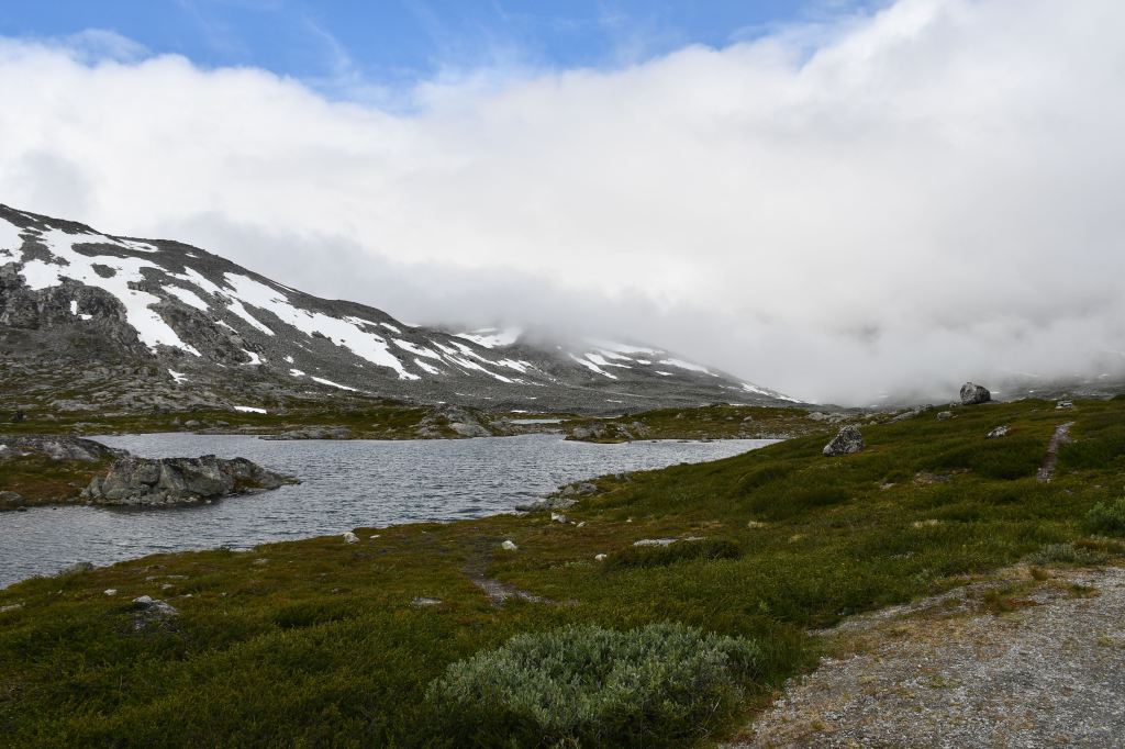 Entgegen meiner sonstigen Gepflogenheiten habe ich mir diesmal einen kostenpflichtigen Platz ausgesucht, für immerhin 10€ lässt es sich hier direkt am See aushalten. Dafür wird einem neben der spektakulären Aussicht allerdings nichts (WC o.ä.) geboten. Aber wer braucht so was schon, was man braucht aht man ja bekanntlich mit dabei. Als Einschätzung: jeglicher Service wie besagte Toilette kostet in der Regel 30€ aufwärts, Duschen und andere Späße sind dann noch extra zu bezahlen. Norwegen ist eben teuer.