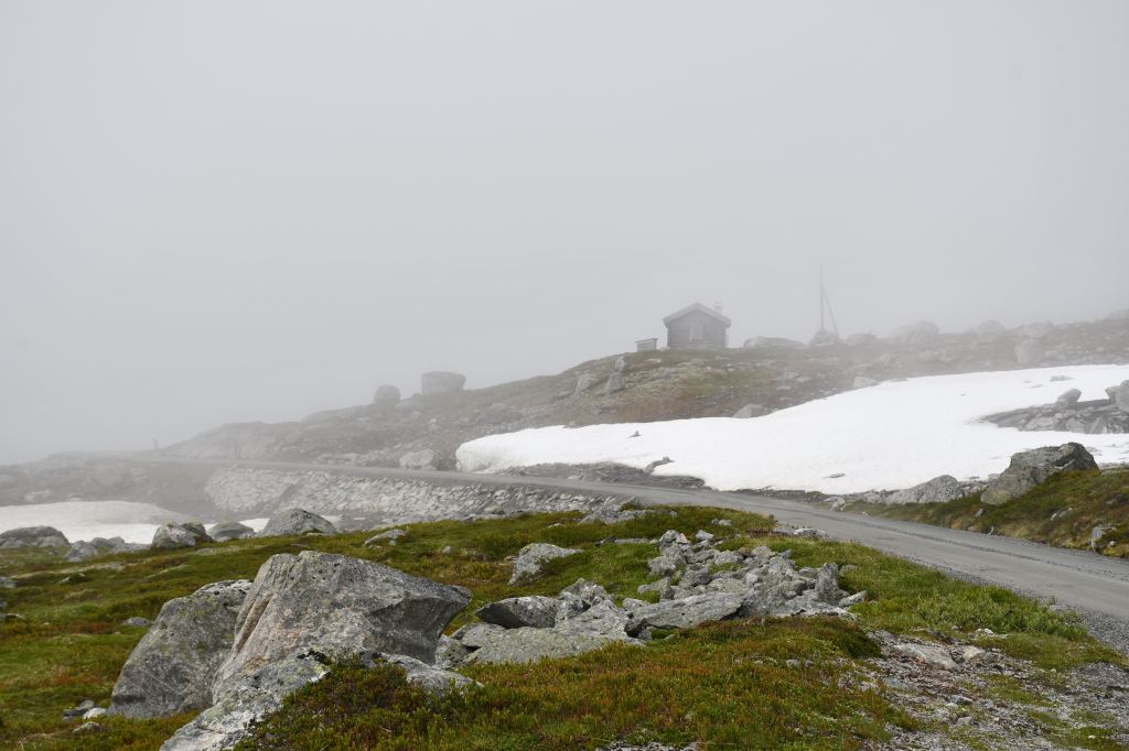 Für den heutigen Tag habe ich mir eine Mischung aus Auto-Sightseeing (man muss sich den örtlichen Gegebenheiten ja auch anpassen), klassischer Wanderung und Angeln vorgenommen. Gestartet wird wenig überraschend mit dem entspannten, da sitzenden Teil. Anstatt die handelsübliche gut ausgebaute Landstraße durch die Täler zu nehmen biege ich links auf die nächste Schotterpiste ab um die alternative Passroute zu nehmen. Die hat mal wieder einiges zu bieten! Neben eisigen Temperaturen um die 6 Grad erhasche ich sensationelle Blicke auf die Berge, zugefrorene Bergseen und einsame Hütten hier und da. Und dann, lange nichts. Was auf der einen Seite mit gutem Wetter (kein Regen) begann, verflüchtigt sich auf der halben Strecke und endet in einem undurchdringlichen Wolkendickicht mit Sichtweiten unter 20 Metern. Was zunächst einmal recht witzig klingt ist mit einem Van auf einspuriger Straße mit Gegenverkehr nur so halb geil. Aber machbar, bei moderatem Tempo 30 lässt sich jedes Wassertröpfchen einzeln begutachten.
