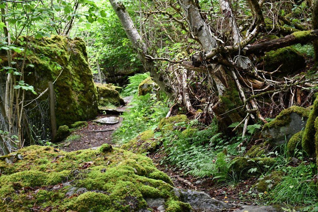 Hier finde ich Platz neben einem tosenden Bergbach und mache mich trotz bescheidenem Nieselwetter auf den Weg, allerdings lediglich etwas über 3km, fühlt sich dank starken Steigungen aber wesentlich weiter an. Der Rundweg ist ausgesprochen liebevoll gestaltet, die Info-Points und schöne Ausguckstellen machen richtig Spaß! Abgesehen von der illustren Naturauswahl dieser Gegend, mal wieder!