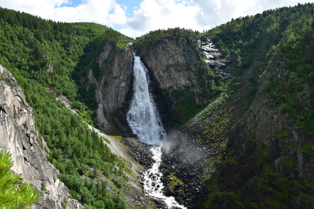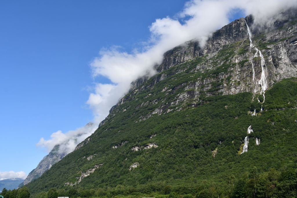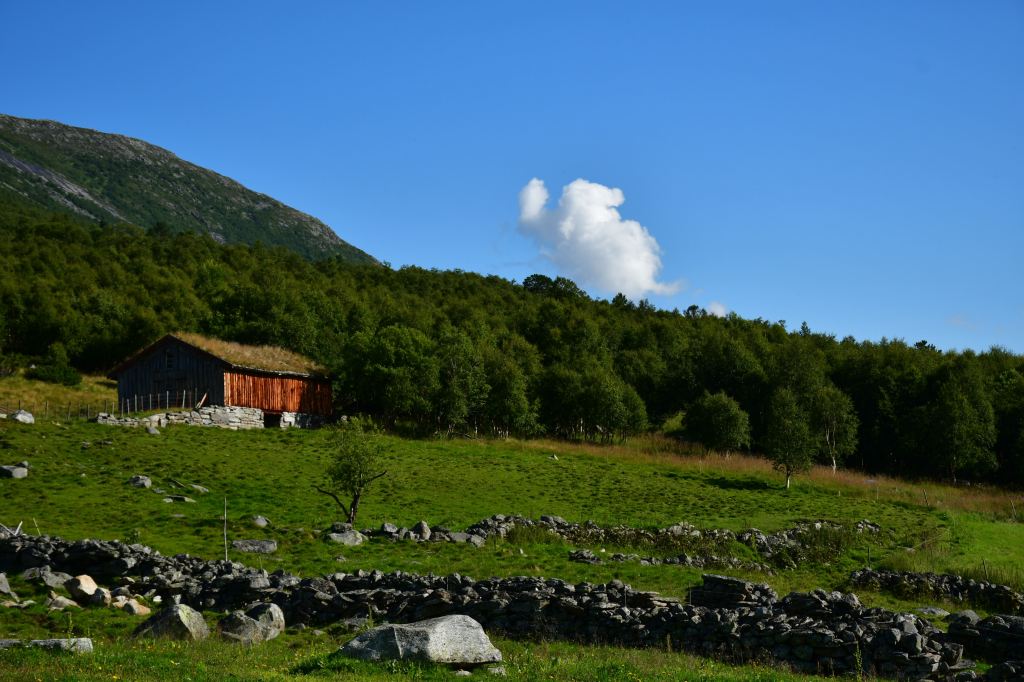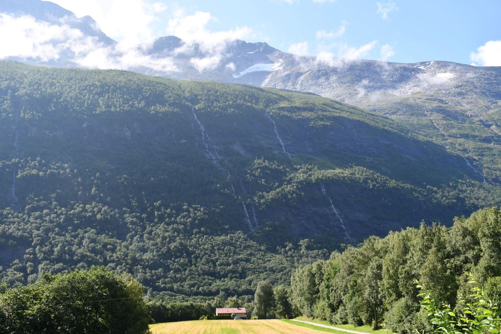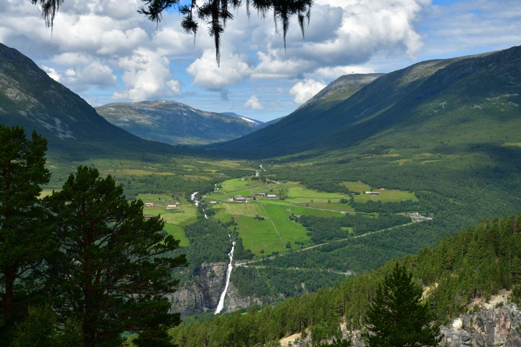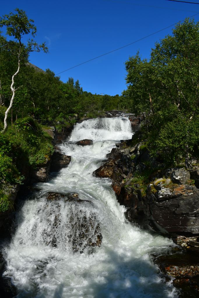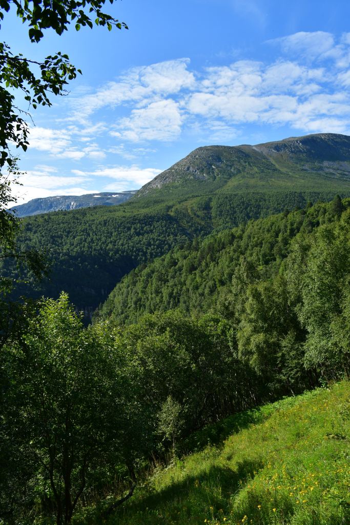 [Amotan gorge (Svoufallet) 29.07.2023] Lazy Friday. Frühstück um 13:30Uhr. Kann man mal machen an einem Freitag. Aufgestanden bin ich aber doch früher, um mich am Vormittag aus dem Innerdal zu verabschieden, erneut Sunndalsora zu passieren und in der Folge der Driva Flussaufwärts zu folgen durch ein in großen Teilen kultiviertes Tal welches zu beiden Seiten von steil aufragenden Berghängen gesäumt wird von denen sich an vielen Stellen teilweise spektakuläre Wasserfälle ergießen. Zwischenstopps natürlich inklusive. Ein richtiges Ziel habe ich nicht vor Augen, lediglich eine grobe Idee. Ich möchte in das südlich gelegene Tal welches dank weniger schlecht ausgebauter Straßen und keinerlei nennenswerten Ortschaften Natur-Pur verspricht. Es ist Teil vom Amotan-Grovudalen, einem Teil des Nationalparks Trollheimen in dem ich mich nach wie vor befinde.