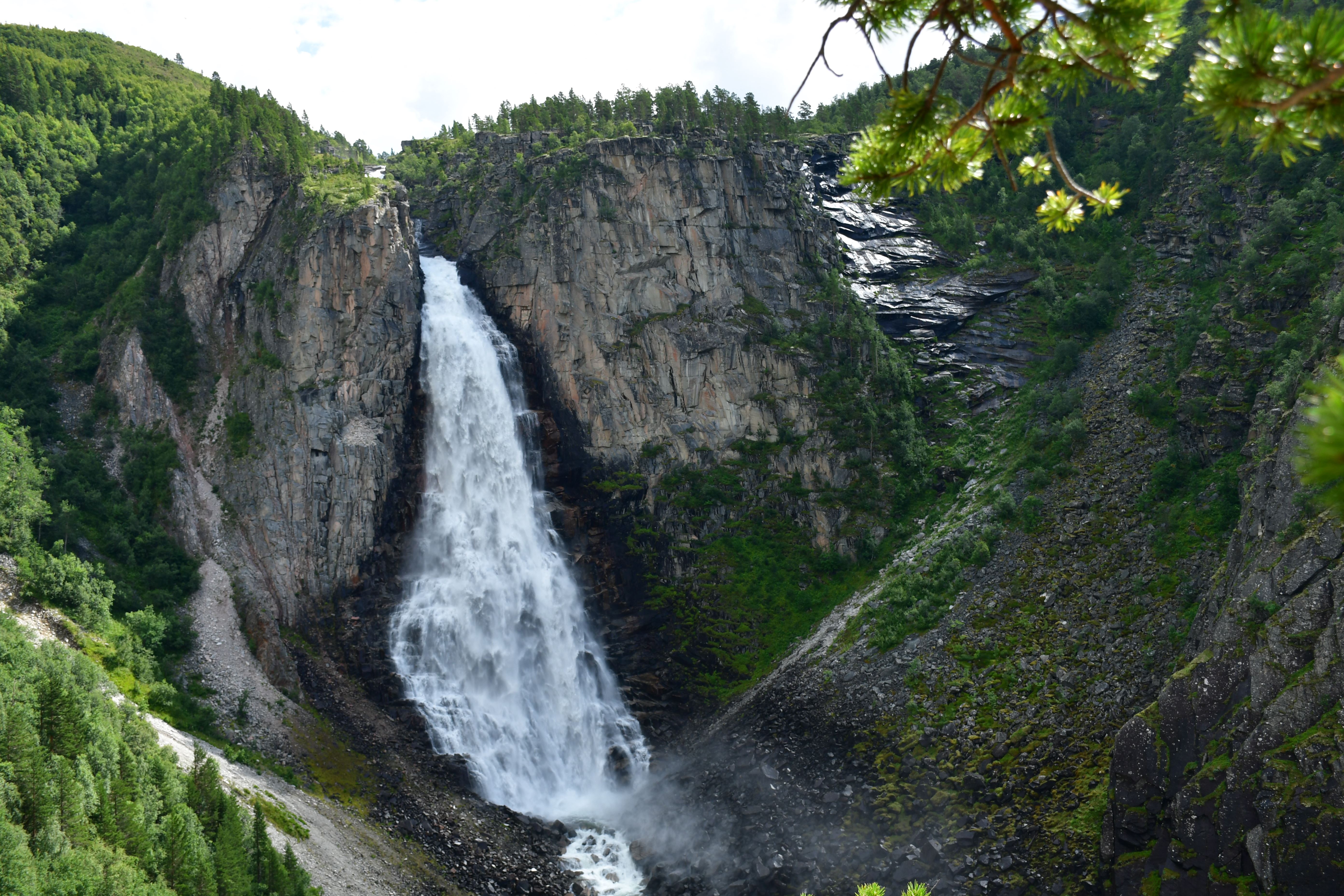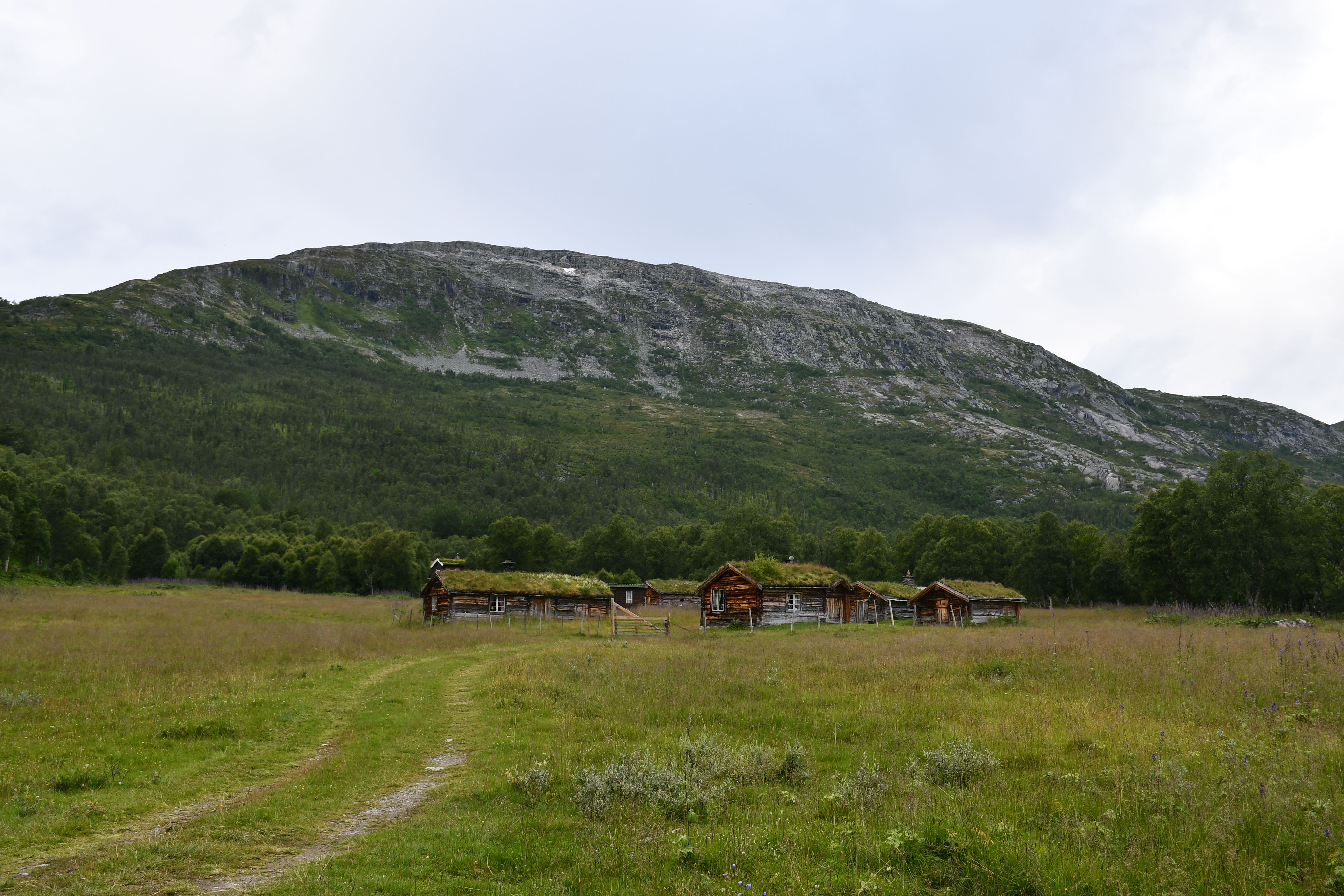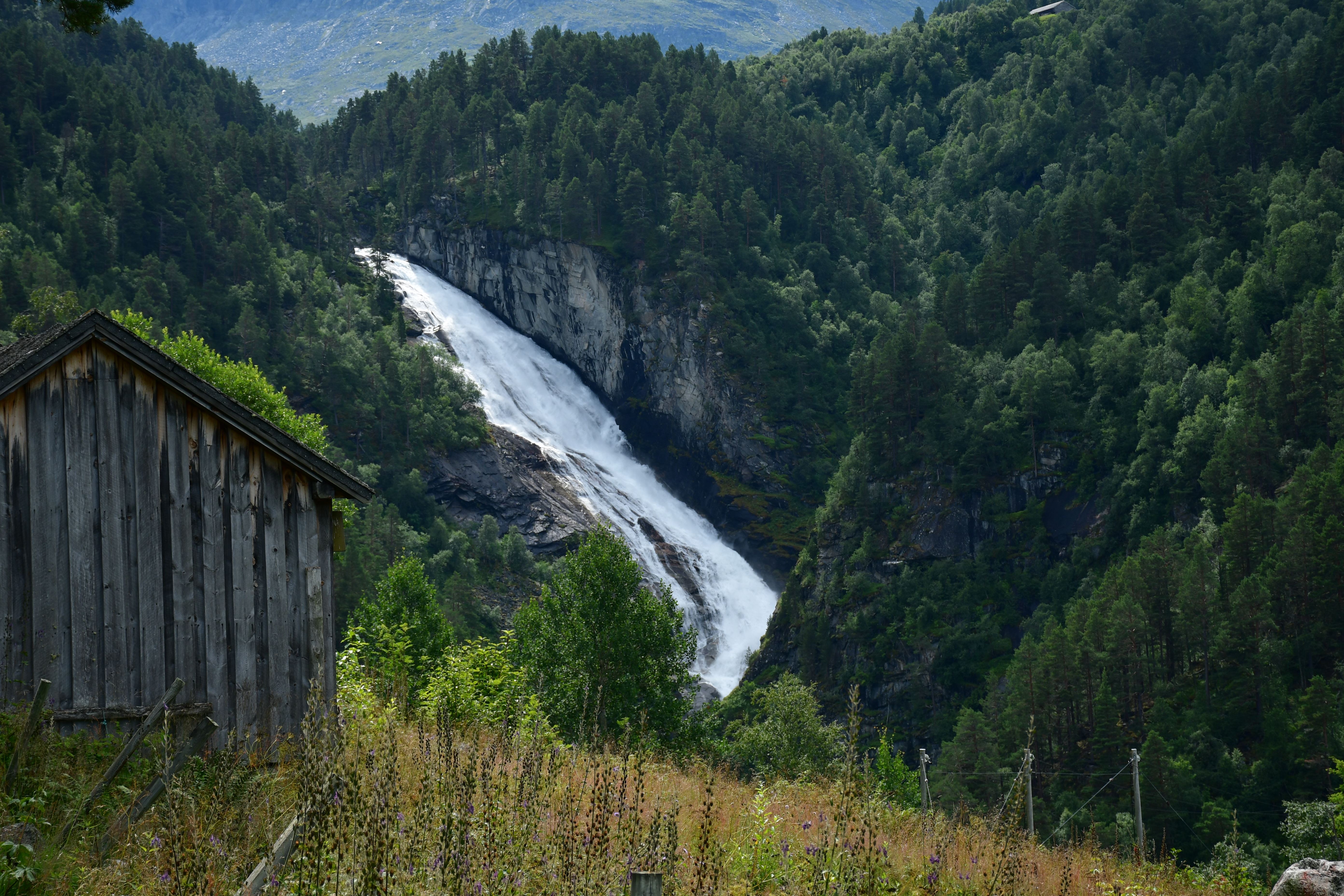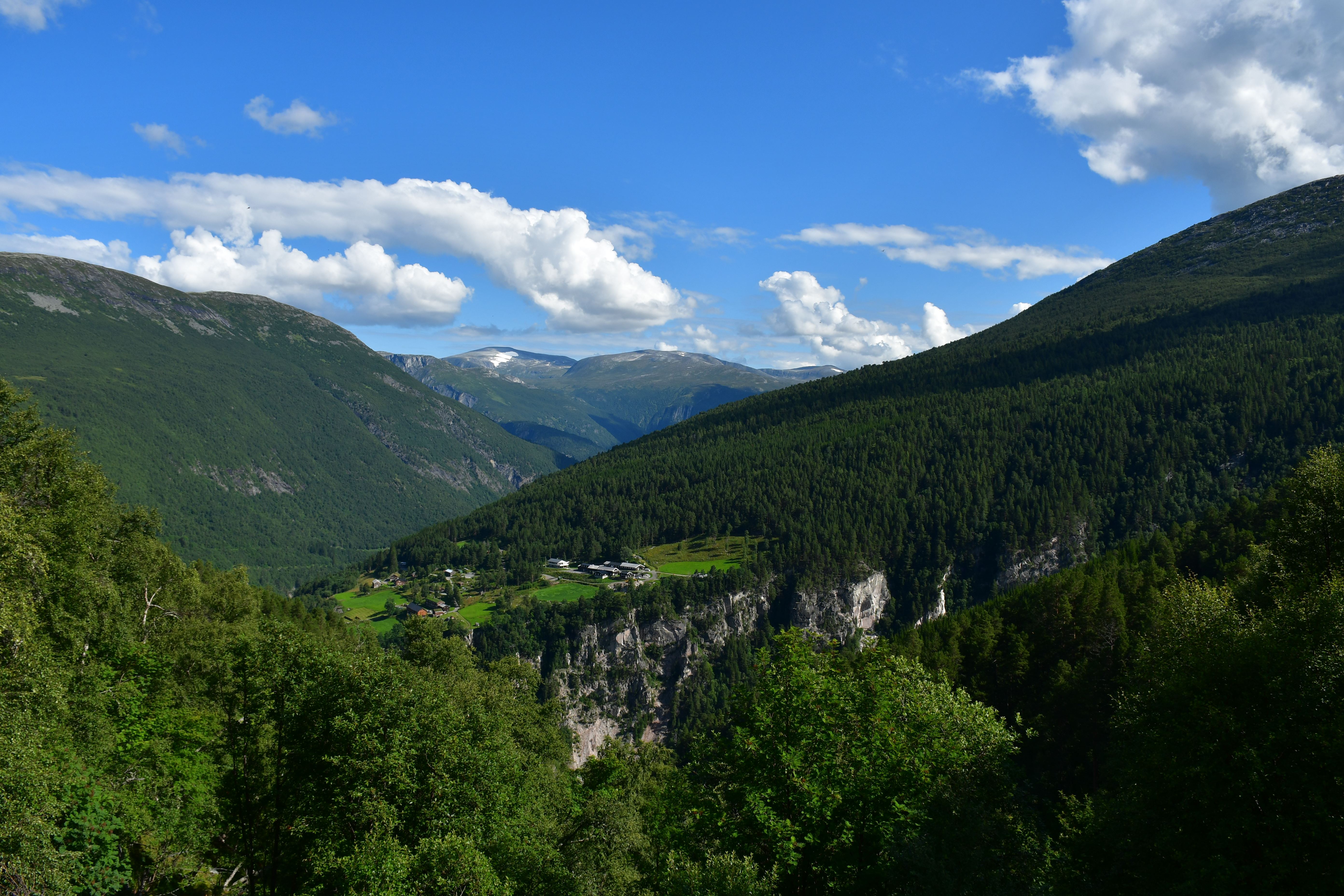 [Amotan gorge (Svoufallet) 29.07.2023] Lazy Friday. Frühstück um 13:30Uhr. Kann man mal machen an einem Freitag. Aufgestanden bin ich aber doch früher, um mich am Vormittag aus dem Innerdal zu verabschieden, erneut Sunndalsora zu passieren und in der Folge der Driva Flussaufwärts zu folgen durch ein in großen Teilen kultiviertes Tal welches zu beiden Seiten von steil aufragenden Berghängen gesäumt wird von denen sich an vielen Stellen teilweise spektakuläre Wasserfälle ergießen. Zwischenstopps natürlich inklusive. Ein richtiges Ziel habe ich nicht vor Augen, lediglich eine grobe Idee. Ich möchte in das südlich gelegene Tal welches dank weniger schlecht ausgebauter Straßen und keinerlei nennenswerten Ortschaften Natur-Pur verspricht. Es ist Teil vom Amotan-Grovudalen, einem Teil des Nationalparks Trollheimen in dem ich mich nach wie vor befinde.