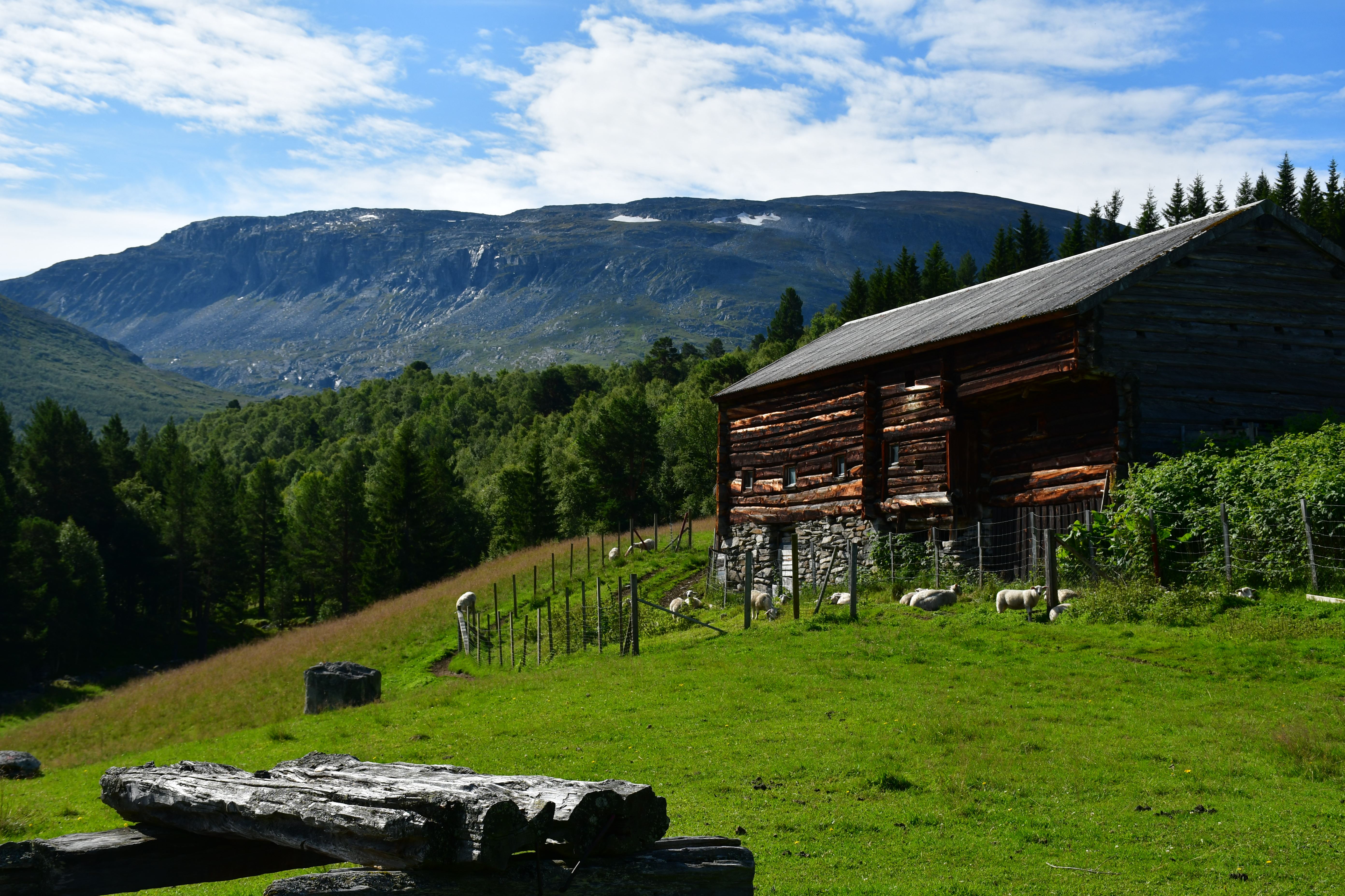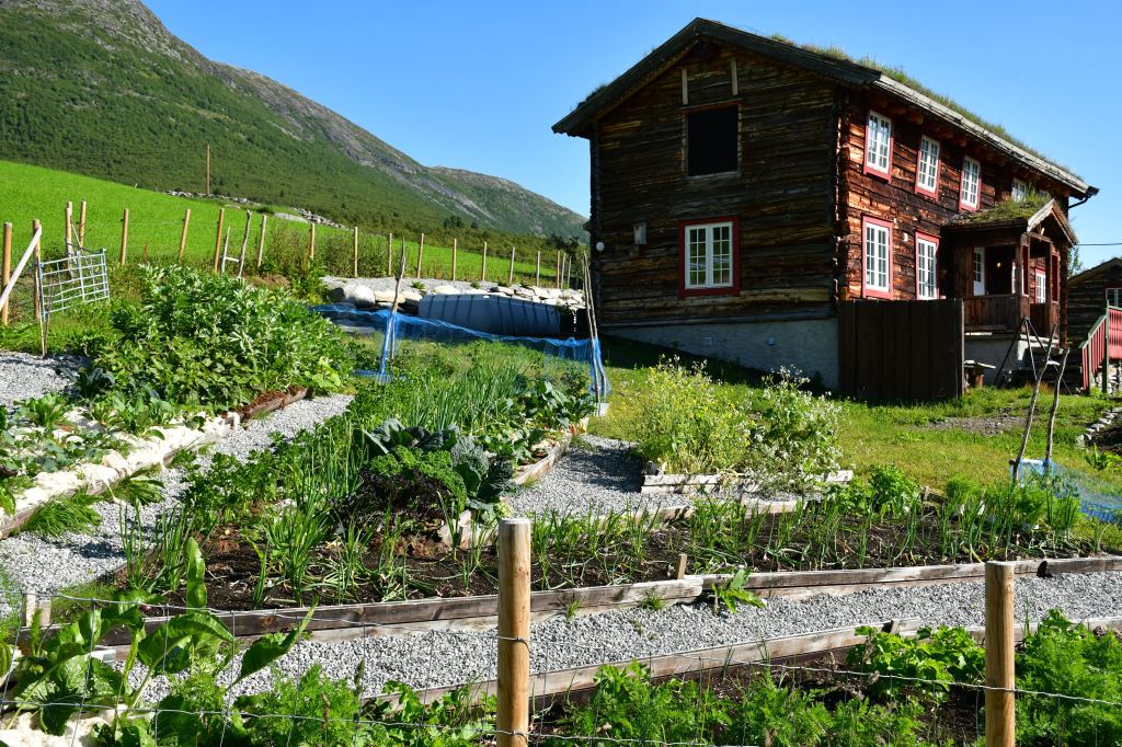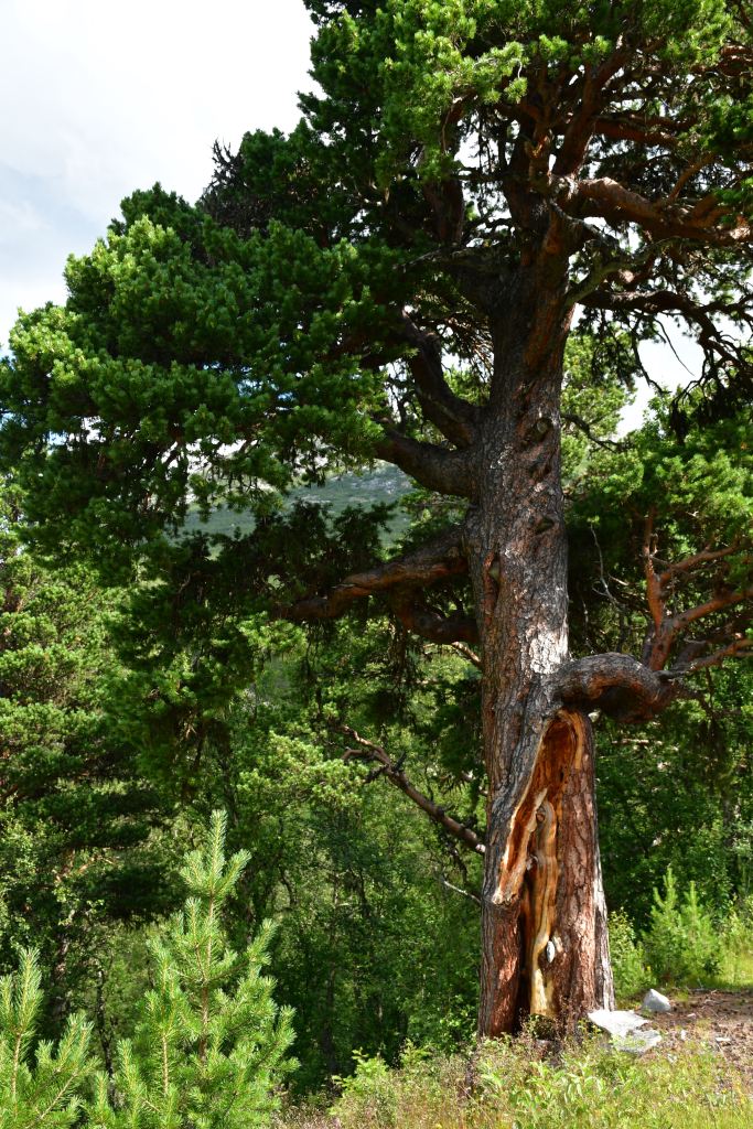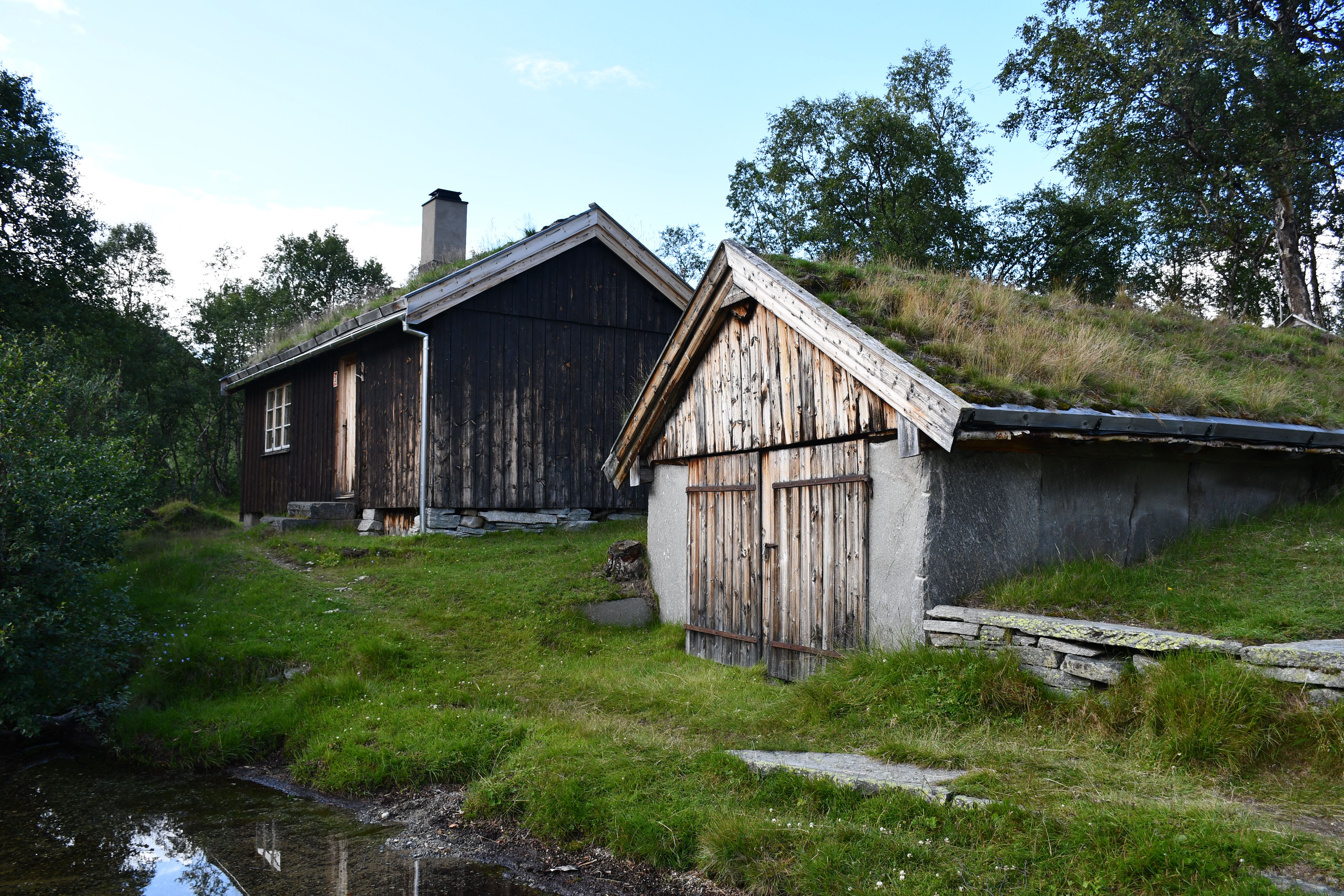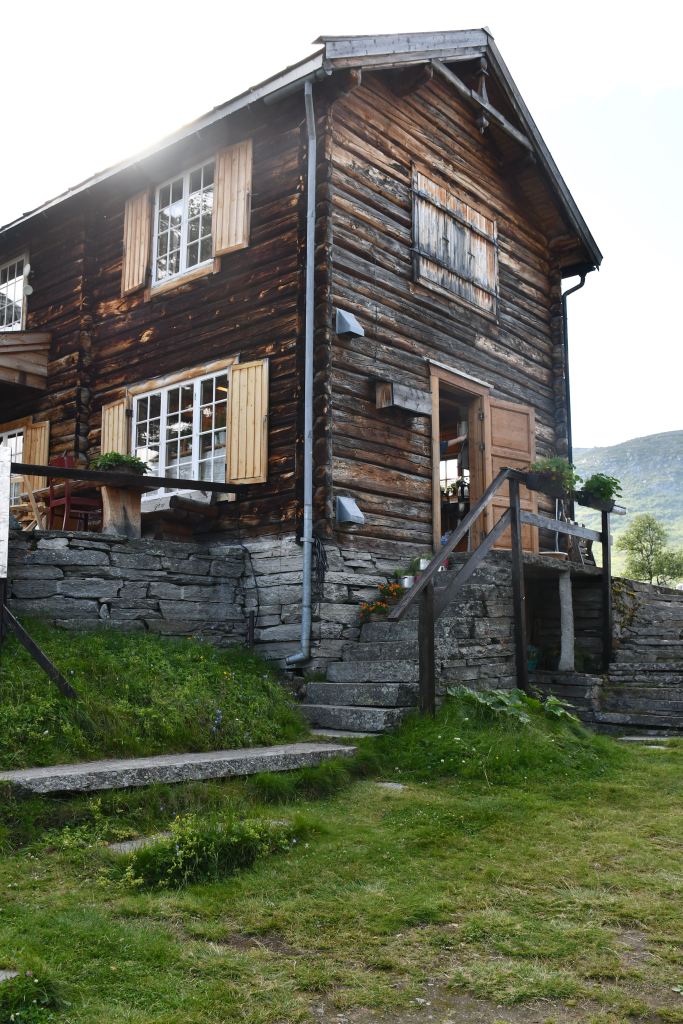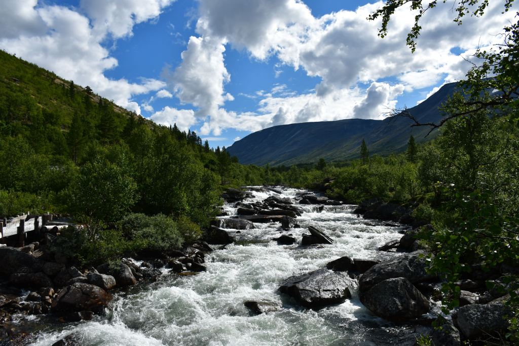 Nach moderater aber stetiger Steigung auf den ersten 3 Kilometern der die Pumpe ans laufen bringt geht es auf eine Schotterpiste. Die Höhenmeter lassen sich ab hier an verschmerzen da sie sich auf ein Minimum beschränken. Durch lichte Birkenwälder, vorbei an weitläufig verteilten Sommerhäusern geht es tiefer in das Tal hinein. Angekommen am Storovatnet erwartet mich (mal wieder) ein absoluter Highlightort. Wobei ehrlicherweise hier fast alles seit Wochen Highlights sind. Direkt am Seeablauf schmiegt sich auf einer kleinen Erhöhung das DNT Vangshaugen. Hier kann man es sich als Gast/Gästin kulinarisch erfrischen, Zimmer mieten oder sein Zelt aufschlagen. Nebenbei bietet der See und die Flüsse herausragende Möglichkeiten auf Bachforellenjagd zu gehen. Zu Fuß oder mit einem Kanu. Absolut traumhaft!