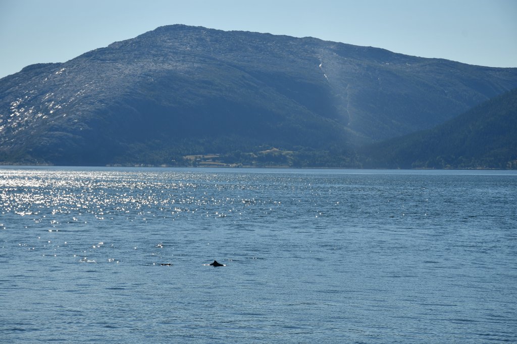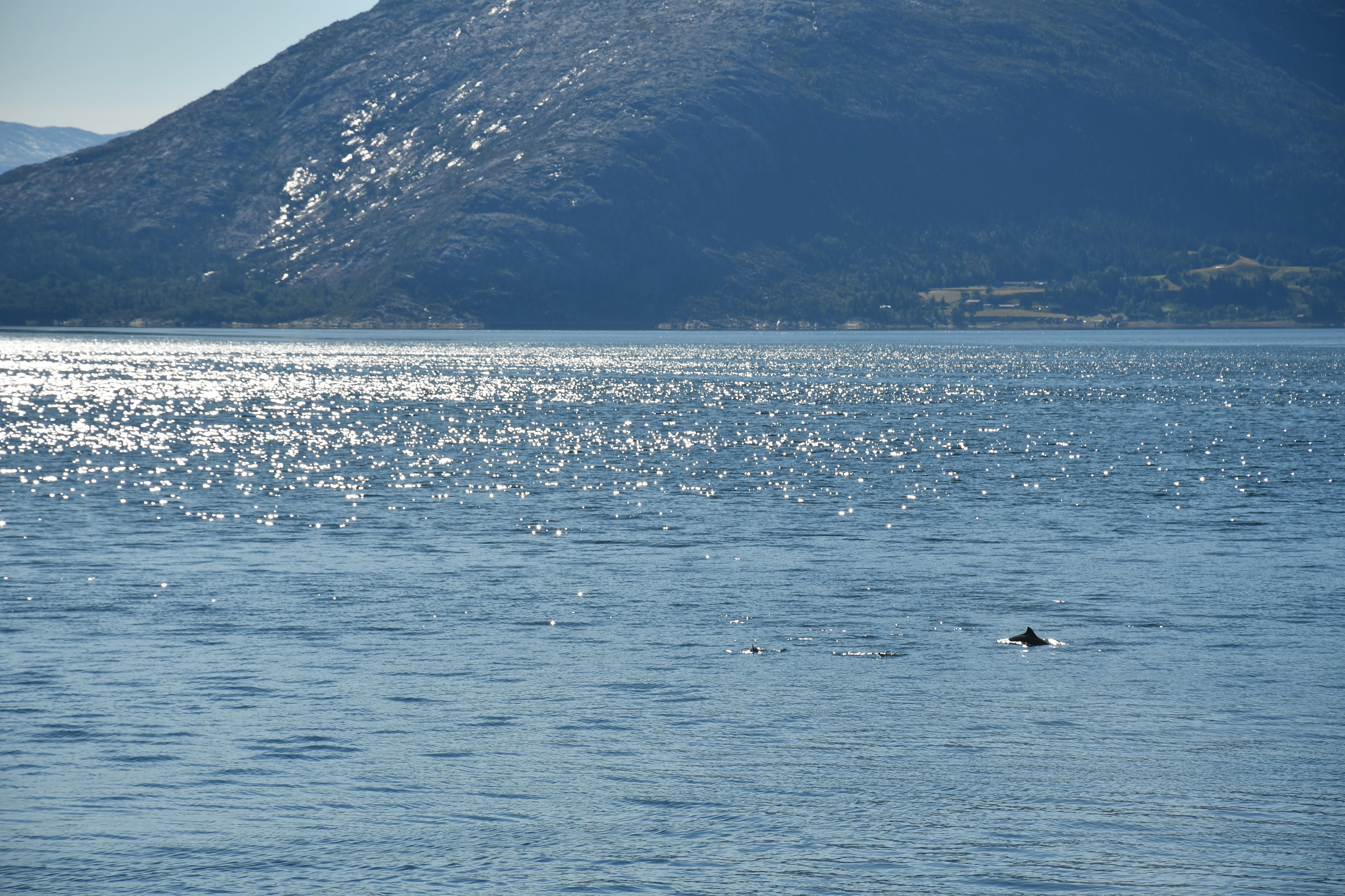 [Ursdalen (Vefsnfjorden), 18-19.08.2023] „Mal wieder ein Fjord“ sagen die einen, „Wow, wie schön“ sagen die anderen. Ich bin bei zweiterem. Diesmal bin ich im Vefsnfjorden bei Ursdalen mit an zwei Tagen leicht verändertem Standort. Vor allem bin ich angeltechnisch unterwegs, allerdings wie schon zuletzt nicht erfolgreich obgleich sich ein Fischreichtum zeigt welchen ich bisher in dieser Form noch nicht zu Gesicht bekommen habe. Am Ufer in den Seegraswiesen tummeln sich die kleinen Jungfische, davor im glasklaren Wasser schwimmen Köhlerschwärme (vermutlich) auf und ab und zum Abend hin wühlen riesige Makrelenschwärme das Wasser regelrecht auf und ziehen links wie rechts ihre Bahnen. Allerdings allesamt ohne von meinen Angelaktivitäten auch nur den Hauch von Aufmerksamkeit zu schenken. Ebenjene wird im Laufe des Tages von meiner Seite aus mehrmals in den Fjord gelenkt wo Wale ihre Runden drehen und einige Delphinschulen unterwegs sind. Ein unglaublich tolles Erlebnis und Schauspiel!!