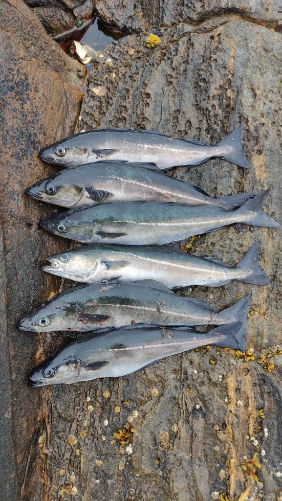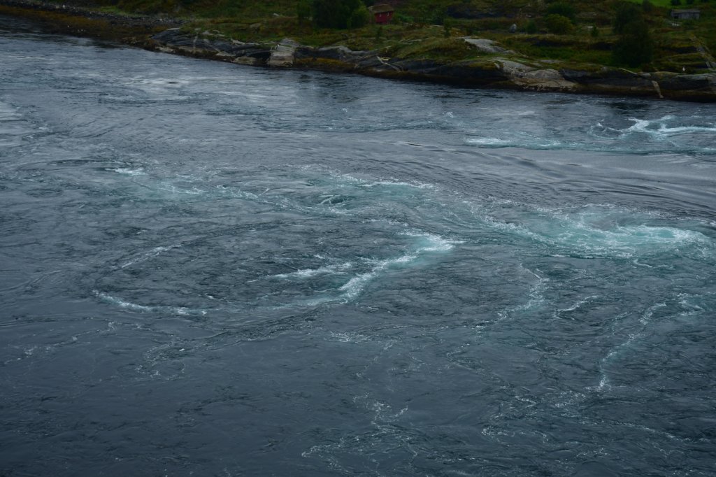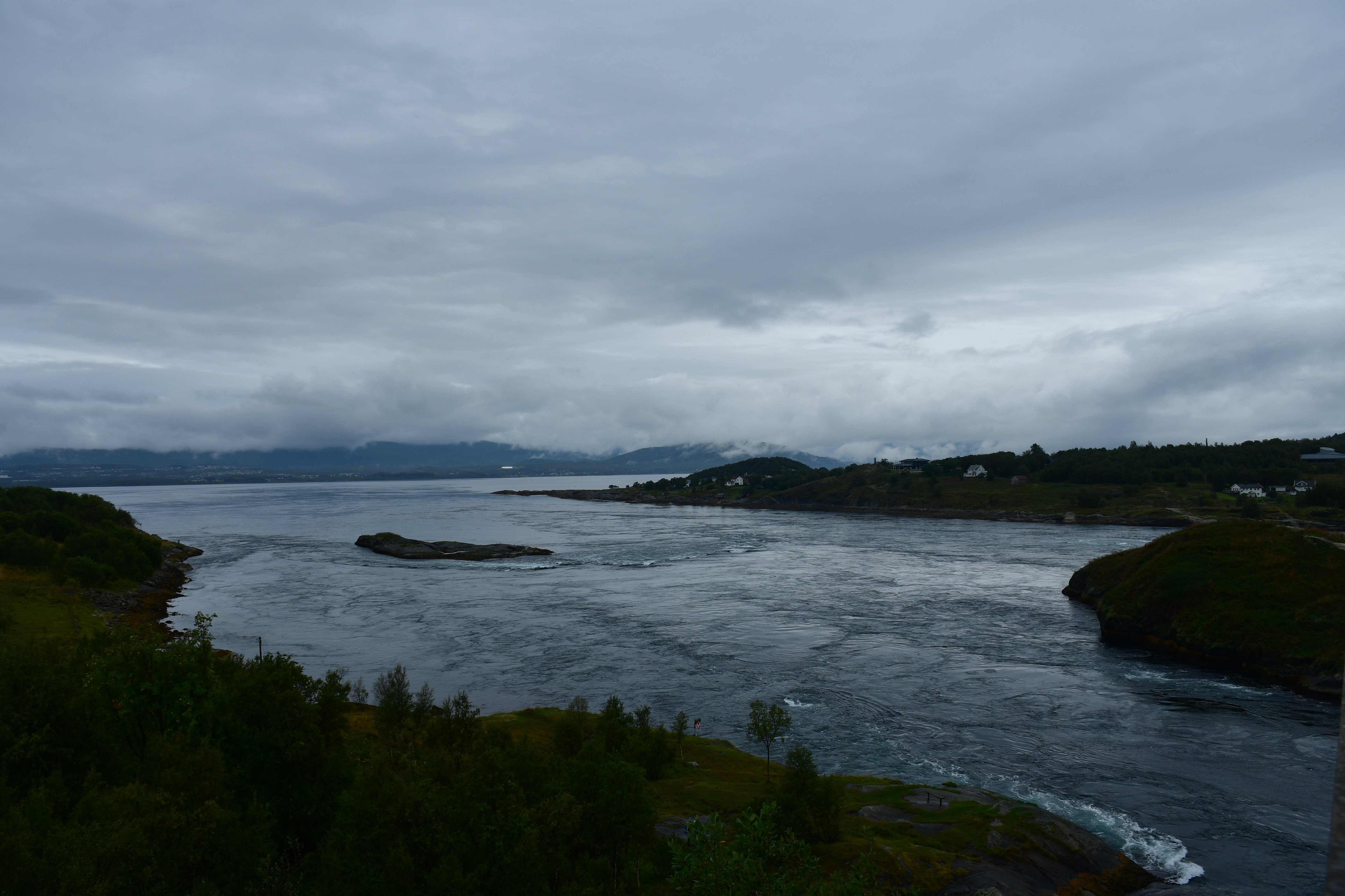 [Saltstraumen (Gangvatnet & Coop), 21-22.08.2023] Gewusst wie. Wie üblich ohne viel Plan bin ich morgens gestartet um am Ende am sogenannten Saltstraumen zu stranden. Auf den ersten Blick erhebt sich eine schön geschwungene Brücke über den „Eingang“ zum Fjord, und wie schon an einigen Stellen gesehen ergibt sich durch die Gezeitenströmung ein sehenswerter Strudel der sich sekündlich verändert, verschiebt und mal kleiner und mal größer wird. Wie ich Abends nach einer kleinen Recherche feststelle (mir waren die Touristenhorden ins Auge gefallen was so weit im Norden tendenziell eher eine Seltenheit ist) ist dies der stärkste Gezeitenstrom der Welt. Hier fließen im Laufe der 6 Stunden (so lange geht eine Gezeitenphase, dh. die Zeitspanne zwischen voller Ebbe und voller Flut) 400 Millionen Kubikmeter Wasser mit einer Geschwindigkeit von bis zu 40kmh durch die relativ flache Meerenge. Was an sich schon ein echter Hingucker ist, ist für viele Fischarten ein Paradies (Nährstoffreiches Wasser wird tagein, tagaus geliefert) was natürlich auch die AnglerInnen anzieht. Meine Wenigkeit kann nach vielen erfolglosen Tagen endlich wieder massenweise Essbares an Land ziehen. Nach nur 25Minuten und etwa 20 gecatchten Fischen (3 davon entnommen) beende ich am ersten Tag meine Einheit und beschränke mich danach auf das Beobachten des regen Treibens. Immer wieder sind zahlreiche Fische zu beobachten die beim Jagen die Wasseroberfläche durchbrechen und am zweiten Tag meiner Anwesenheit sind auch wieder einige Delphine unterwegs.