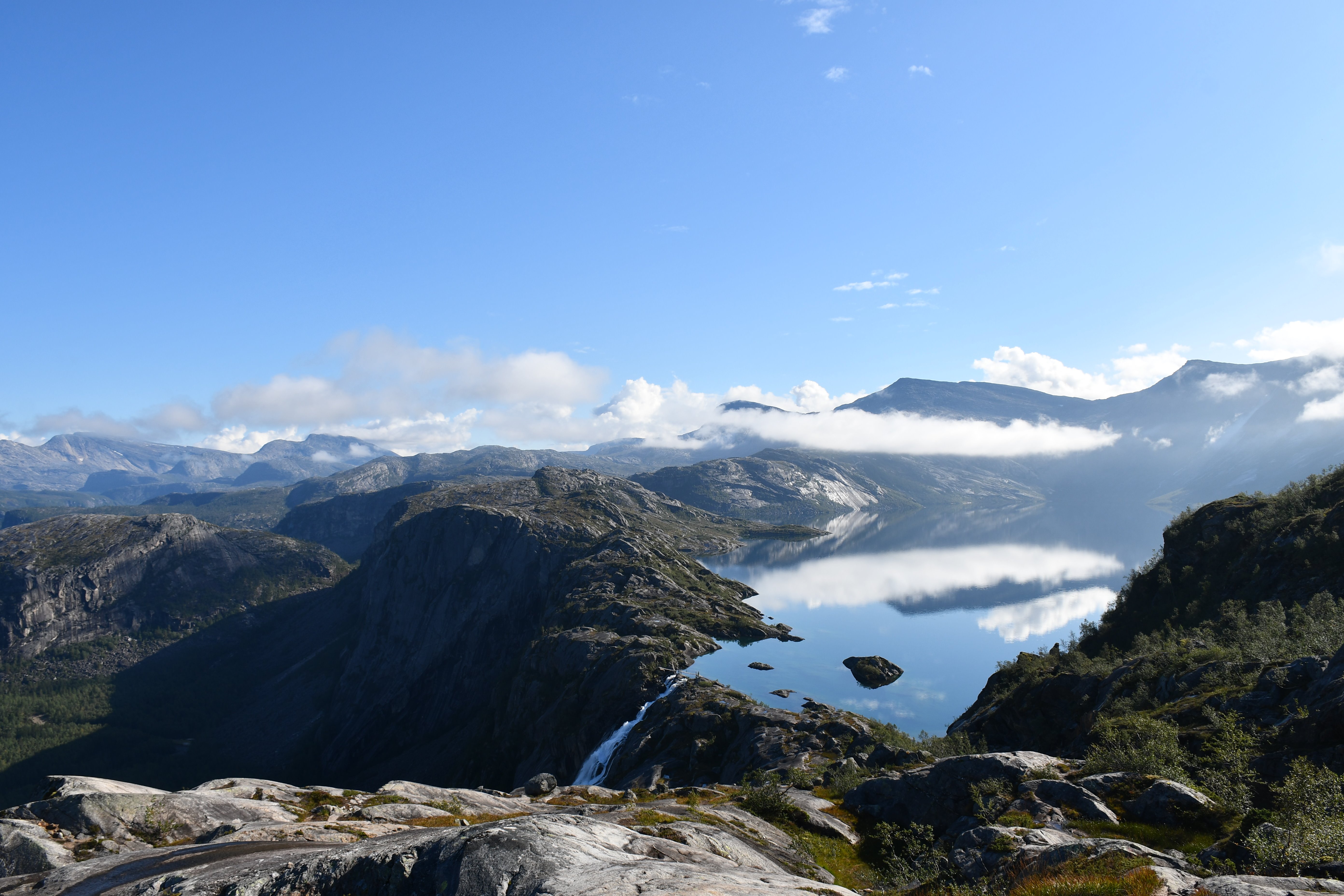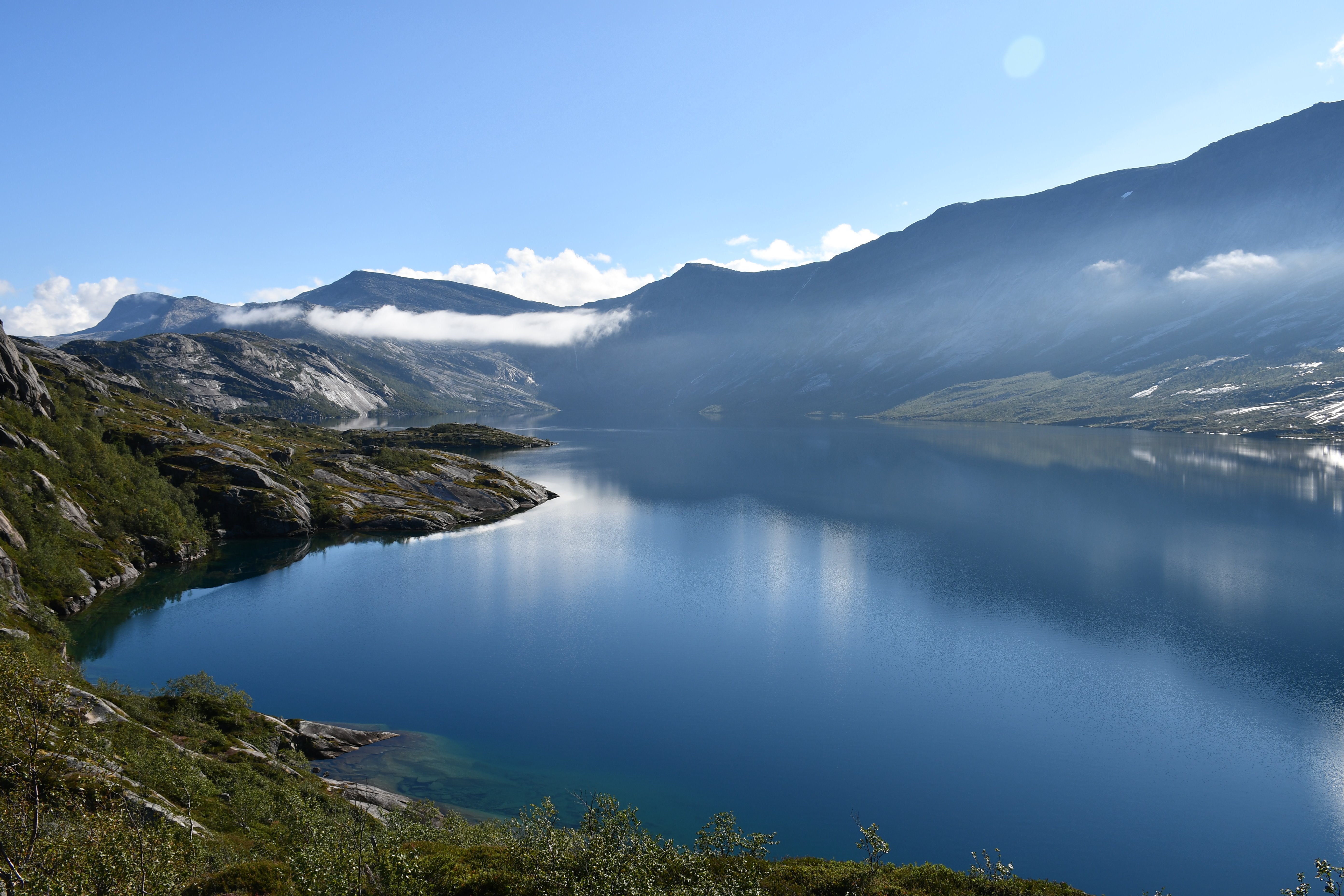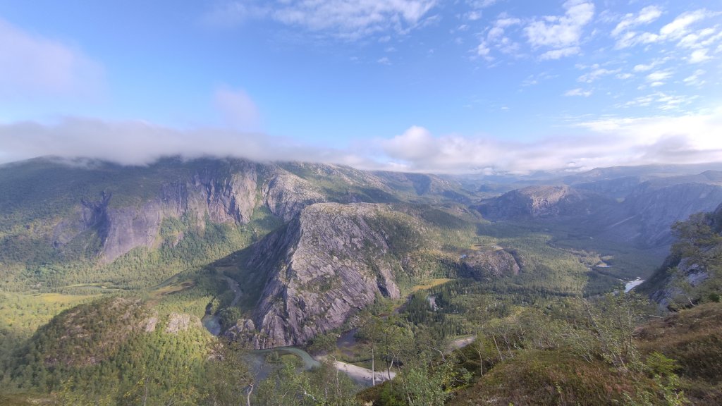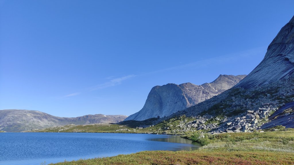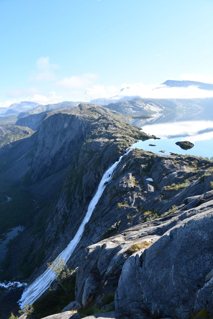 Die Entscheidung die Tour um einen Tag auf den sonnigen Freitag zu verschieben ist am Ende ein Goldgriff. Auf den anspruchsvollen knapp 24km bei 2400 Höhenmetern fällt mir ein ums andere Mal die Kinnlade herunter. Norwegen zeigt sich von seiner besten Seite. Natur pur. Unglaublich beeindruckende Aussichten, Bergseen mit Wasserfällen, grüne Täler mit naturbelassenen Flüssen die sich umherschlängeln und natürlich tolle Berglandschaften wohin das Auge blickt. Ein absolutes Highlight auf meiner Reise!