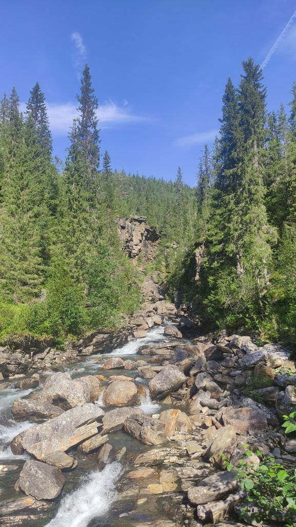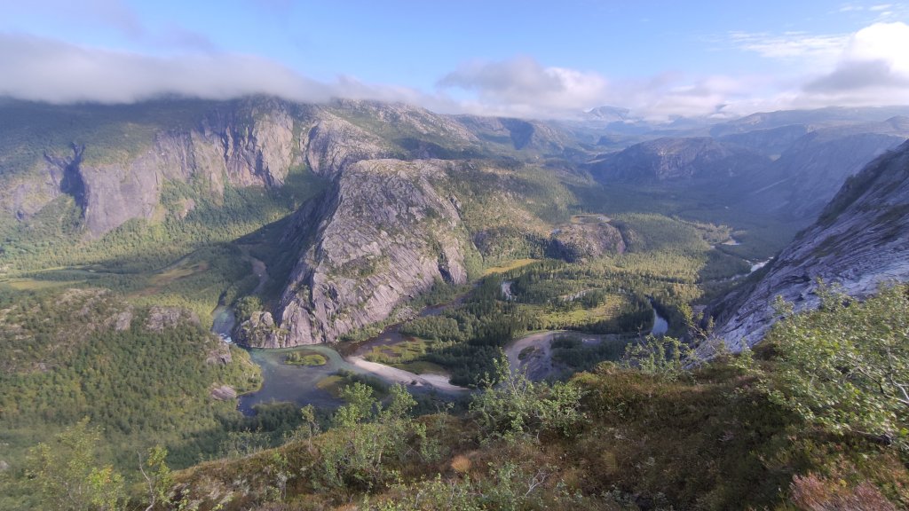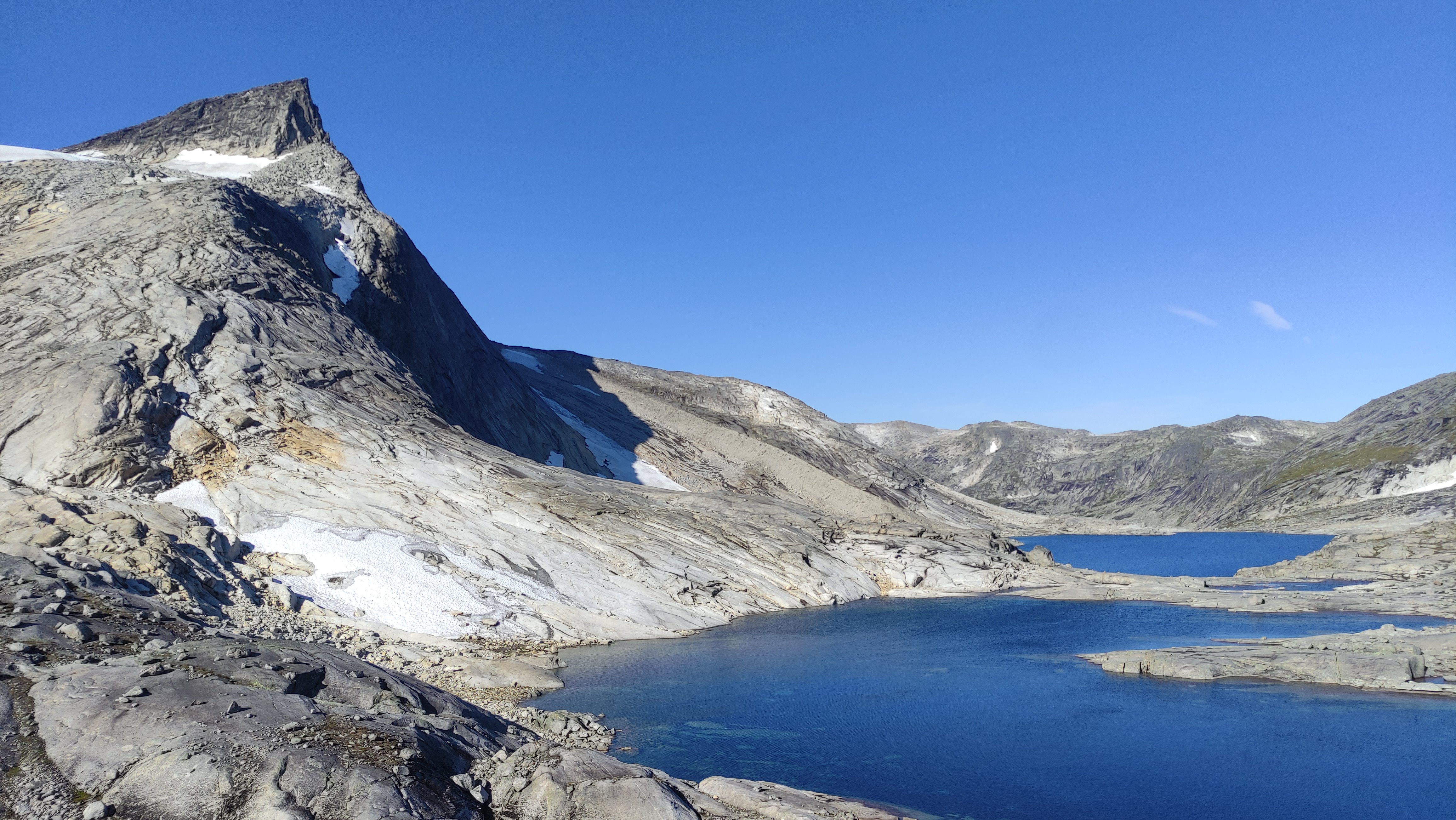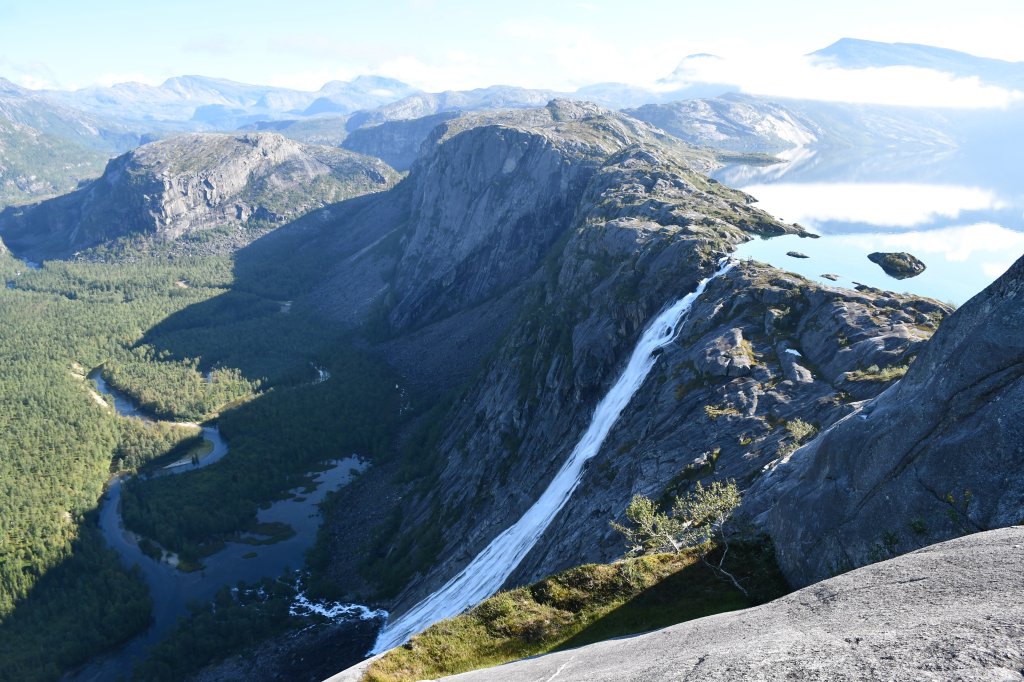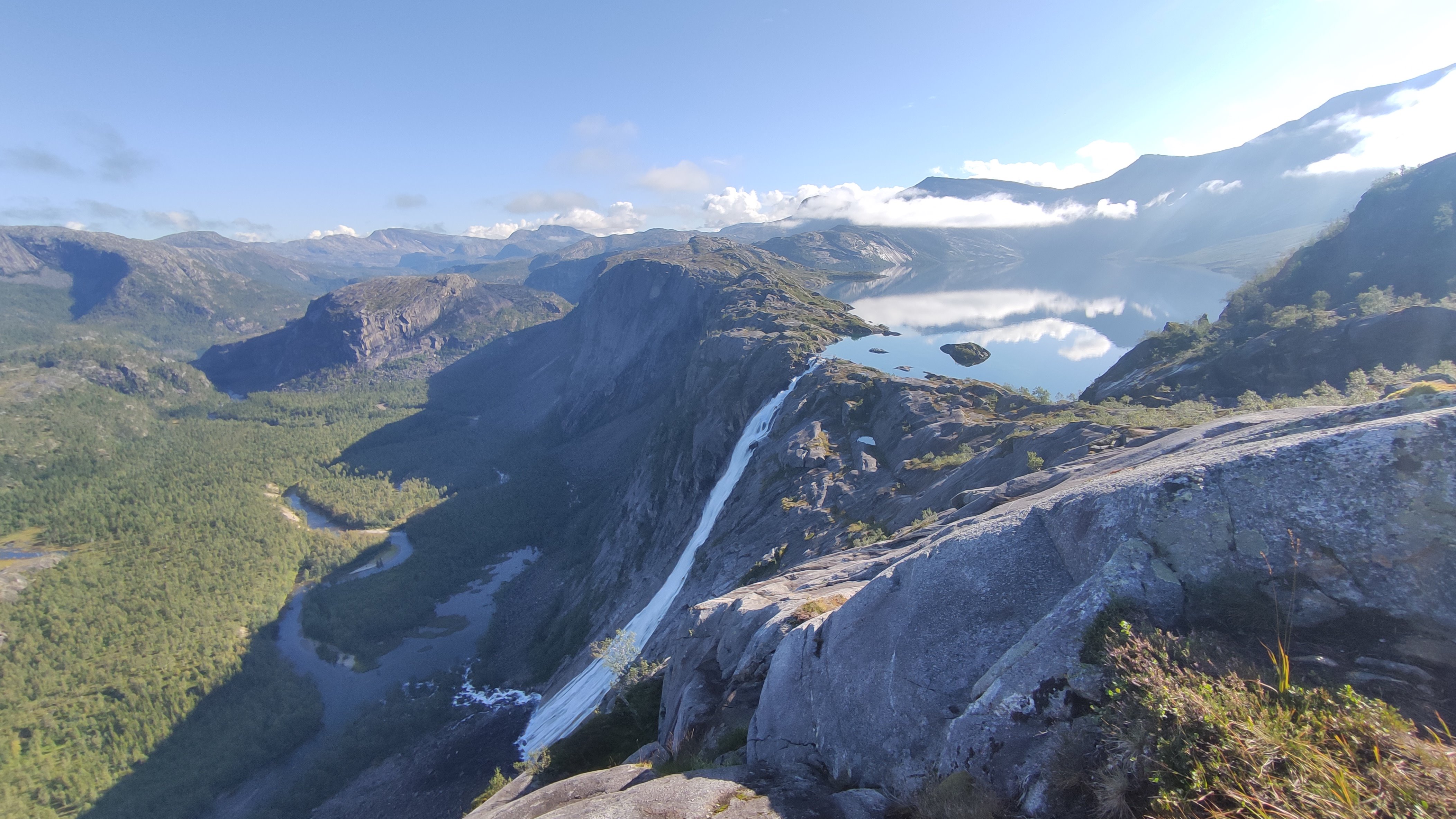 Die Entscheidung die Tour um einen Tag auf den sonnigen Freitag zu verschieben ist am Ende ein Goldgriff. Auf den anspruchsvollen knapp 24km bei 2400 Höhenmetern fällt mir ein ums andere Mal die Kinnlade herunter. Norwegen zeigt sich von seiner besten Seite. Natur pur. Unglaublich beeindruckende Aussichten, Bergseen mit Wasserfällen, grüne Täler mit naturbelassenen Flüssen die sich umherschlängeln und natürlich tolle Berglandschaften wohin das Auge blickt. Ein absolutes Highlight auf meiner Reise!