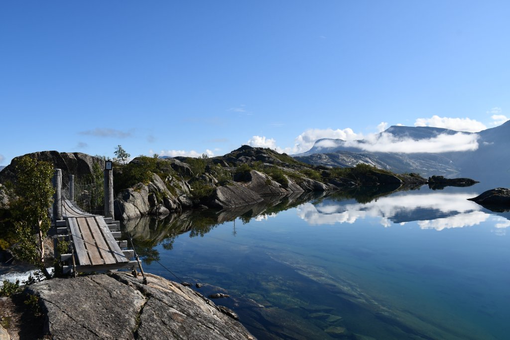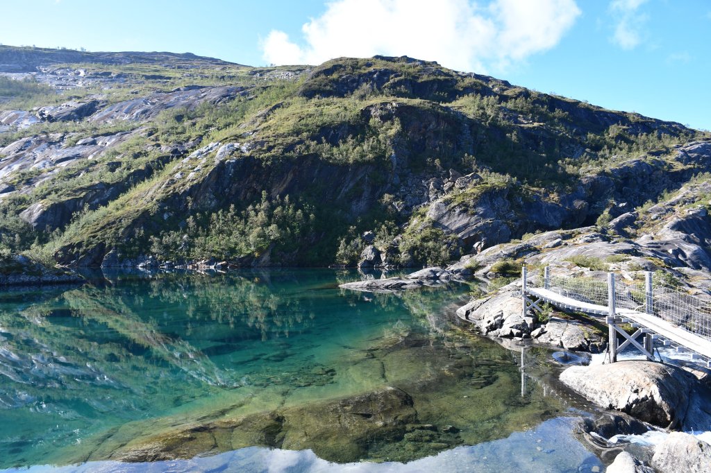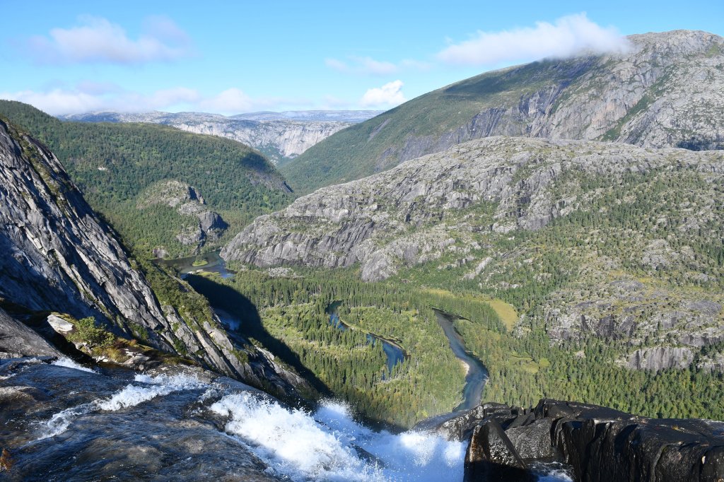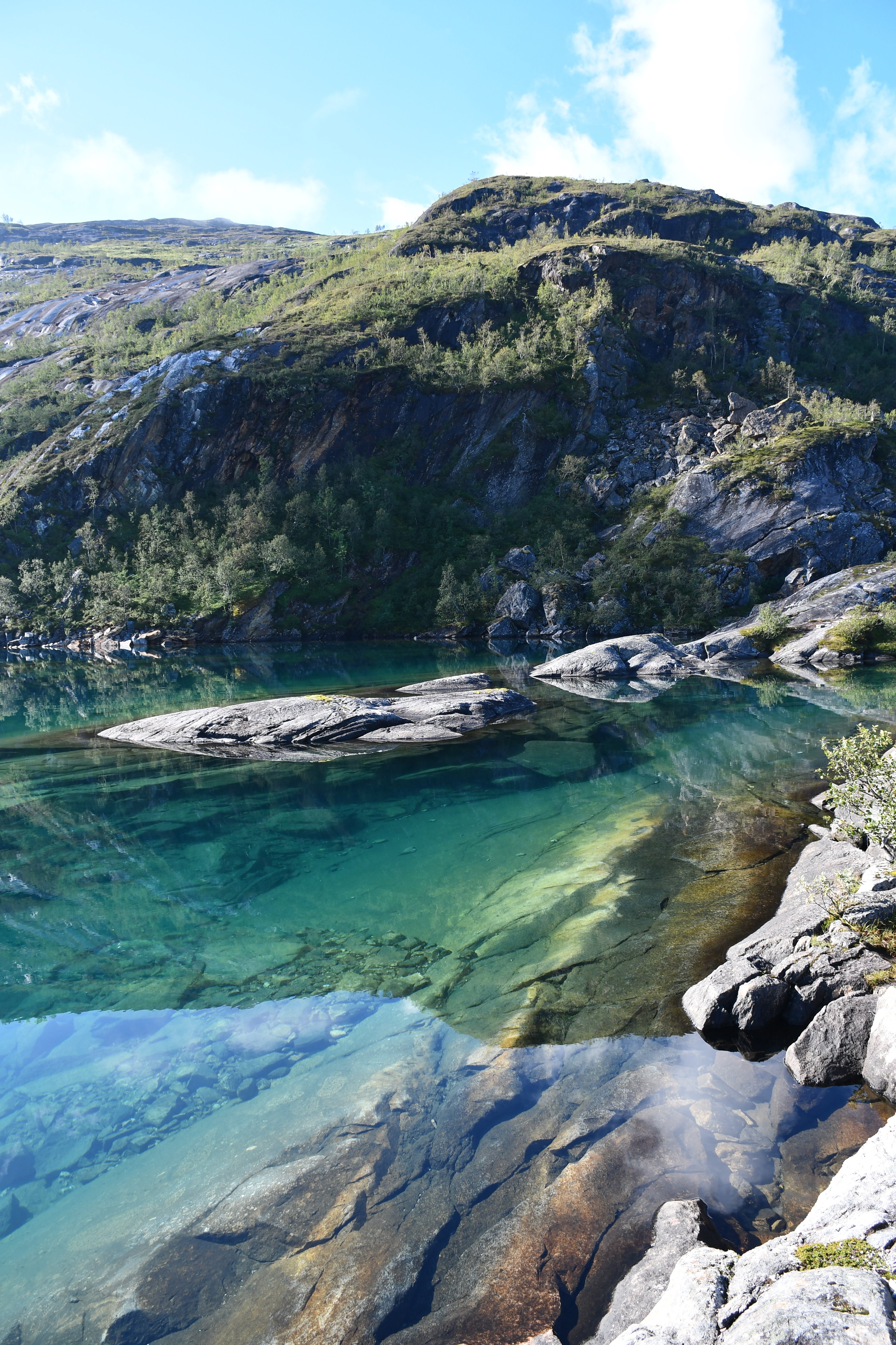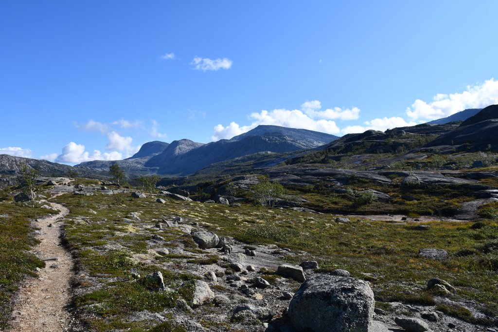 Die Entscheidung die Tour um einen Tag auf den sonnigen Freitag zu verschieben ist am Ende ein Goldgriff. Auf den anspruchsvollen knapp 24km bei 2400 Höhenmetern fällt mir ein ums andere Mal die Kinnlade herunter. Norwegen zeigt sich von seiner besten Seite. Natur pur. Unglaublich beeindruckende Aussichten, Bergseen mit Wasserfällen, grüne Täler mit naturbelassenen Flüssen die sich umherschlängeln und natürlich tolle Berglandschaften wohin das Auge blickt. Ein absolutes Highlight auf meiner Reise!