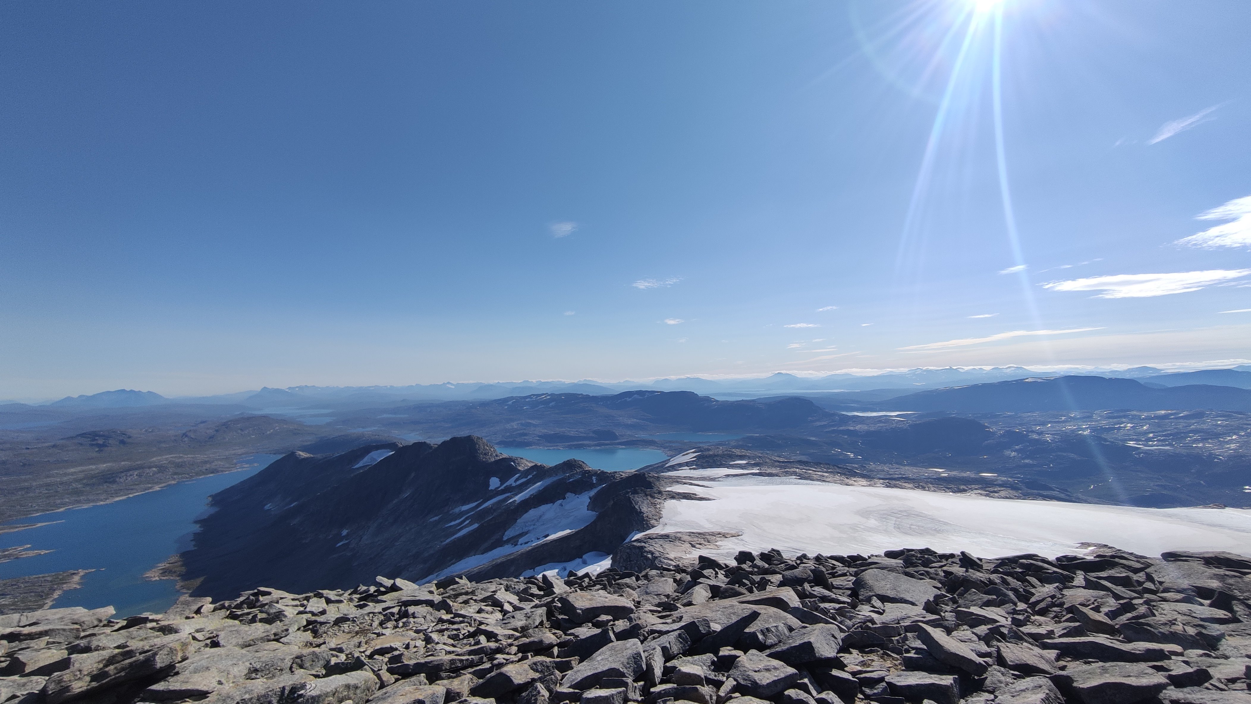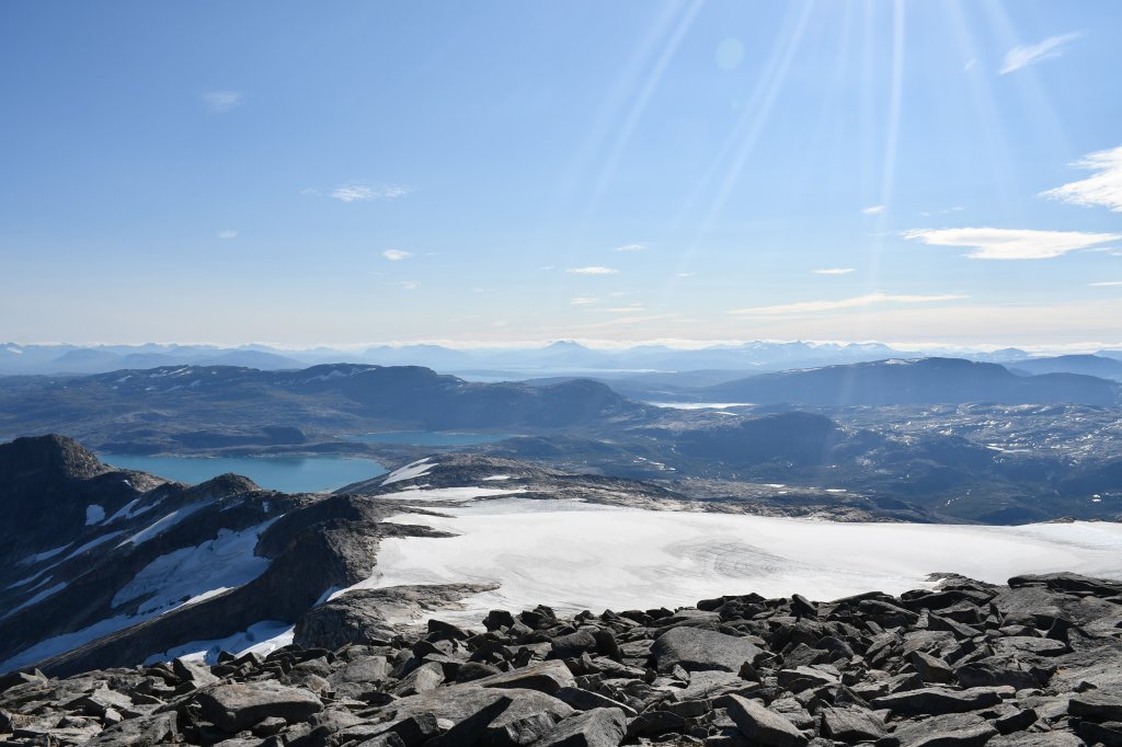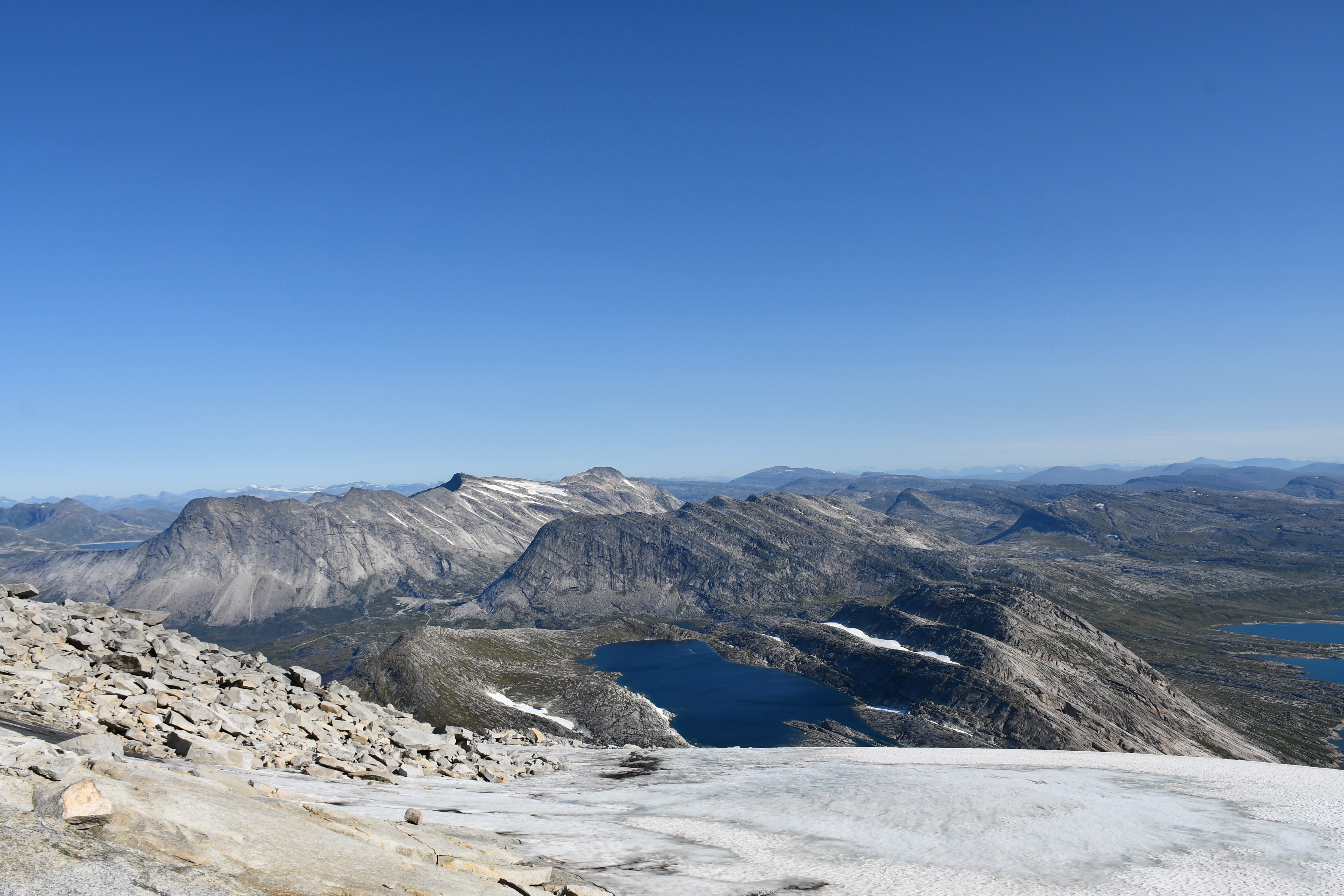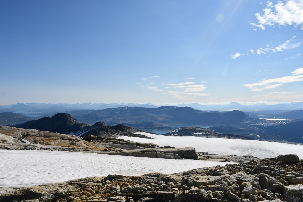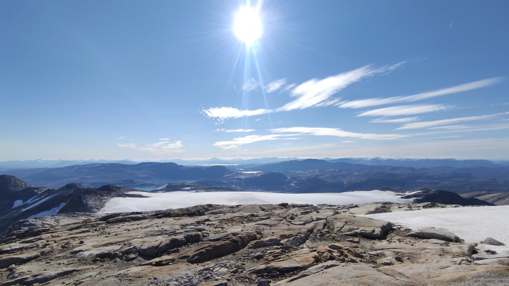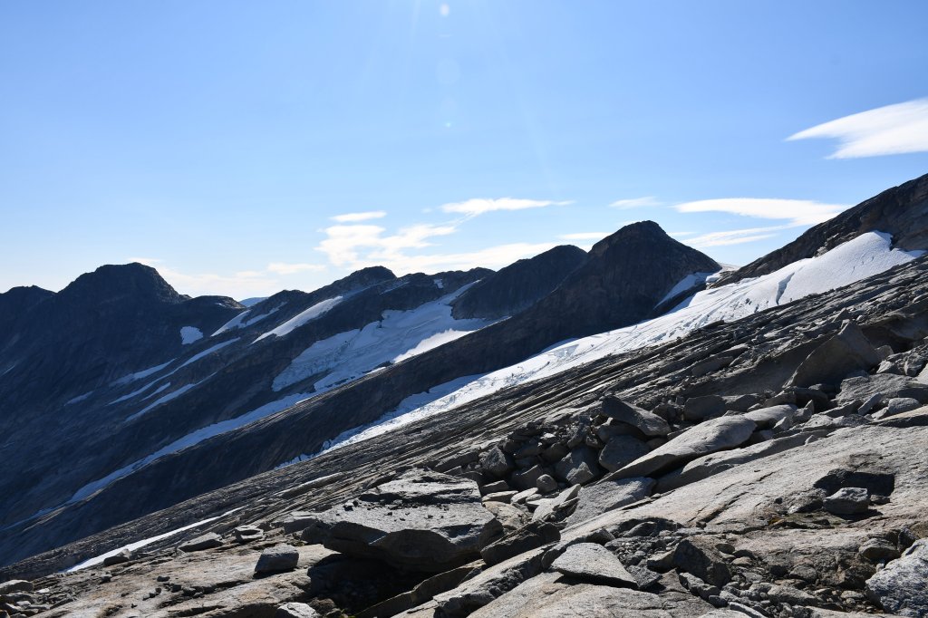 Dafür entschädigt nicht nur die Aussicht auf dem Gipfel, sondern auch zahlreiche Ausblicke unterwegs. Außerdem macht die Wanderung über glattgeschliffene Bergkuppen, durch Geröllfelder und über einen der zahlreichen Gletscher aus dieser Tour eine ganz besondere!