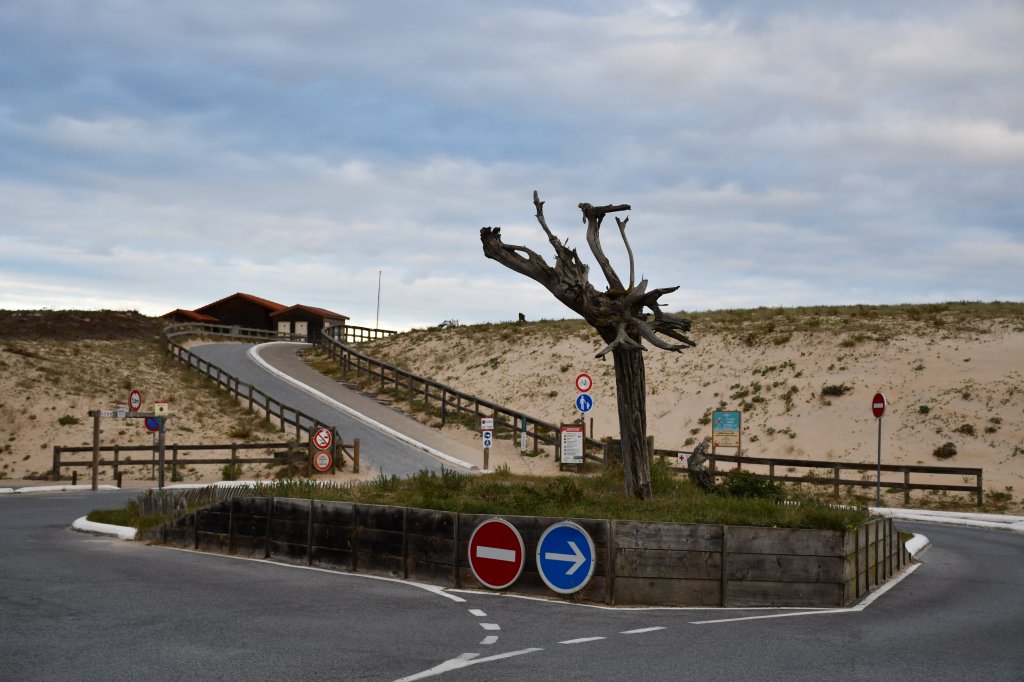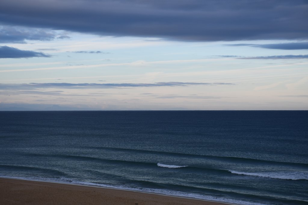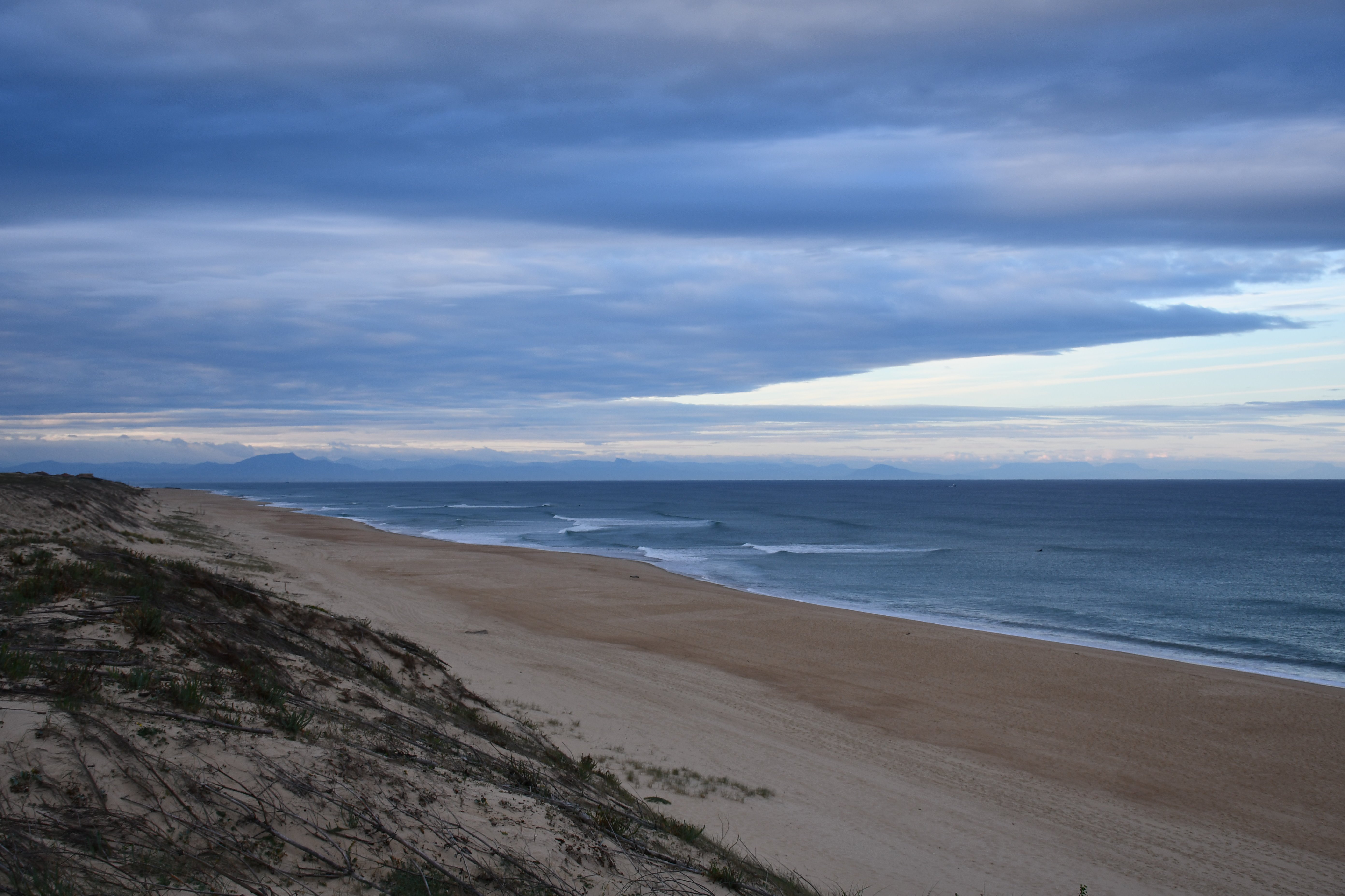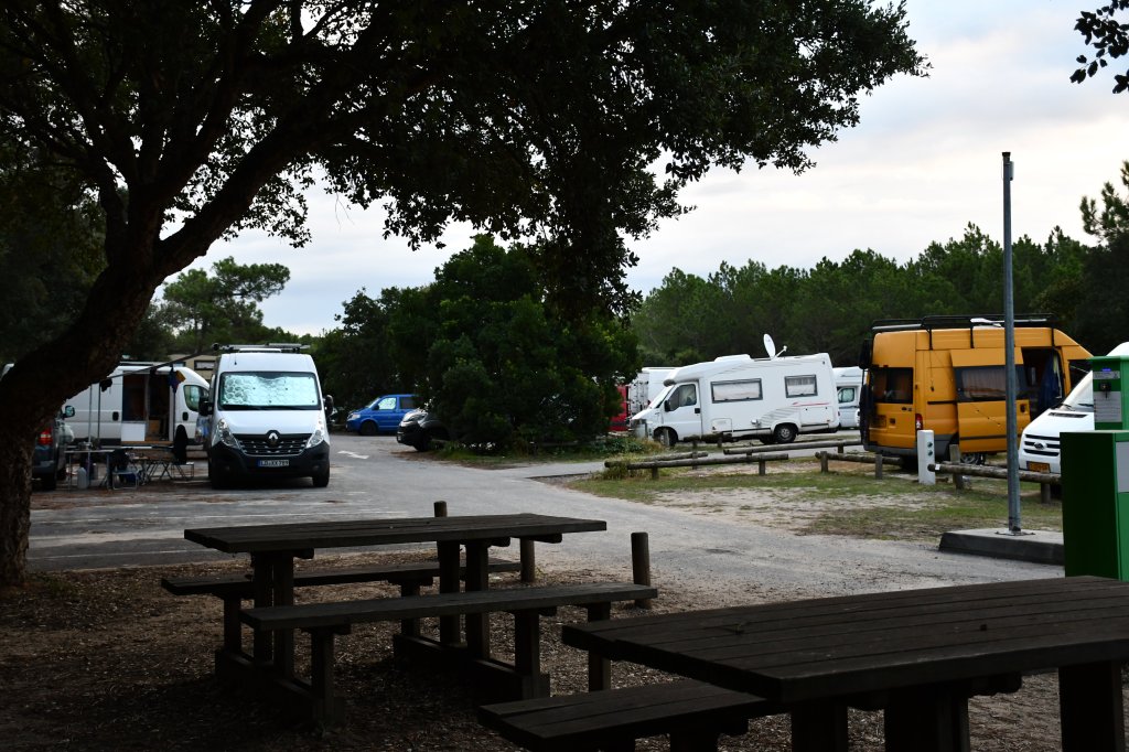 [Messanges, 15.10.2023] Das Ziel heute ist Messanges, wo ich aus traditionellen Gründen je nach Möglichkeit immer einen kleinen Zwischenstopp mache. Dieses Jahr allerdings nicht auf dem Camping (Camping de Moisan), sondern aufgrund der späten Jahreszeit vorne hinter den Dünen auf einem erschwinglichen Stellplatz. Dieser ist zu meiner Überraschung fast komplett voll, sodass sich schnell eine klassische Campingplatzatmosphäre aufbaut. Am nächsten Morgen zeigt ein Blick auf das Wasser das sich hier heute mit dem zur Verfügung stehenden Material auf dem Wasser nichts reißen lässt da die Wellen zu klein sind. Daher machen wir uns nach einem entspannten Frühstück mit französischem Baguette und Croissants auf in Richtung Spanien. Die hohen Berge und die nördliche Küstenlinie lassen sich dank klarem Wetter schon erahnen.