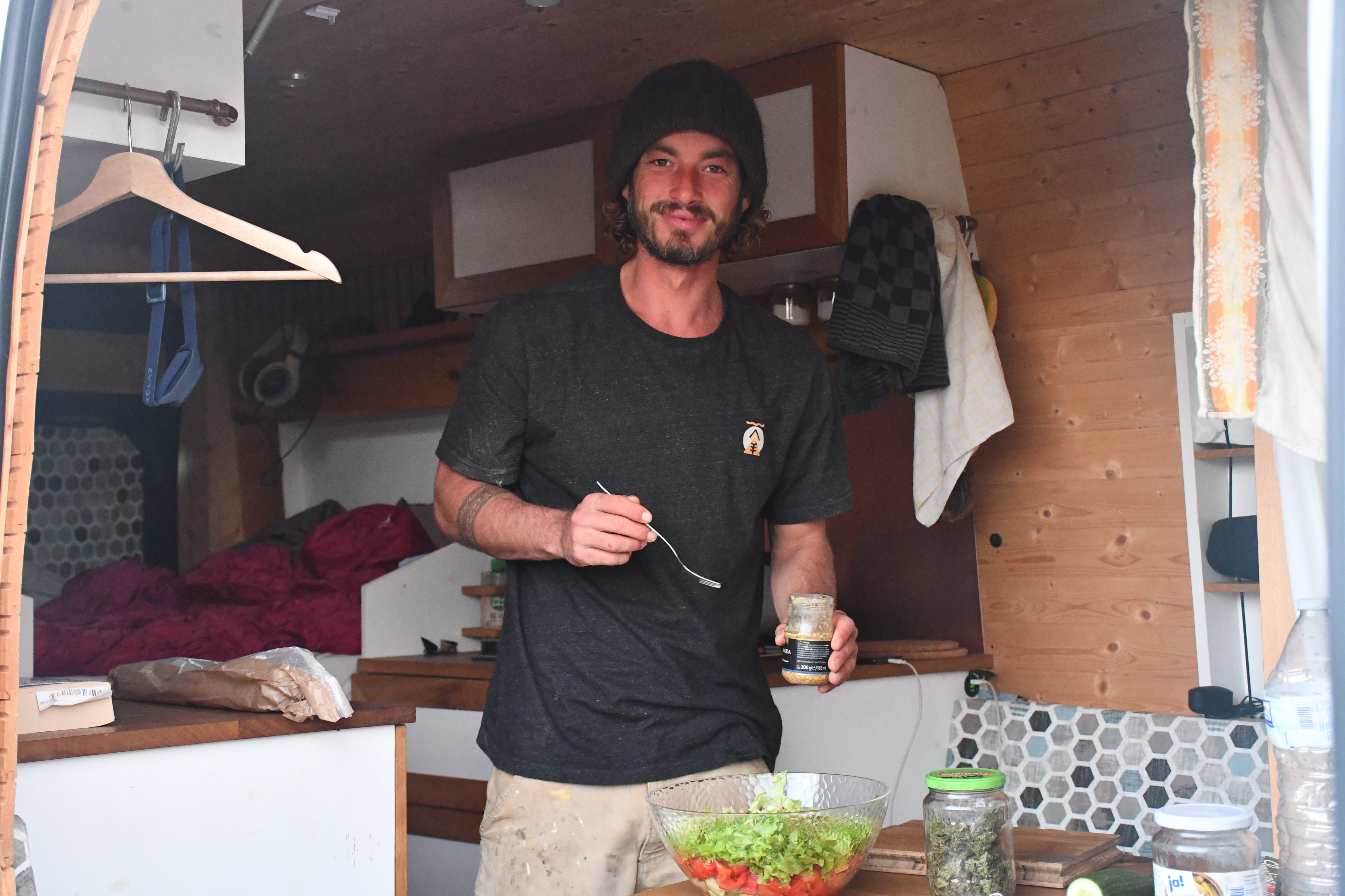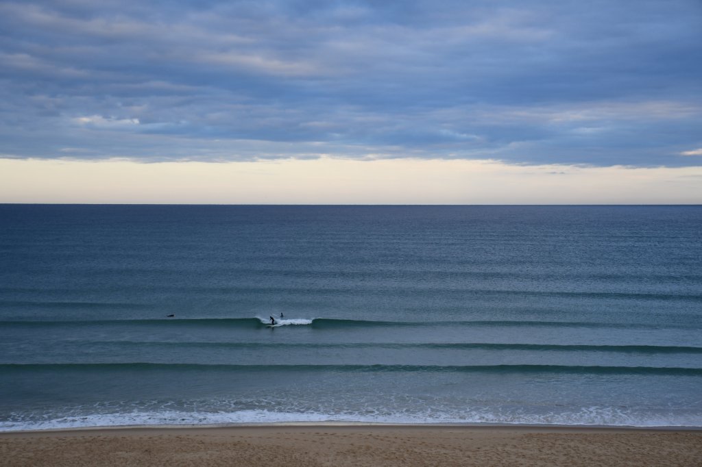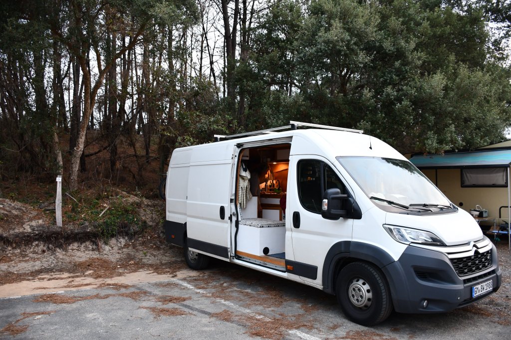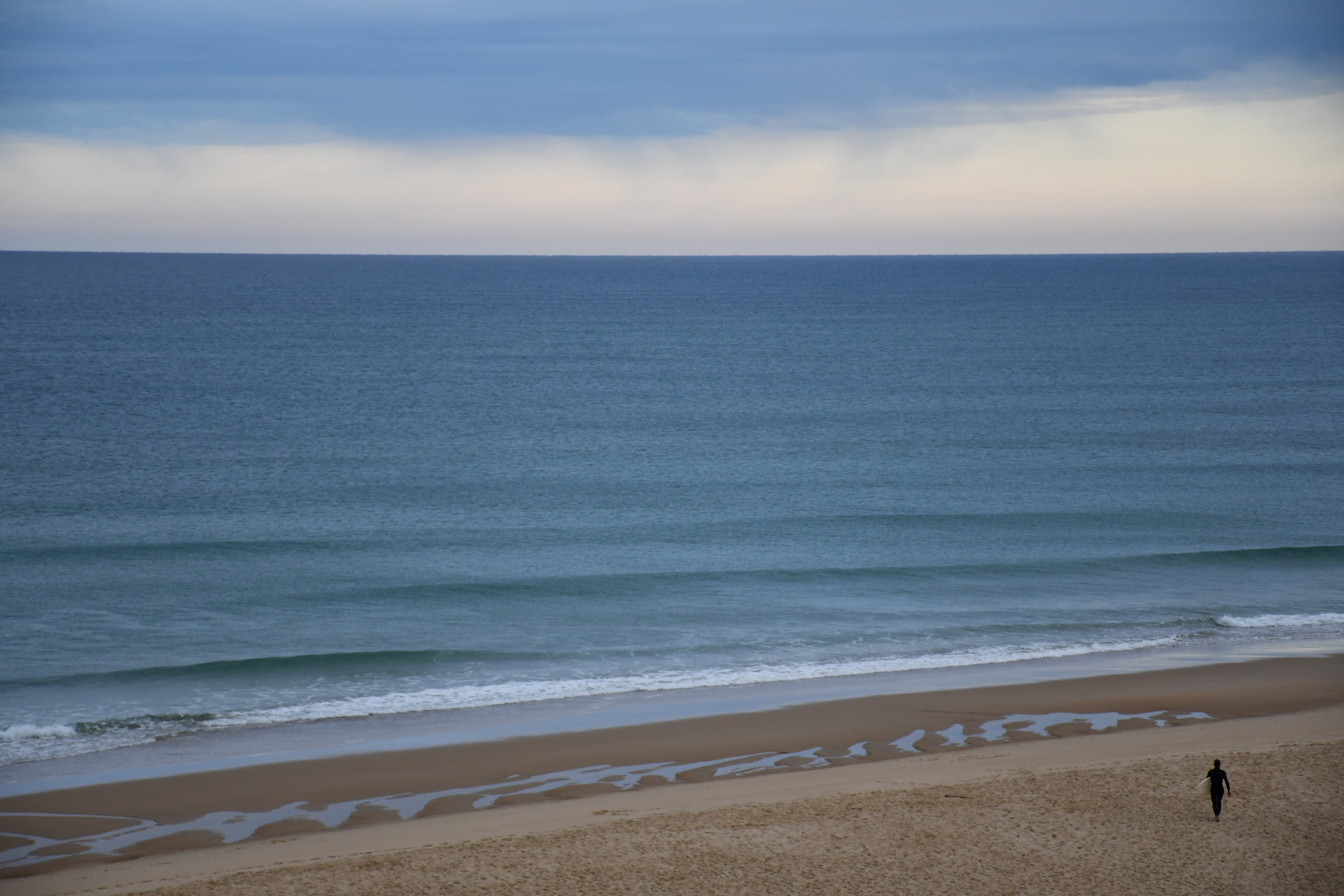 [Messanges, 15.10.2023] Das Ziel heute ist Messanges, wo ich aus traditionellen Gründen je nach Möglichkeit immer einen kleinen Zwischenstopp mache. Dieses Jahr allerdings nicht auf dem Camping (Camping de Moisan), sondern aufgrund der späten Jahreszeit vorne hinter den Dünen auf einem erschwinglichen Stellplatz. Dieser ist zu meiner Überraschung fast komplett voll, sodass sich schnell eine klassische Campingplatzatmosphäre aufbaut. Am nächsten Morgen zeigt ein Blick auf das Wasser das sich hier heute mit dem zur Verfügung stehenden Material auf dem Wasser nichts reißen lässt da die Wellen zu klein sind. Daher machen wir uns nach einem entspannten Frühstück mit französischem Baguette und Croissants auf in Richtung Spanien. Die hohen Berge und die nördliche Küstenlinie lassen sich dank klarem Wetter schon erahnen.