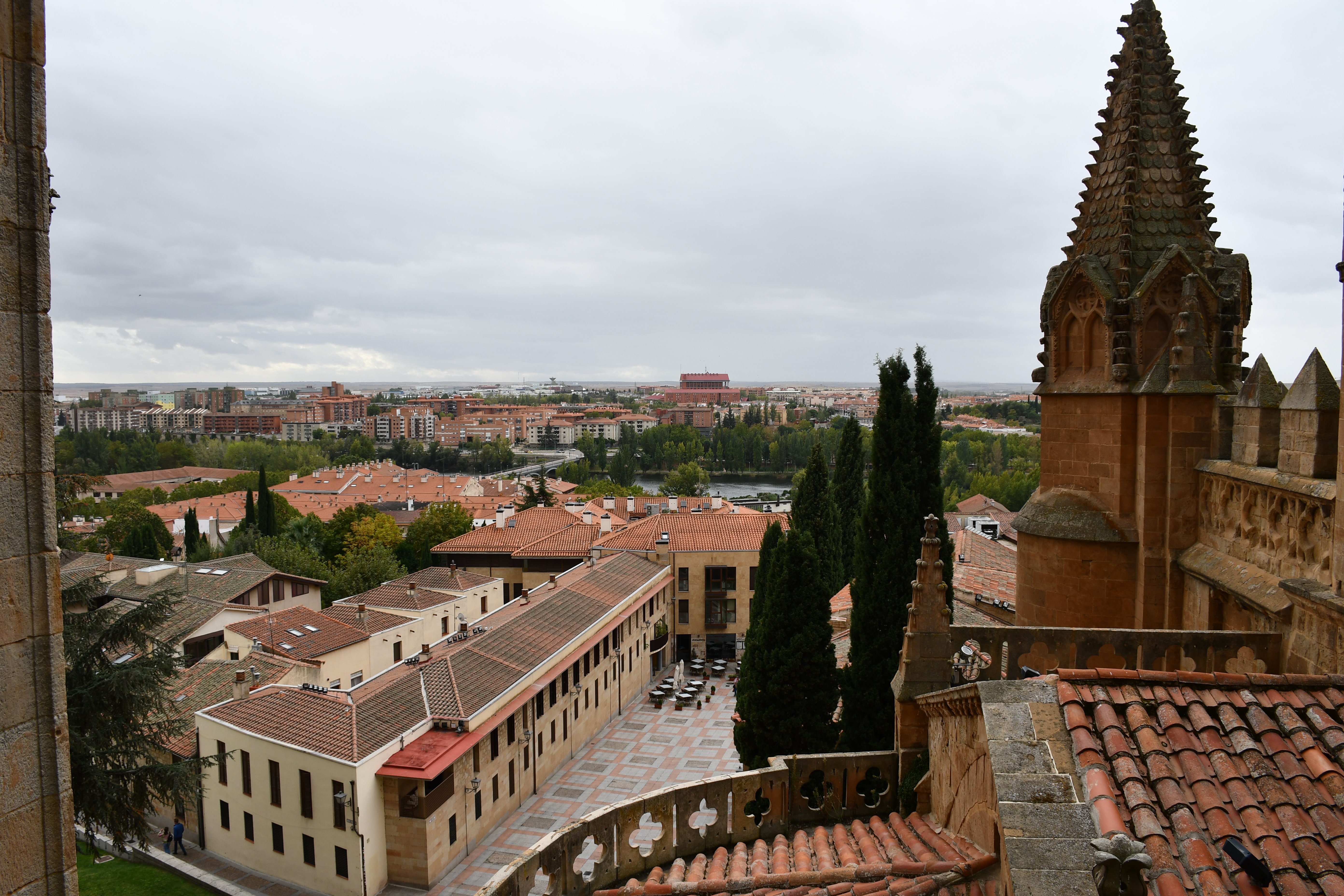 [Monzaraz (Stausee), 17.10.2023] Am nächsten Morgen fahren wir ein paar Kilometer nach Salamanca hinein, wo wir den Vormittag verbringen wollen. Diese bekannte spanische Studentenstadt ist immer wieder einen Besuch wert. Auch wenn die ewige Rumrennerei am Ende schlaucht, lohnt sie sich doch sehr, insbesondere der Besuch in luftiger Höhe ist sehr beeindruckend und atemberaubend!