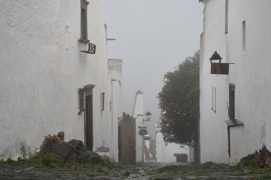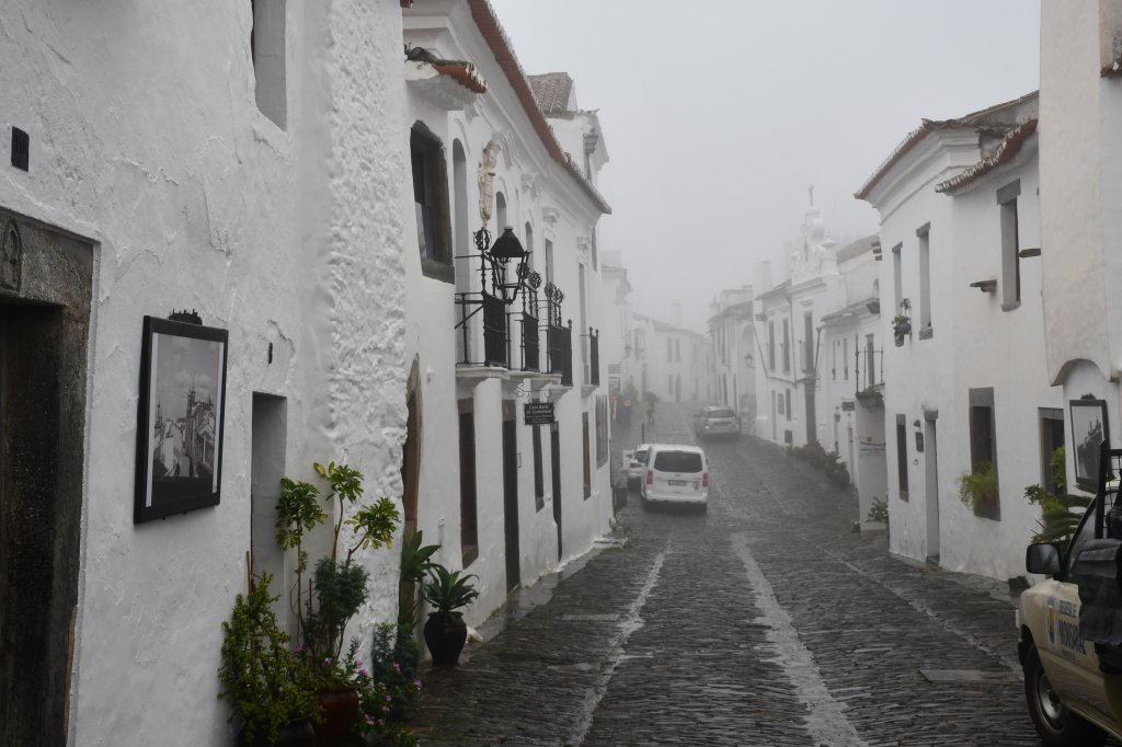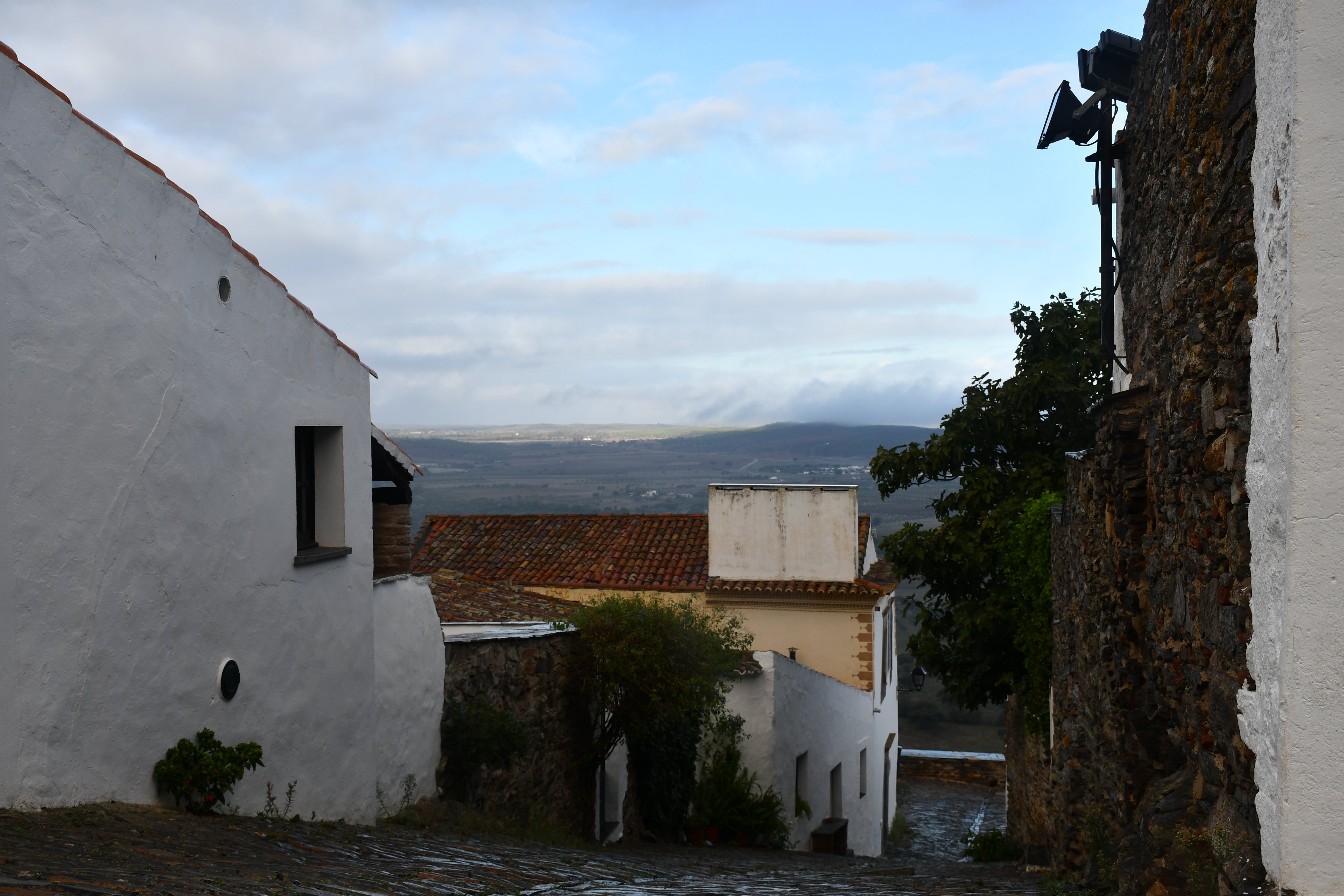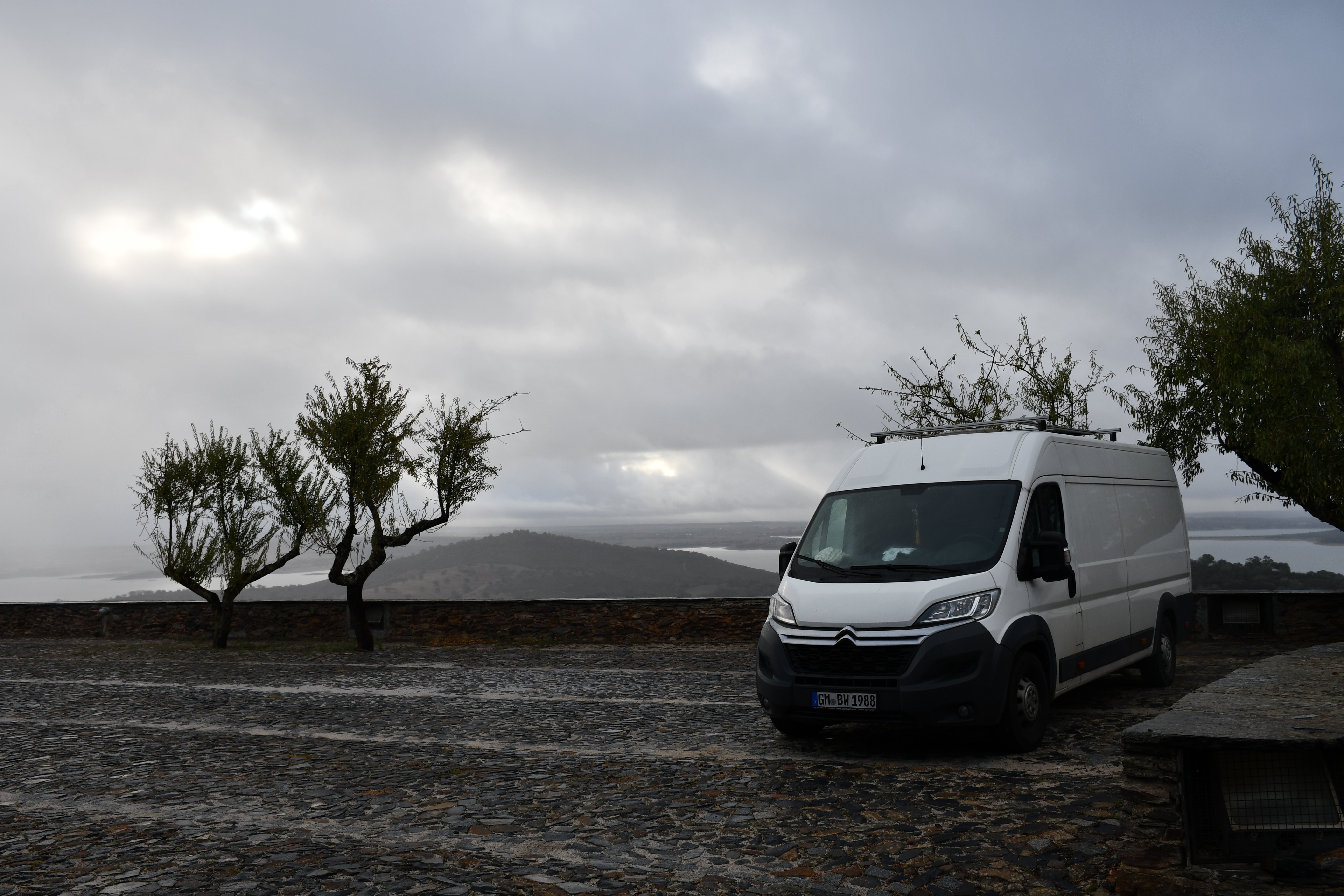 [Monchique, 18.10.2023] Sinn uns Zweck der nächtlichen Platzwahl ist der Besuch von Monzaraz, einem winzigen Örtchen auf einer Hügelkuppe, inklusive Burg und Stadtmauer. Kleine Gässchen mit alten Häusern laden zum schlendern ein. Einzig das Wetter macht uns einen halben Strich durch die Rechnung, immer wieder setzen die Wolken zu sintflutartigen Regenfällen ein weshalb wir hier uns da Unterschlupf suchen müssen. Der erste Vorgeschmack auf ein in Portugal seltenes Wetterphänomen, zumindest im Süden: Dauerregen.