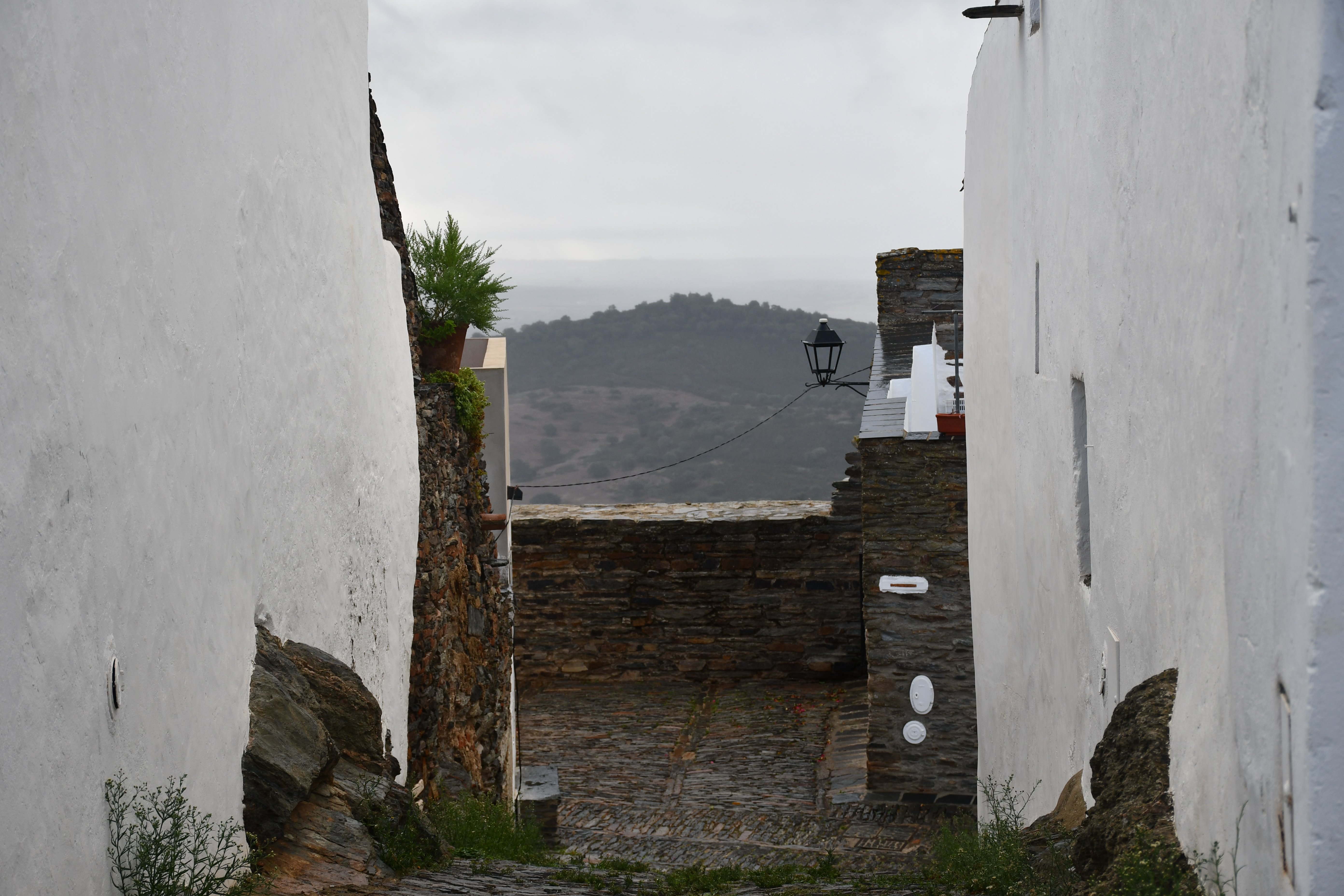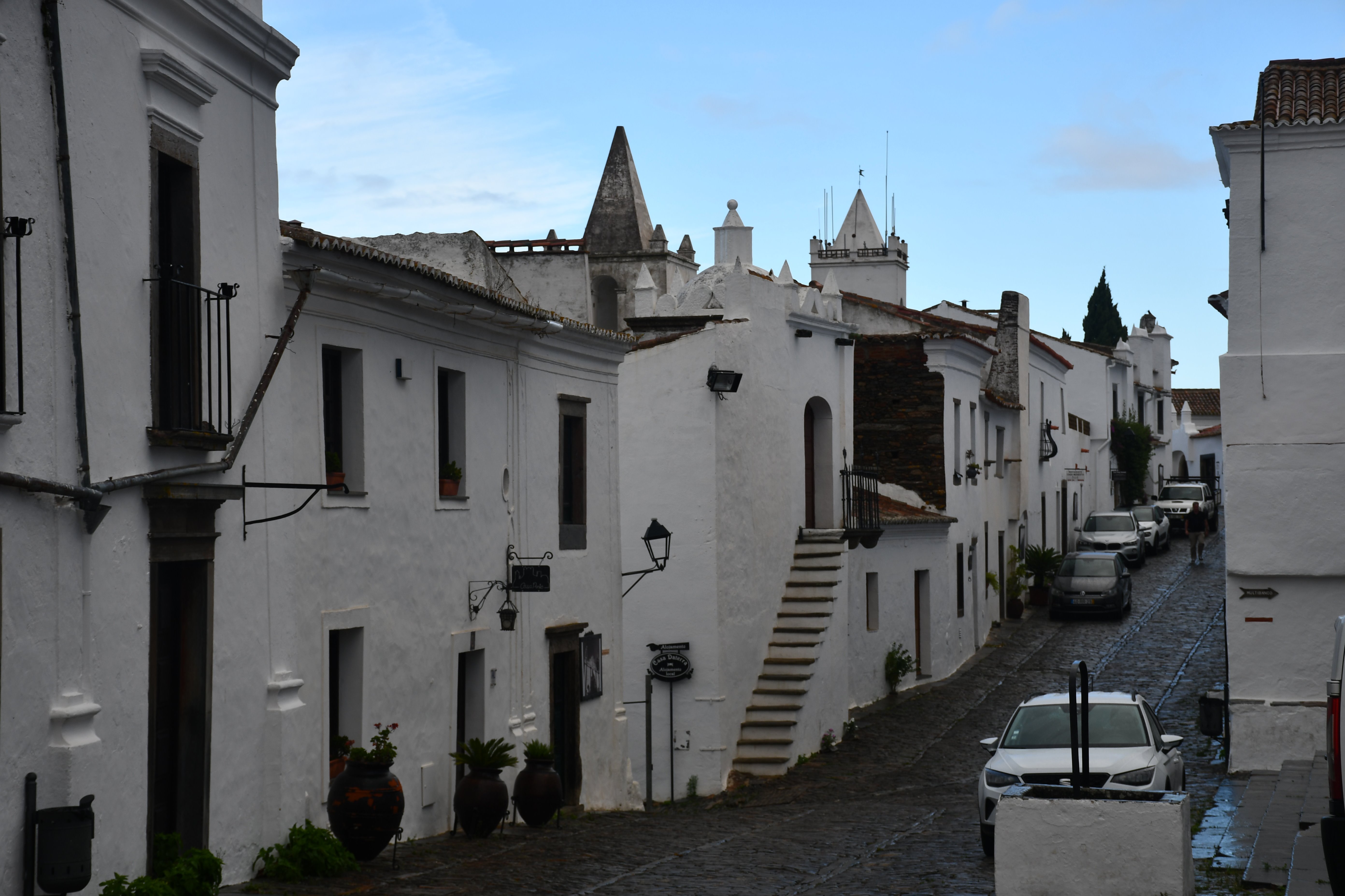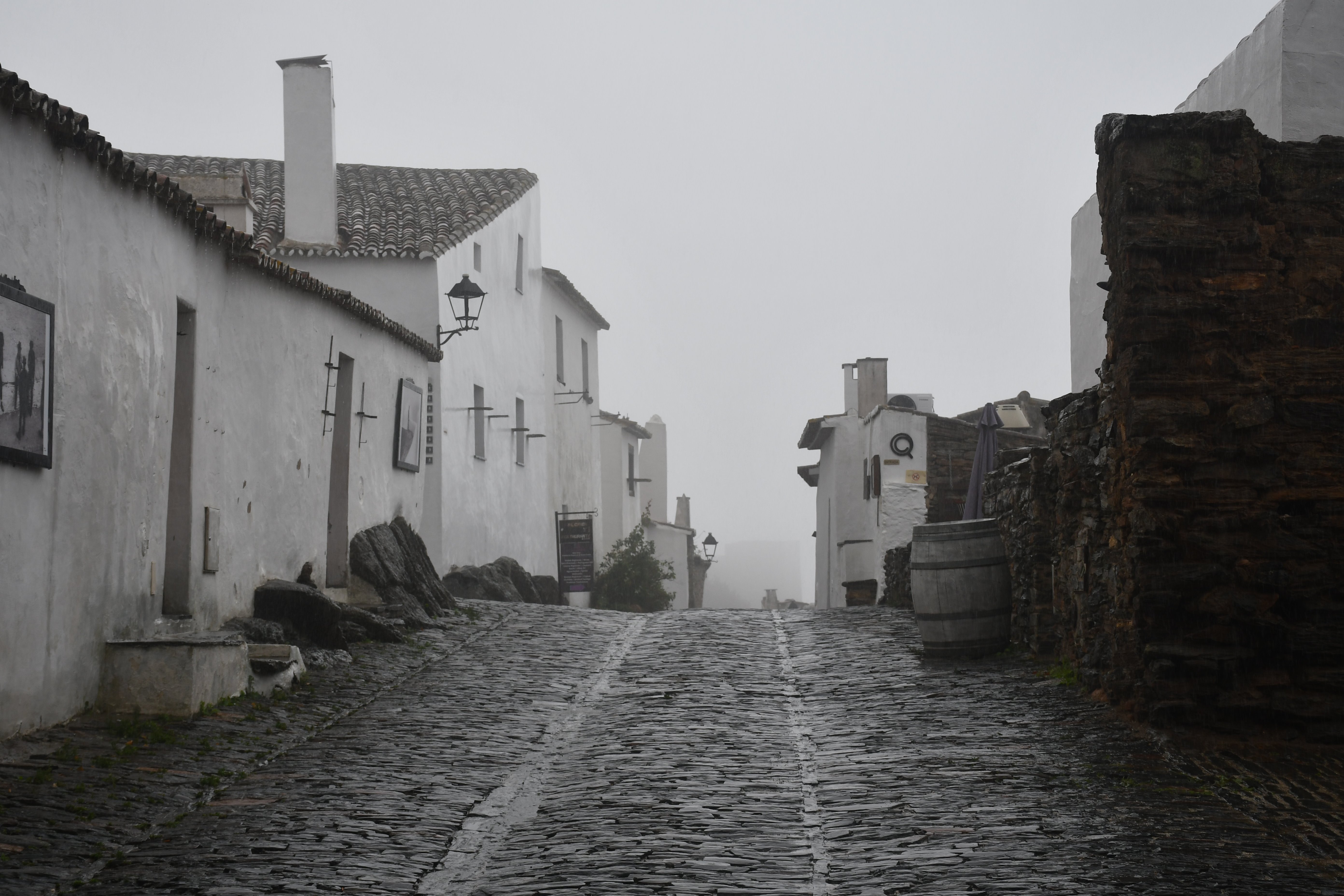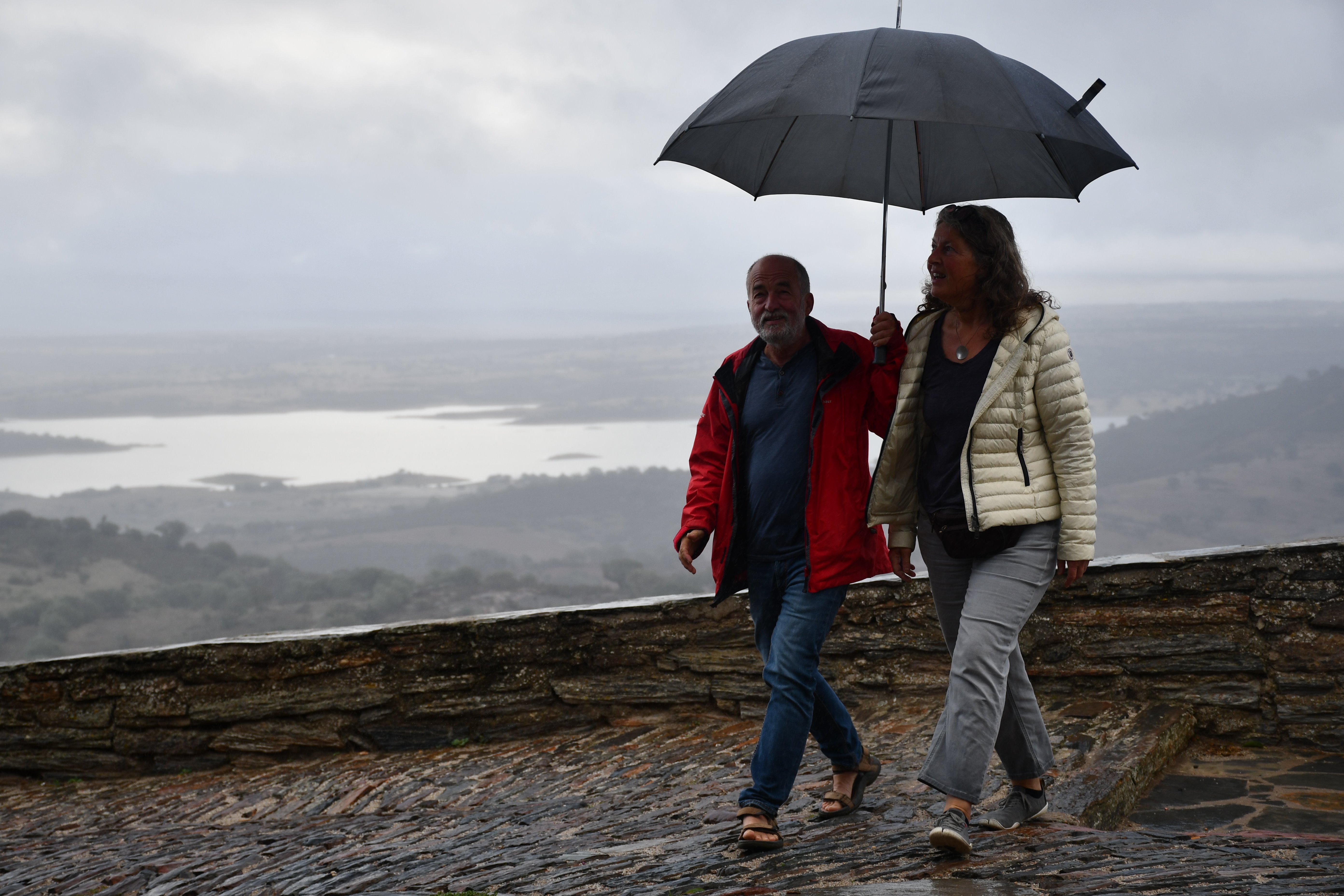 [Monchique, 18.10.2023] Sinn uns Zweck der nächtlichen Platzwahl ist der Besuch von Monzaraz, einem winzigen Örtchen auf einer Hügelkuppe, inklusive Burg und Stadtmauer. Kleine Gässchen mit alten Häusern laden zum schlendern ein. Einzig das Wetter macht uns einen halben Strich durch die Rechnung, immer wieder setzen die Wolken zu sintflutartigen Regenfällen ein weshalb wir hier uns da Unterschlupf suchen müssen. Der erste Vorgeschmack auf ein in Portugal seltenes Wetterphänomen, zumindest im Süden: Dauerregen.