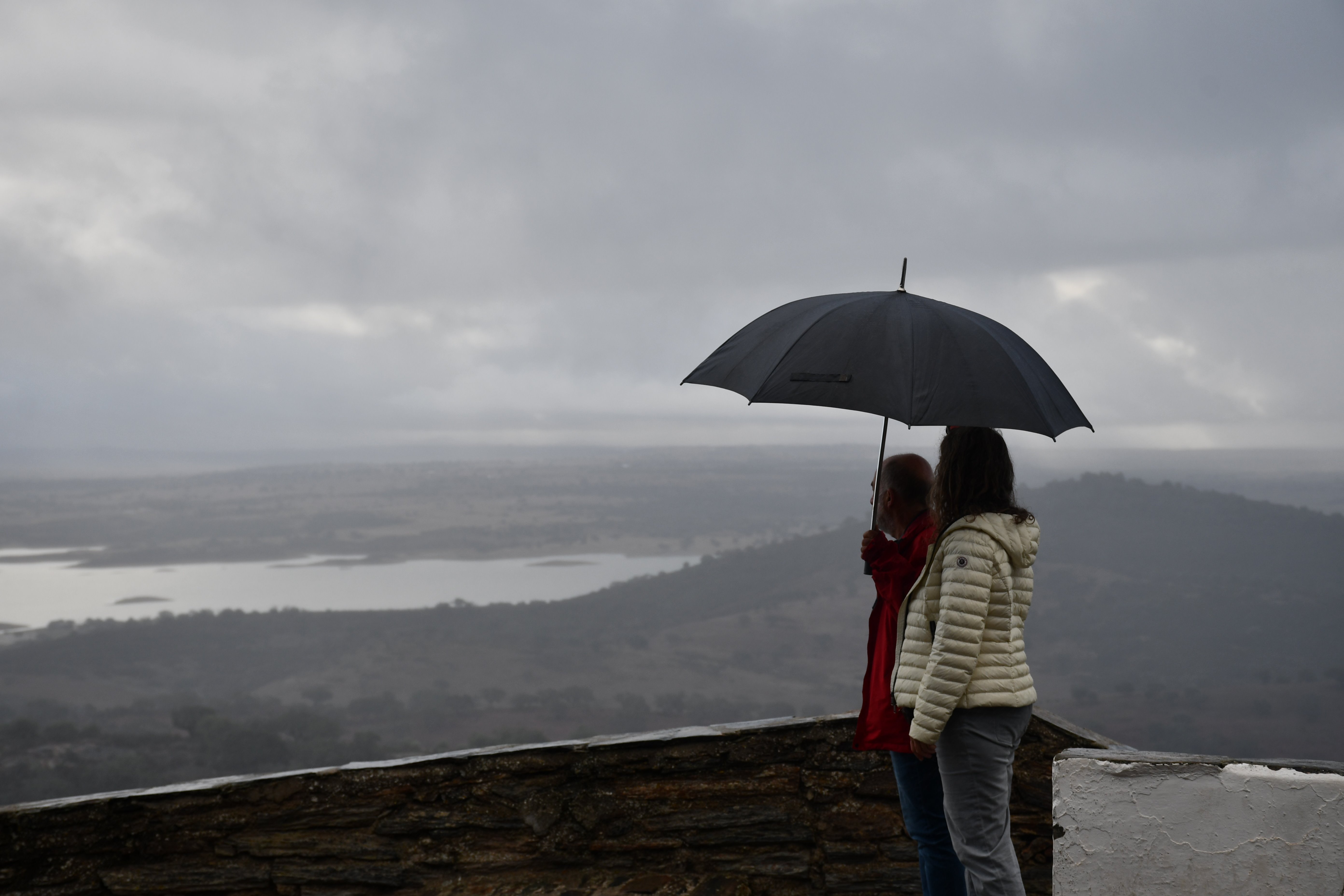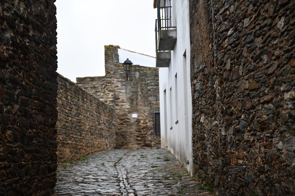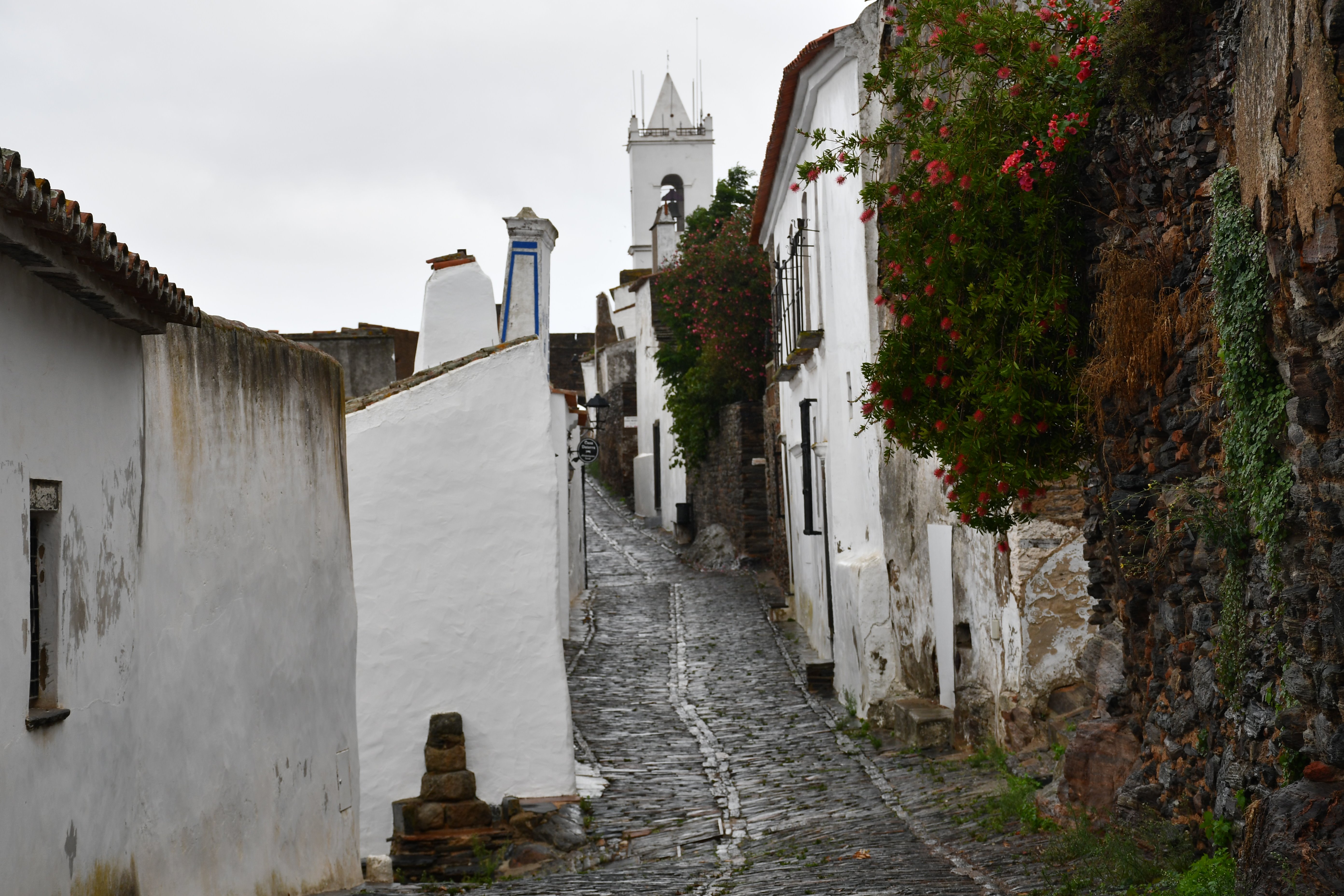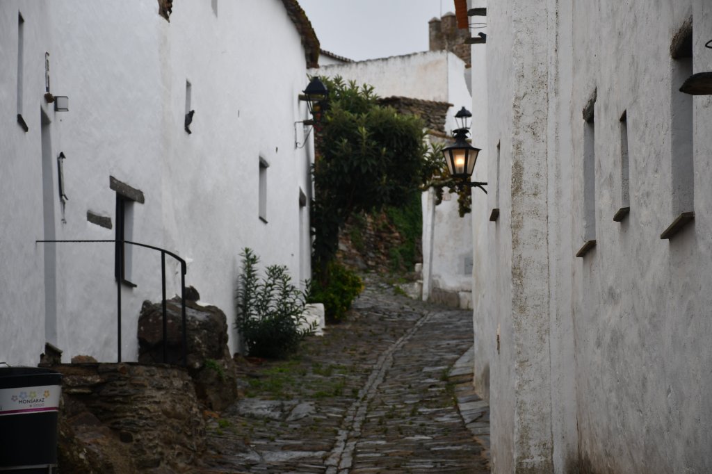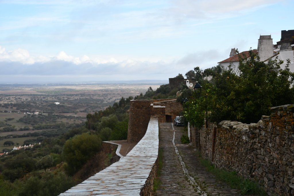 [Monchique, 18.10.2023] Sinn uns Zweck der nächtlichen Platzwahl ist der Besuch von Monzaraz, einem winzigen Örtchen auf einer Hügelkuppe, inklusive Burg und Stadtmauer. Kleine Gässchen mit alten Häusern laden zum schlendern ein. Einzig das Wetter macht uns einen halben Strich durch die Rechnung, immer wieder setzen die Wolken zu sintflutartigen Regenfällen ein weshalb wir hier uns da Unterschlupf suchen müssen. Der erste Vorgeschmack auf ein in Portugal seltenes Wetterphänomen, zumindest im Süden: Dauerregen.