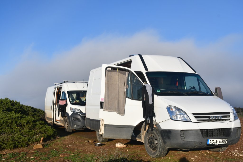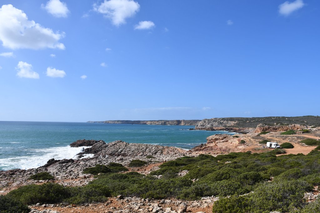 [Vila do Bispo, 24.10.2023] Am Montag nutzen wir die einzige Chance raus zu kommen, nach sensationellen 24 Stunden ohne Regen schaffen wir es fast Rutschfrei aus dem Tal zurück auf eine asphaltierte Straße und düsen gen Süden. Erstmals an die Küste und in die Sonne. In Monchique wird es die nächsten Tage weiter regnen, wir haben etwas mehr Glück. Zwar kommt ab und an ein Schauer runter, wir erwischen aber auch einige regenfreie Stunden was insbesondere für unsere Kurzzeitbesucher (Mama und Papa) schön ist. Wenn man schon mal in Portugal ist darf ja auch mal die Sonne scheinen.