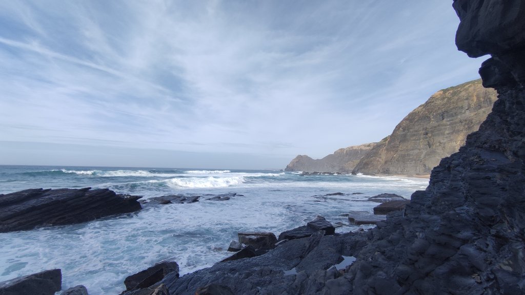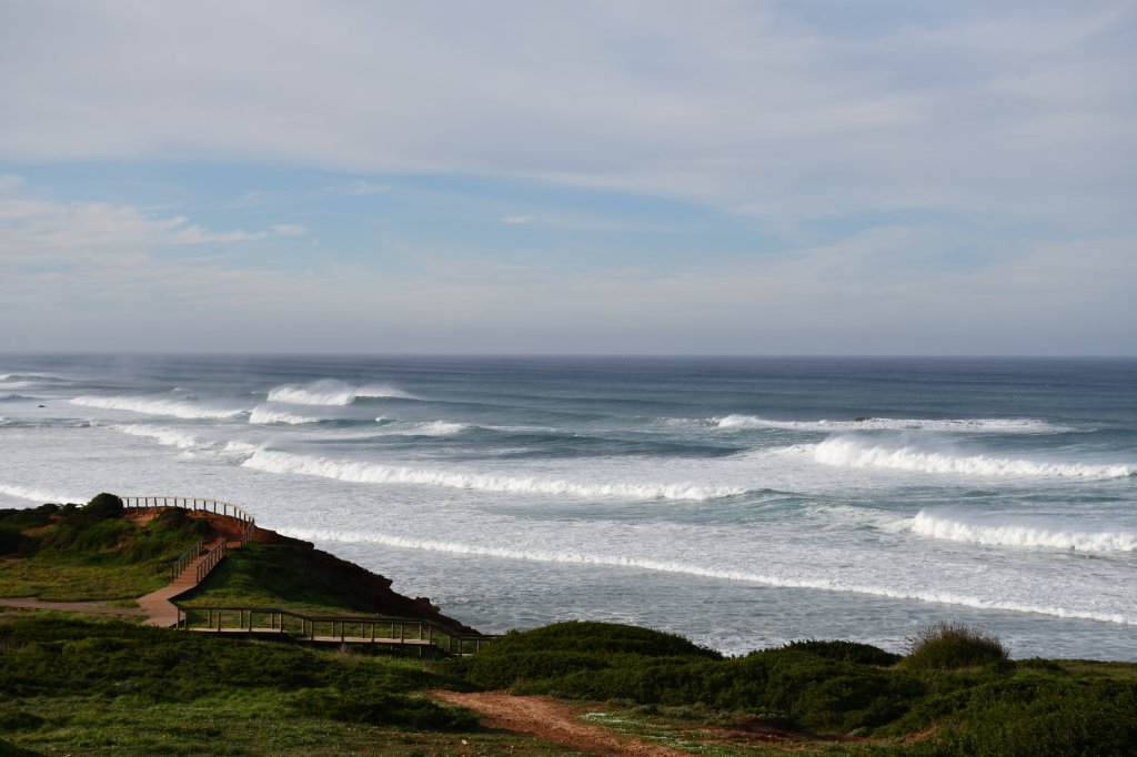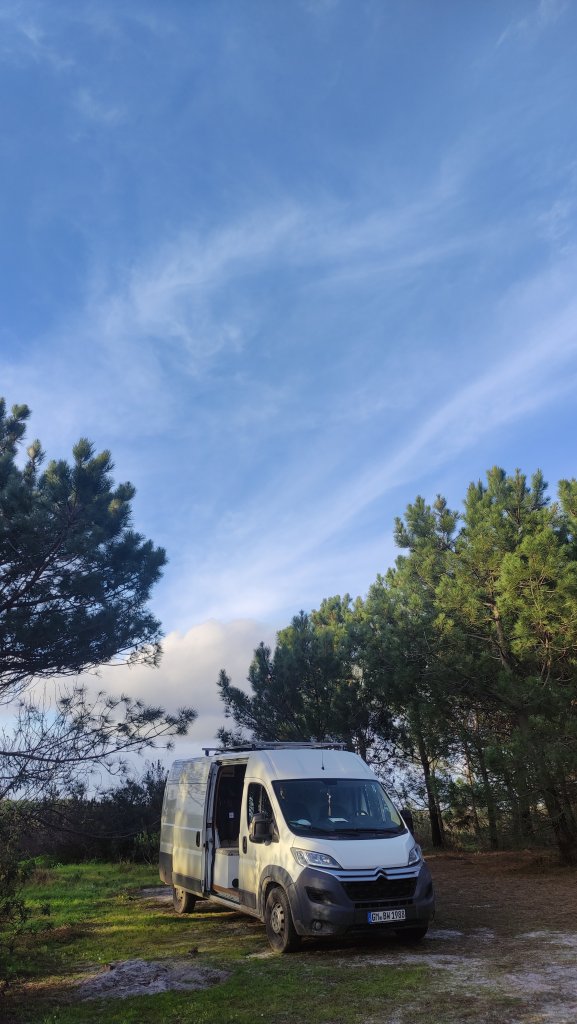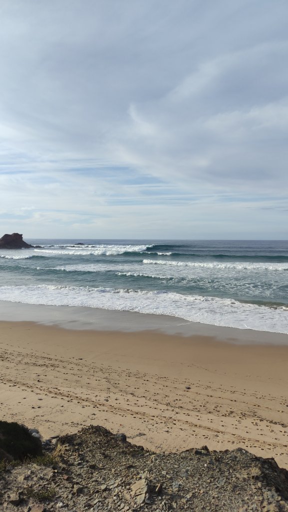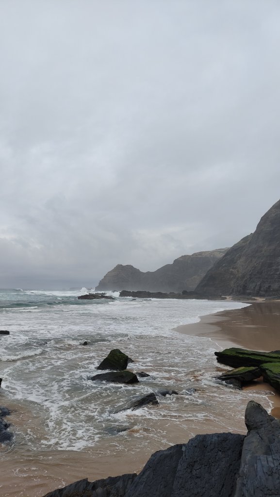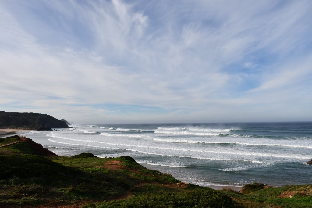 [Arrifana, 08.-10.12.2023] Die Boys sind da. Irgendwo im Süden auf ihrem Camping. Bzw. sie kommen an beizeiten. Zeit für uns die engen Berghänge zu verlassen (nach einem letzten schweisstreibenden Projekt) und uns dem Atlantik zuzuwenden. Auf dem zur Zeit ein saftiger Swell sein Unwesen treibt. Die Westküste, beispielsweise Arrifana oder auch Amado sehen atemberaubend aus, allerdings für unsereins, insbesondere mich, doch deutlich zu groß.