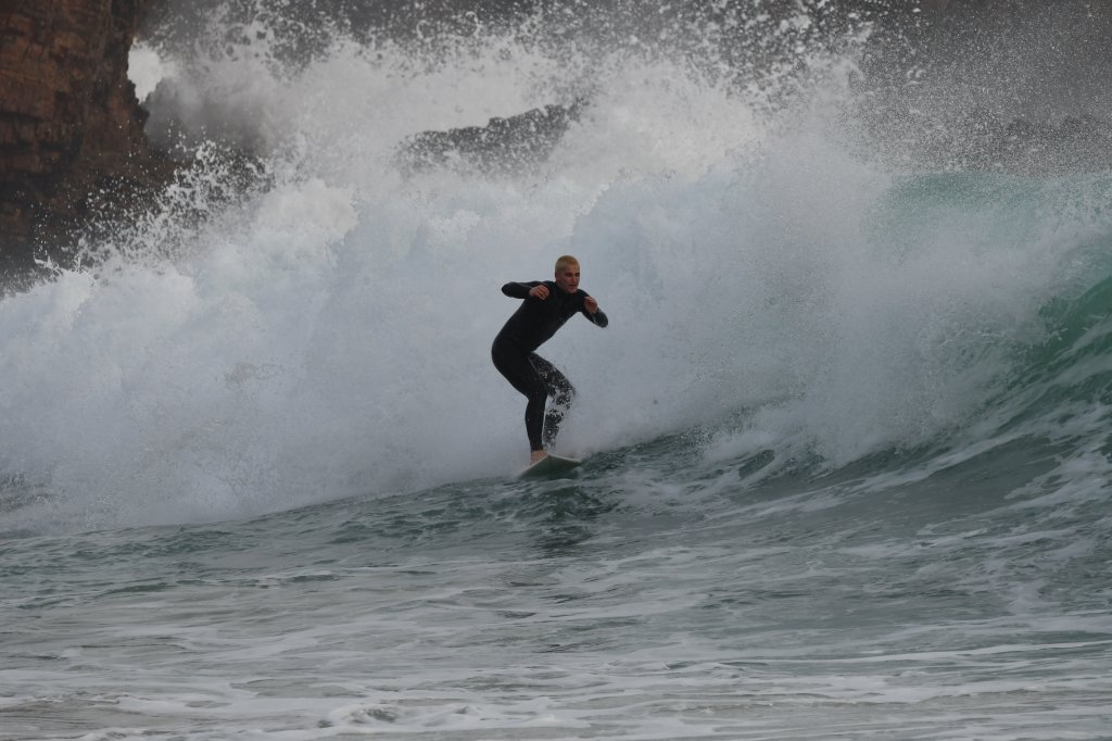 [Arrifana-Monchique, 23.11.-07.12.2023] Lets Surf again. Die meiste Zeit halten wir uns aufm Land auf. Zwischendurch muss man dann aber doch mal wieder raus um dem Surf zu frönen. Der eine oder andere kleine Swell lädt zu ein- oder mehrtägigen Touren an die Westküste ein. Neben dem bekannten Spot Arrifana welcher seit den ersten Herbststürmen wieder „a la bonneur“ läuft, sind wir an weiteren Ecken unterwegs, welche aus datenschutzrechtlichen Gründen unbenannt bleiben müssen. Der Surf jedenfalls ist in fast allen Fällen eine glatte Eins gewesen. Neben der Tatsache dass ich mich langsam aber sicher wieder gut in den Sport einfinde macht der gemeinsame Surf mit Niklas einfach überragend viel Spaß! Insbesondere nachdem er sich dann doch mal einen neuen Neo gegönnt hat und nicht nach spätestens einer Stunde ins Kältekoma fällt.