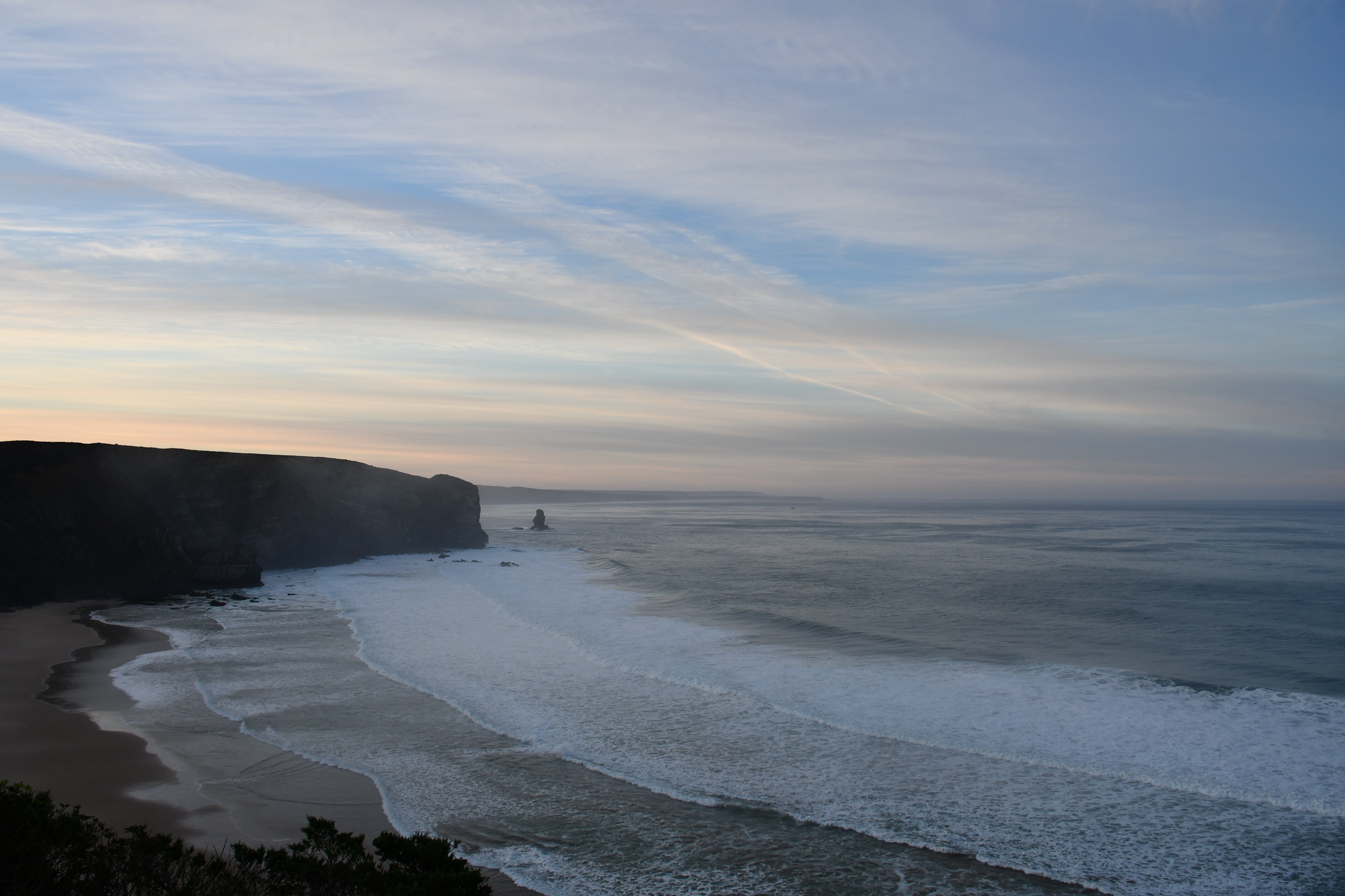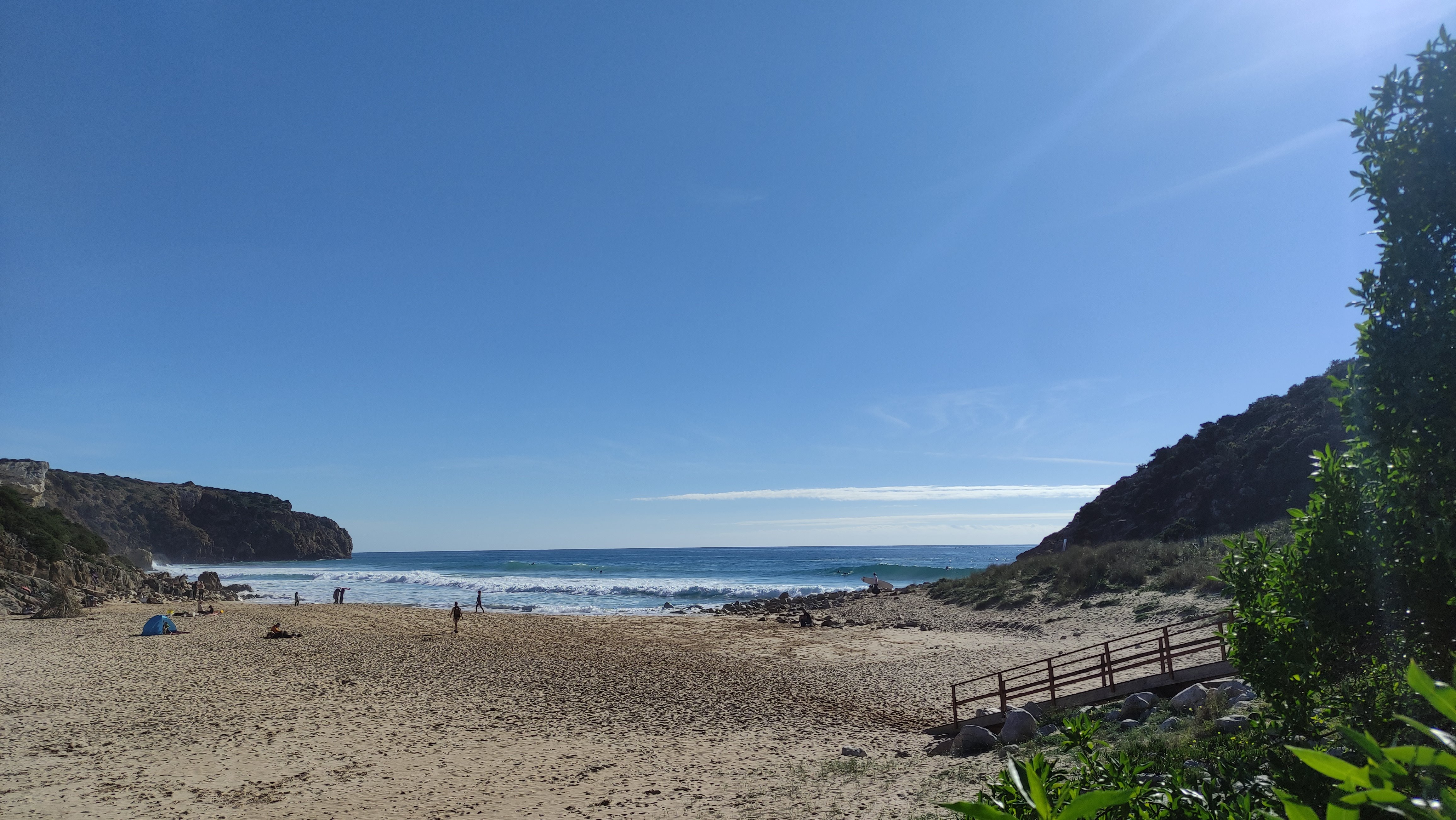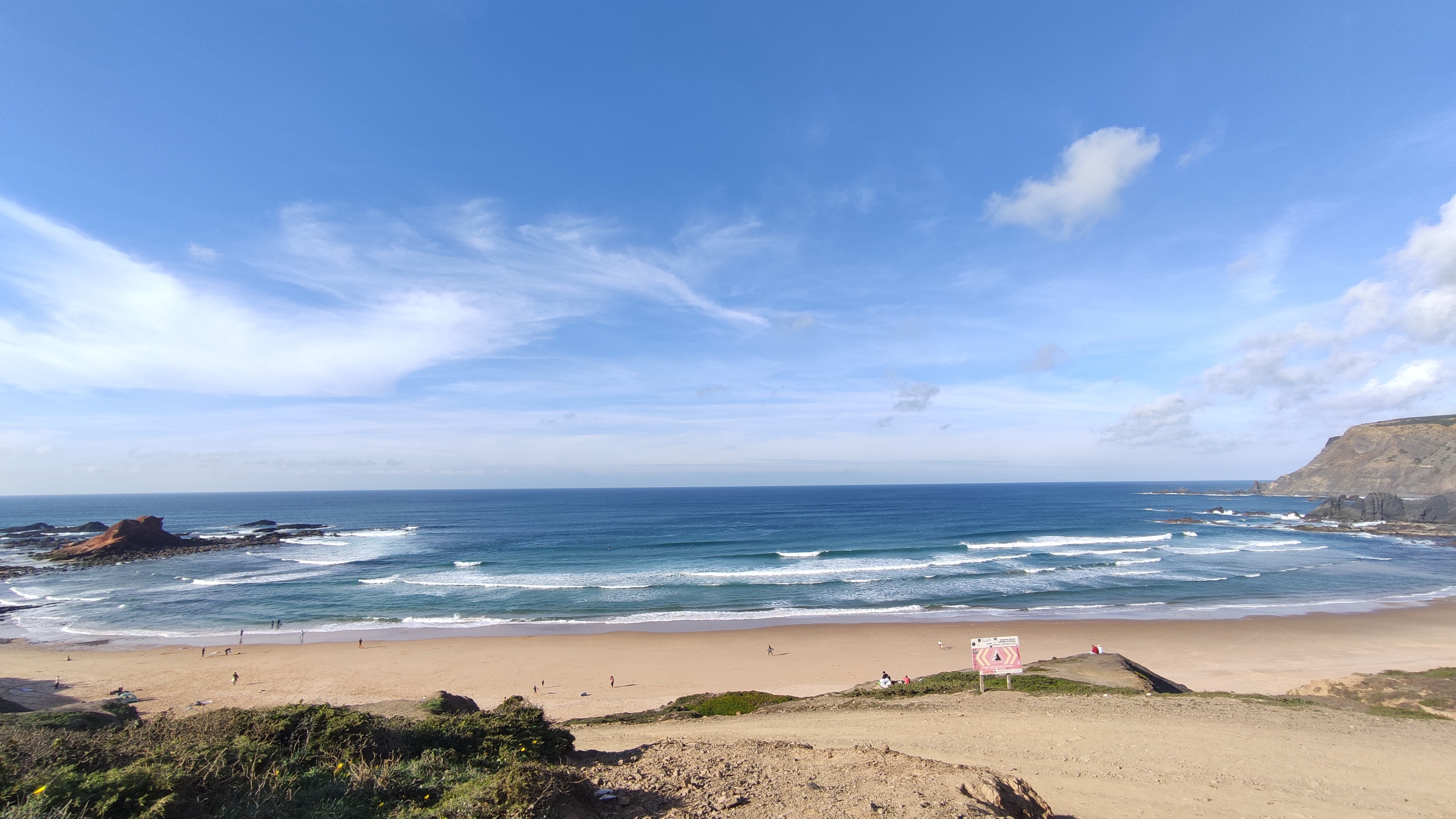 [Arrifana, 08.-10.12.2023] Die Boys sind da. Irgendwo im Süden auf ihrem Camping. Bzw. sie kommen an beizeiten. Zeit für uns die engen Berghänge zu verlassen (nach einem letzten schweisstreibenden Projekt) und uns dem Atlantik zuzuwenden. Auf dem zur Zeit ein saftiger Swell sein Unwesen treibt. Die Westküste, beispielsweise Arrifana oder auch Amado sehen atemberaubend aus, allerdings für unsereins, insbesondere mich, doch deutlich zu groß.