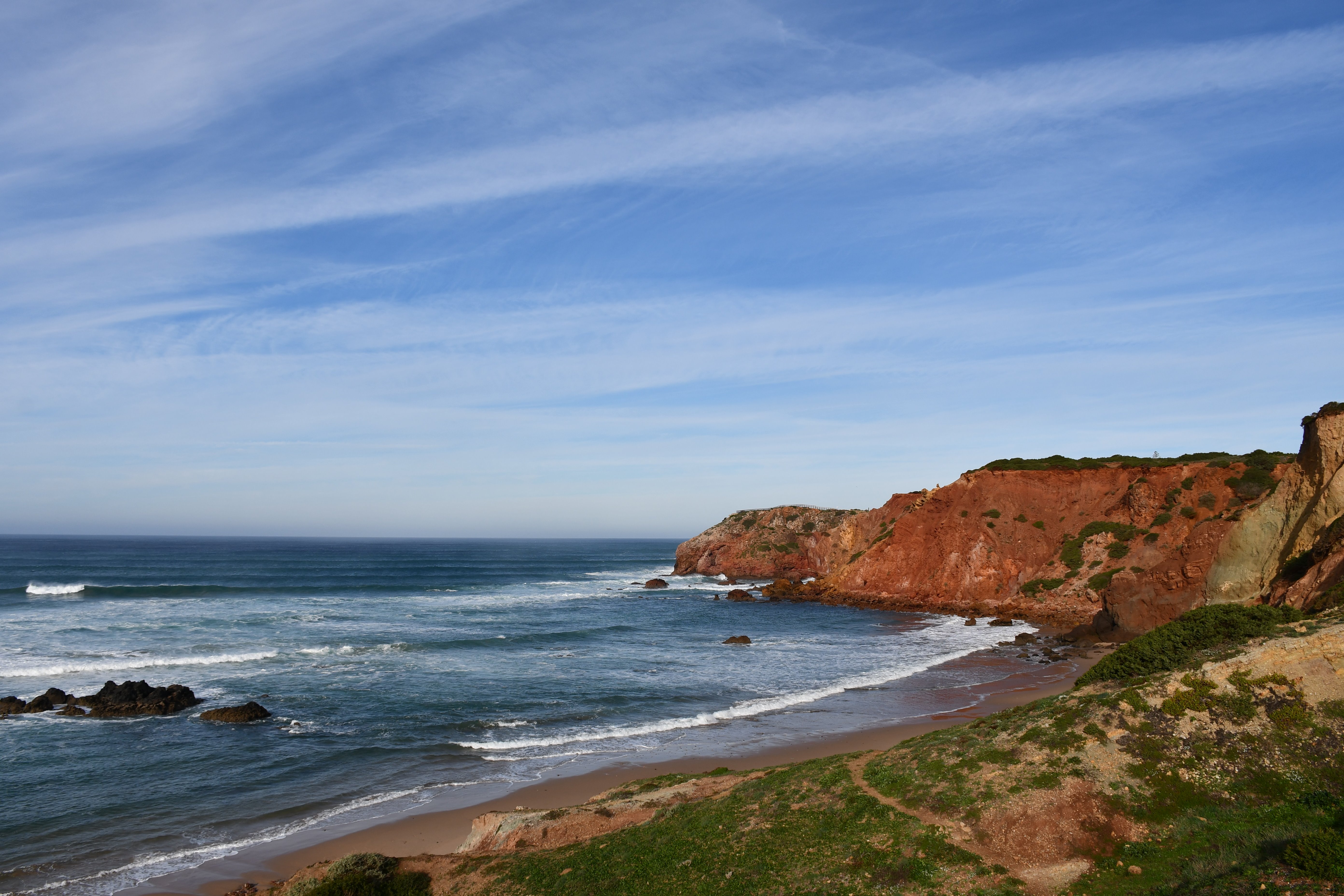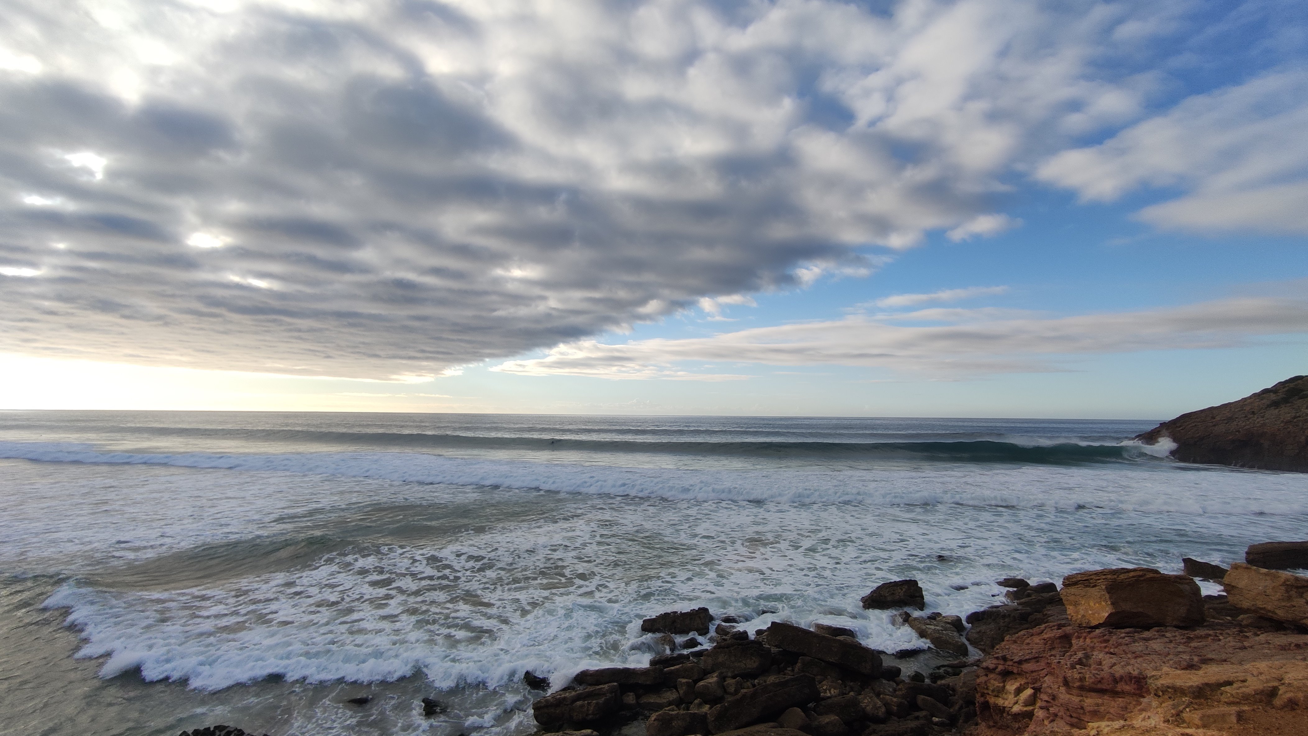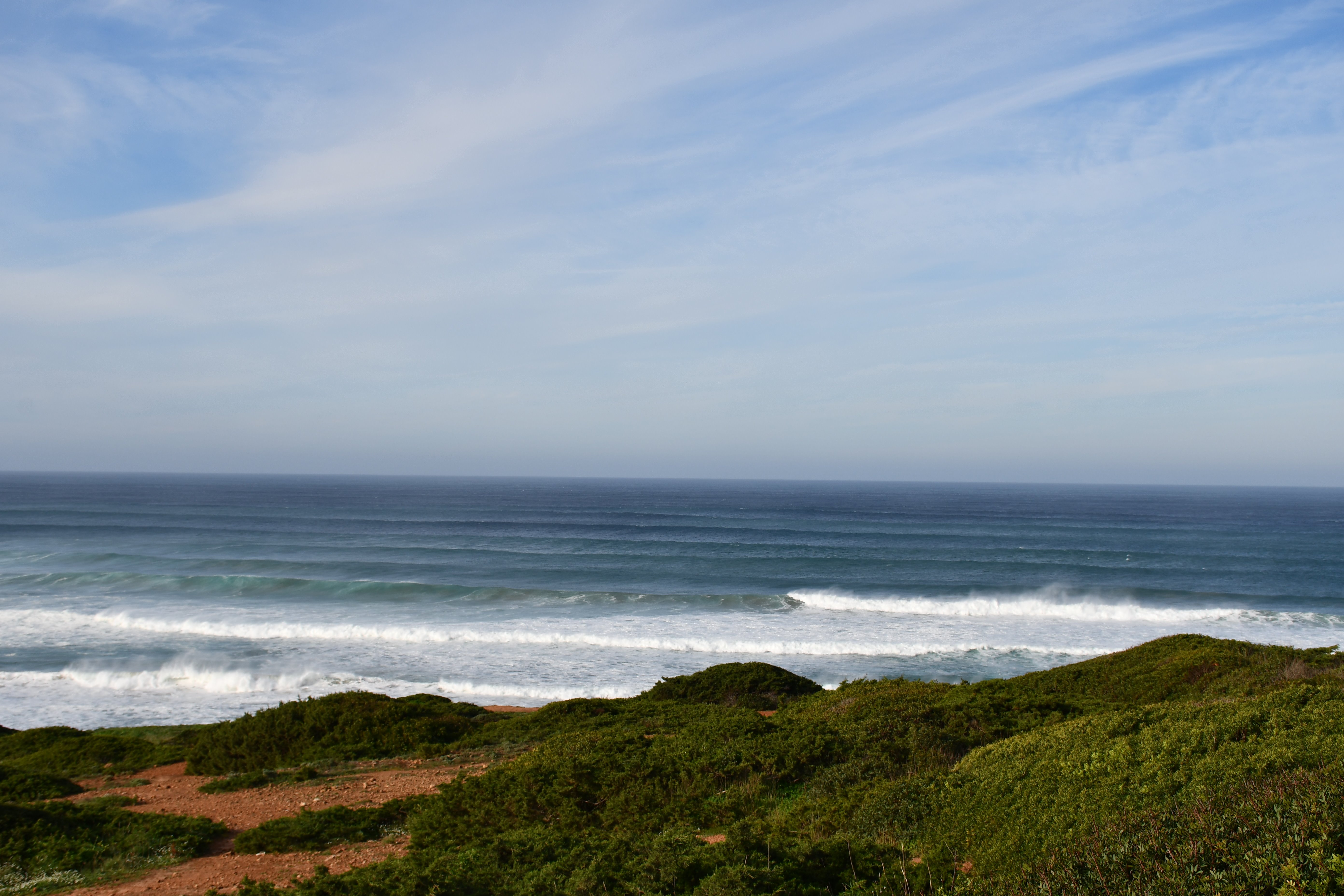 [Arrifana, 08.-10.12.2023] Die Boys sind da. Irgendwo im Süden auf ihrem Camping. Bzw. sie kommen an beizeiten. Zeit für uns die engen Berghänge zu verlassen (nach einem letzten schweisstreibenden Projekt) und uns dem Atlantik zuzuwenden. Auf dem zur Zeit ein saftiger Swell sein Unwesen treibt. Die Westküste, beispielsweise Arrifana oder auch Amado sehen atemberaubend aus, allerdings für unsereins, insbesondere mich, doch deutlich zu groß.