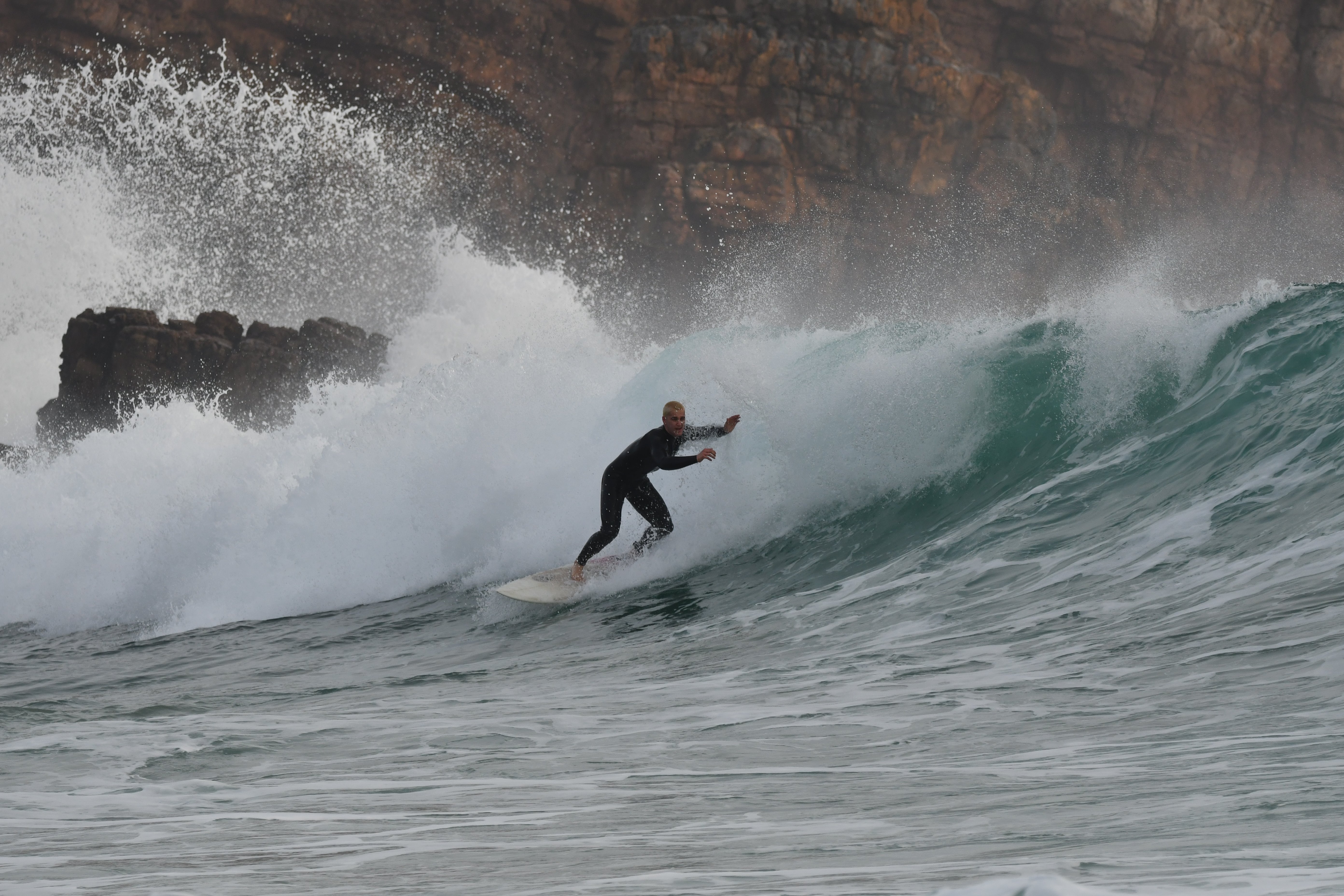 [Arrifana-Monchique, 23.11.-07.12.2023] Lets Surf again. Die meiste Zeit halten wir uns aufm Land auf. Zwischendurch muss man dann aber doch mal wieder raus um dem Surf zu frönen. Der eine oder andere kleine Swell lädt zu ein- oder mehrtägigen Touren an die Westküste ein. Neben dem bekannten Spot Arrifana welcher seit den ersten Herbststürmen wieder „a la bonneur“ läuft, sind wir an weiteren Ecken unterwegs, welche aus datenschutzrechtlichen Gründen unbenannt bleiben müssen. Der Surf jedenfalls ist in fast allen Fällen eine glatte Eins gewesen. Neben der Tatsache dass ich mich langsam aber sicher wieder gut in den Sport einfinde macht der gemeinsame Surf mit Niklas einfach überragend viel Spaß! Insbesondere nachdem er sich dann doch mal einen neuen Neo gegönnt hat und nicht nach spätestens einer Stunde ins Kältekoma fällt.